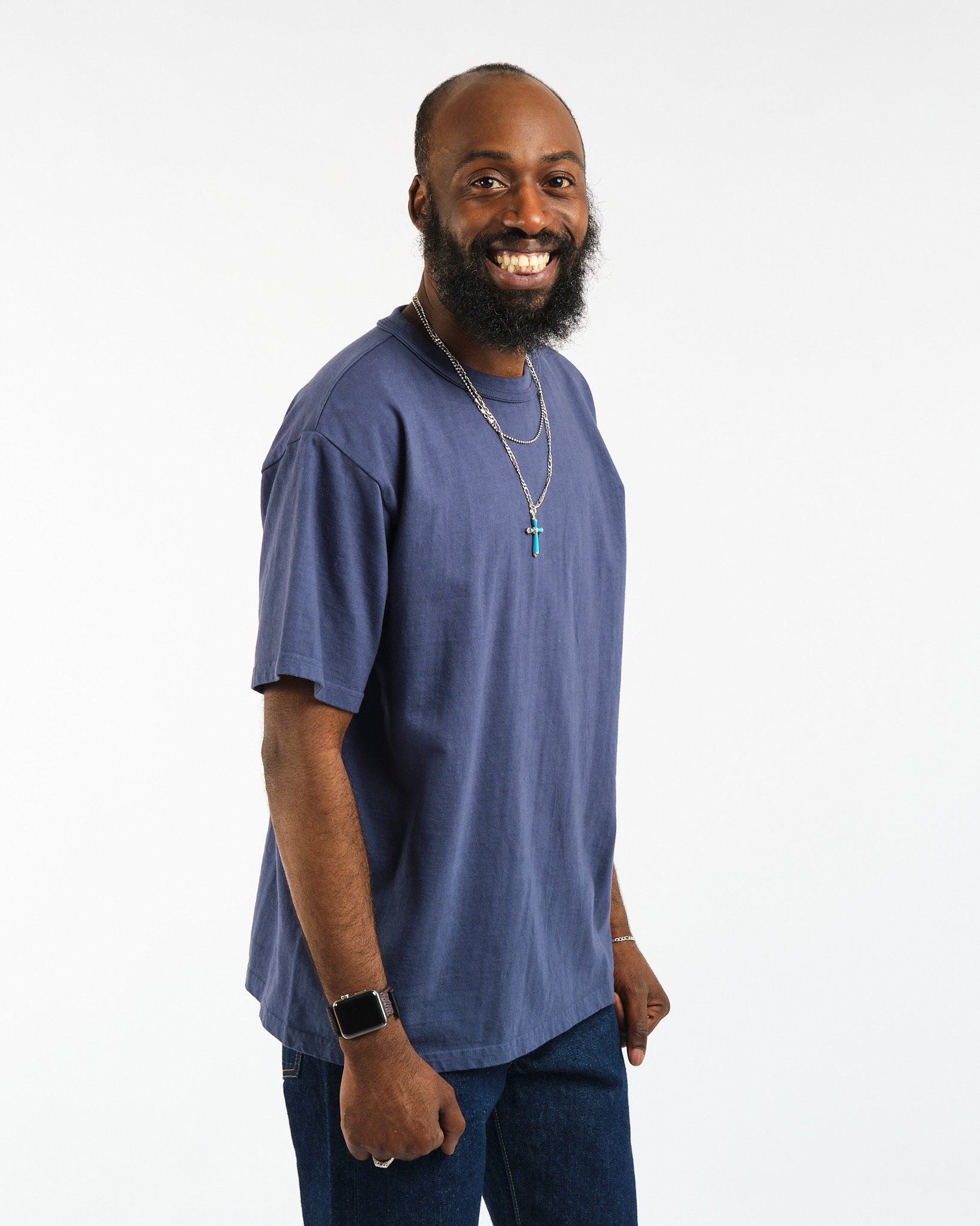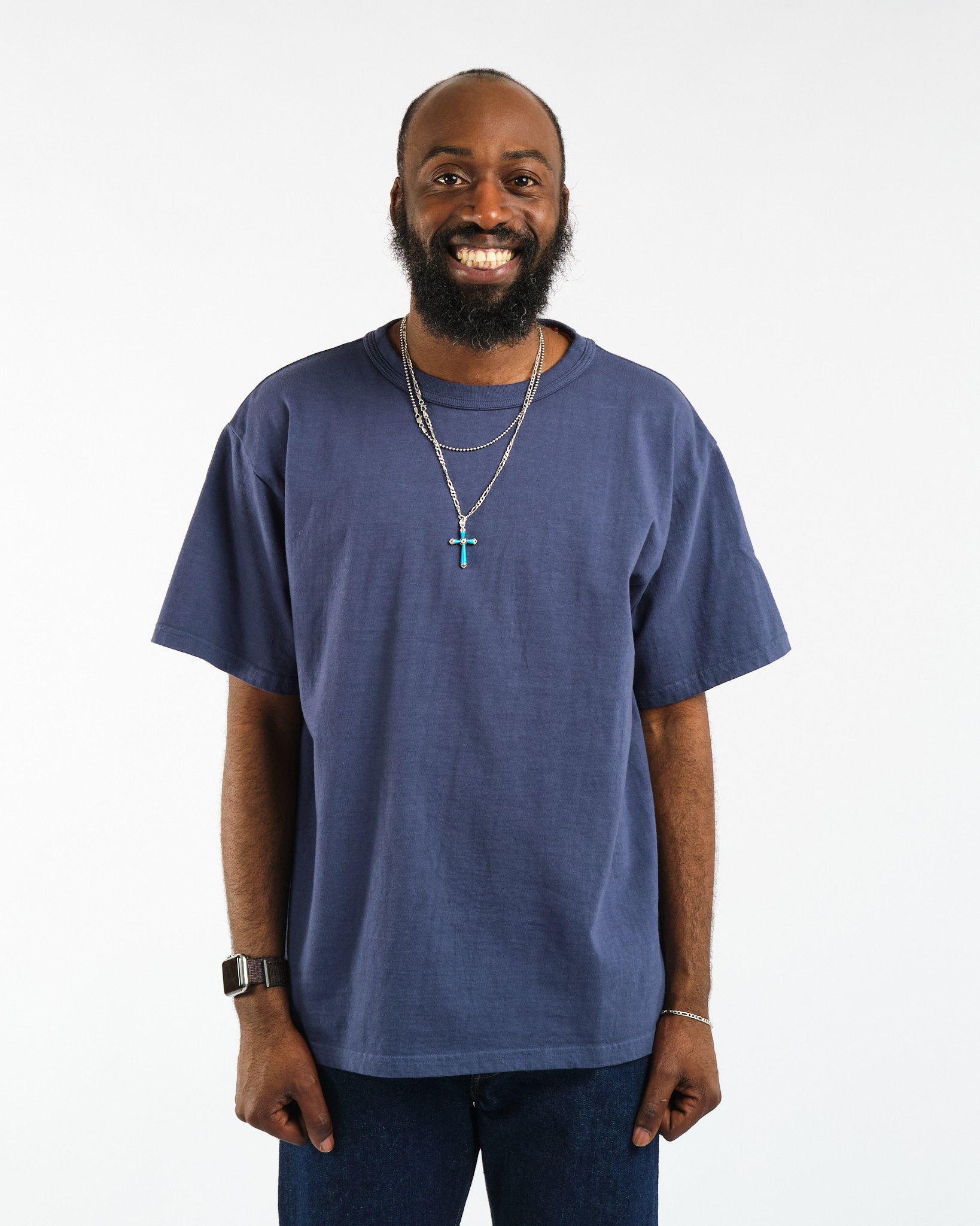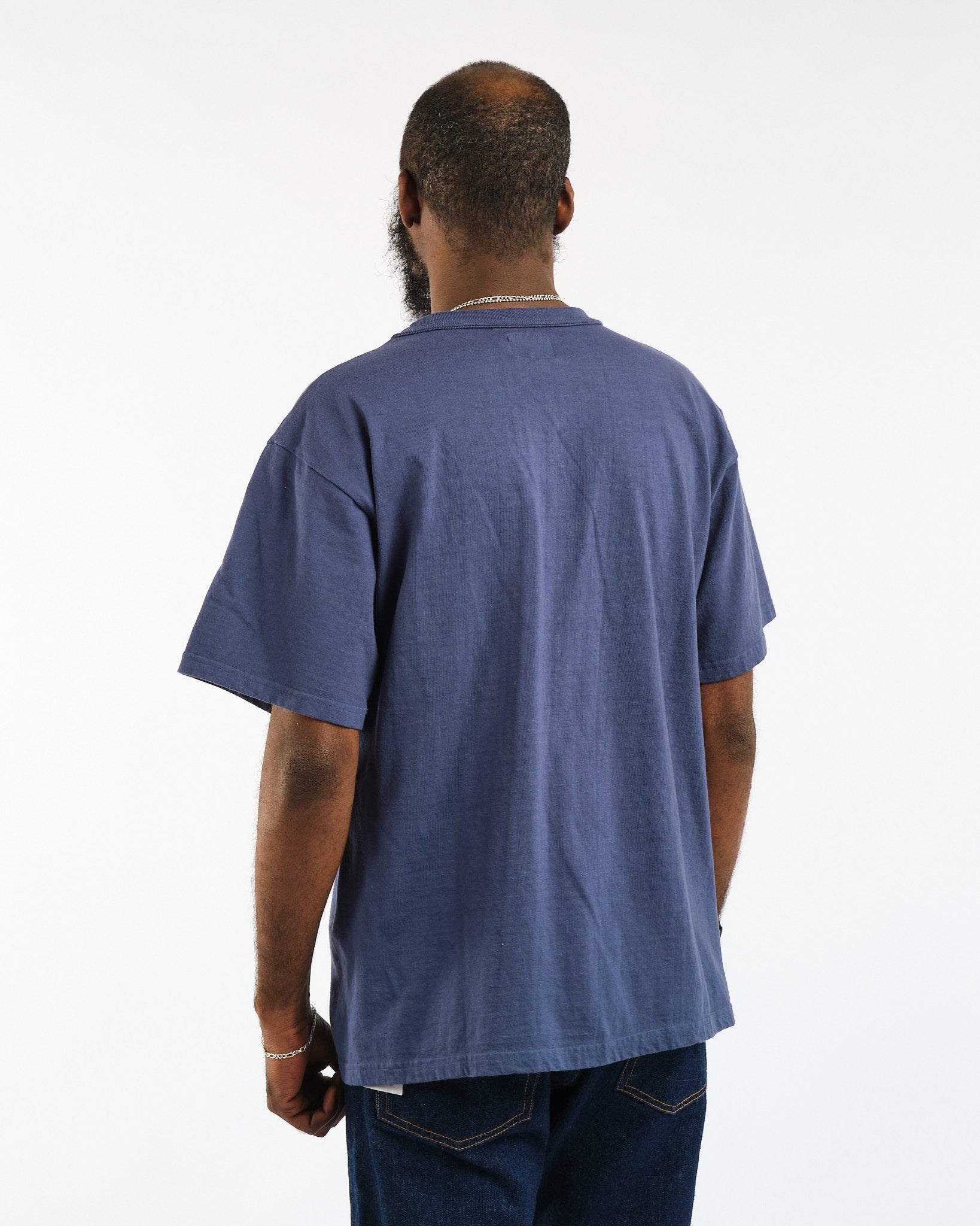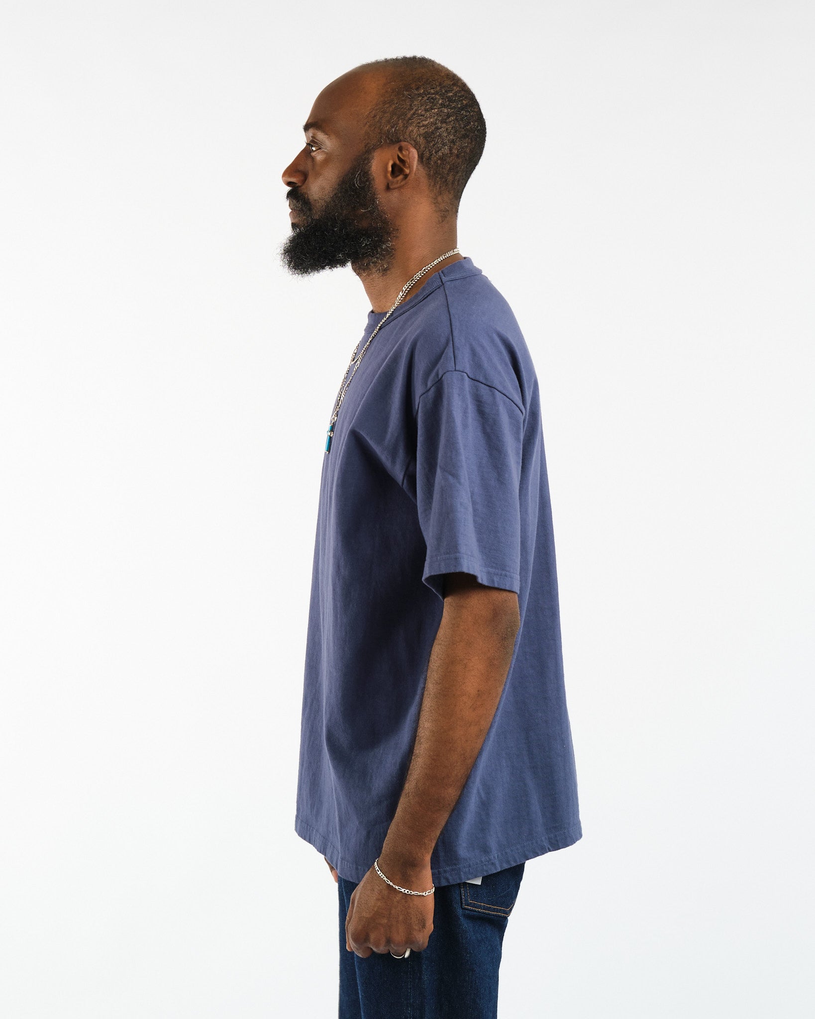 Stap in tijdloze stijl met het Makaha T-shirt met korte mouwen in Insignia Blue van Sunray Sportswear. Dit kledingstuk komt uit Japan en brengt een jaren '50 flair met zijn ontspannen, boxier pasvorm die subtiel korter is dan je gemiddelde moderne pasvorm. Onze t-shirts zijn uniek omdat ze geproduceerd worden op antieke rondbreimachines, die een kenmerkende constructie zonder zijnaad leveren. Elk Sunray T-shirt neemt meer dan anderhalf uur in beslag om te vervaardigen, een bewijs van ons langzame en detailgerichte proces dat een t-shirt belooft dat moeiteloos zijn vorm behoudt. Duik in het ongeëvenaarde comfort, de robuustheid en het tijdloze ontwerp van Sunray Sportswear.