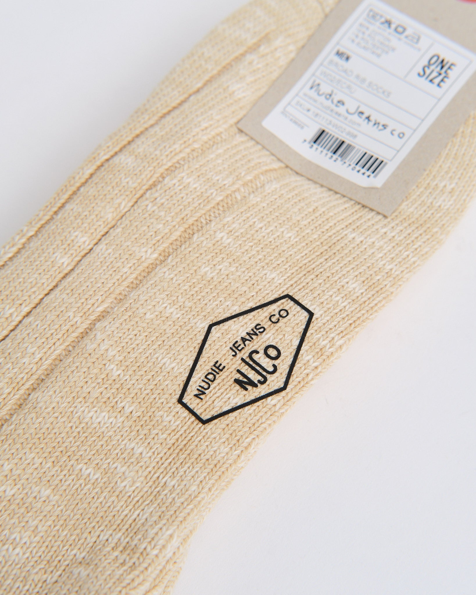 In lijn met Nudies focus op duurzaamheid " zijn deze sokken gemaakt van materialen die passen bij de milieuvriendelijke mode missie van het merk. Het brede geribbelde ontwerp verhoogt niet alleen hun robuustheid, maar voegt ook een vleugje stijl toe, waardoor ze een veelzijdige keuze zijn, voor je garderobe.