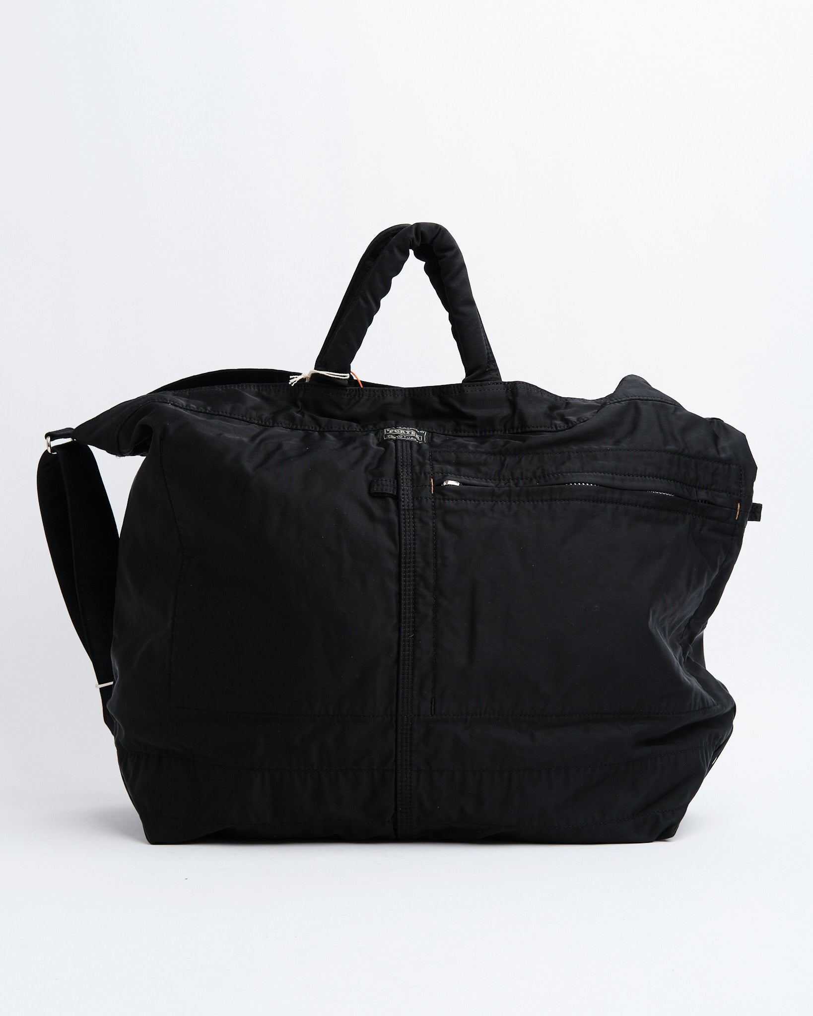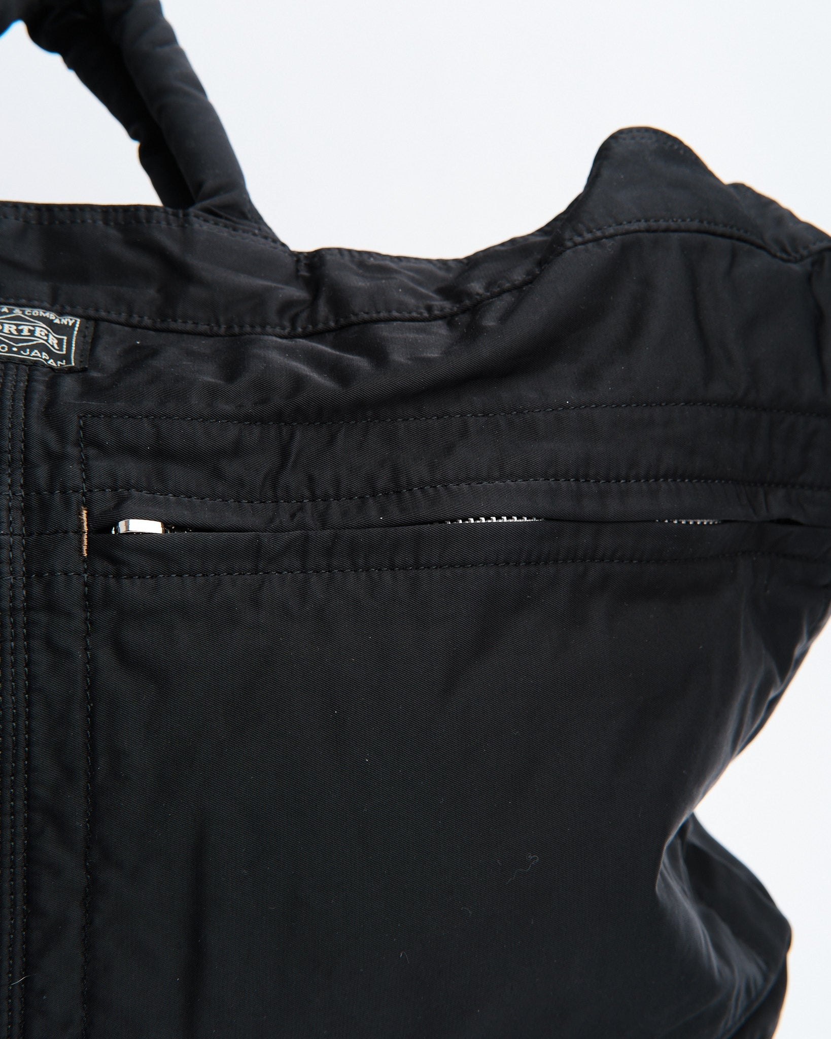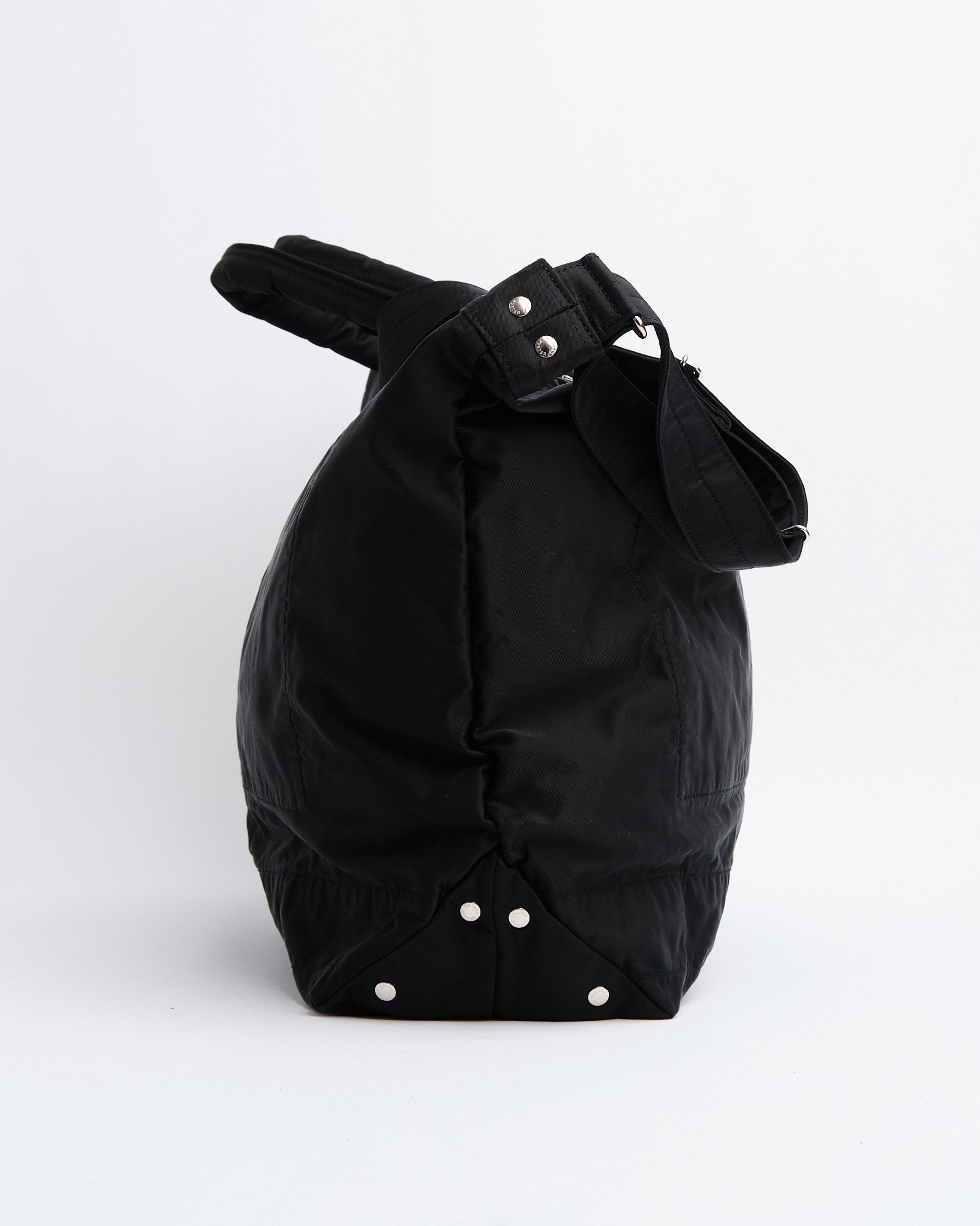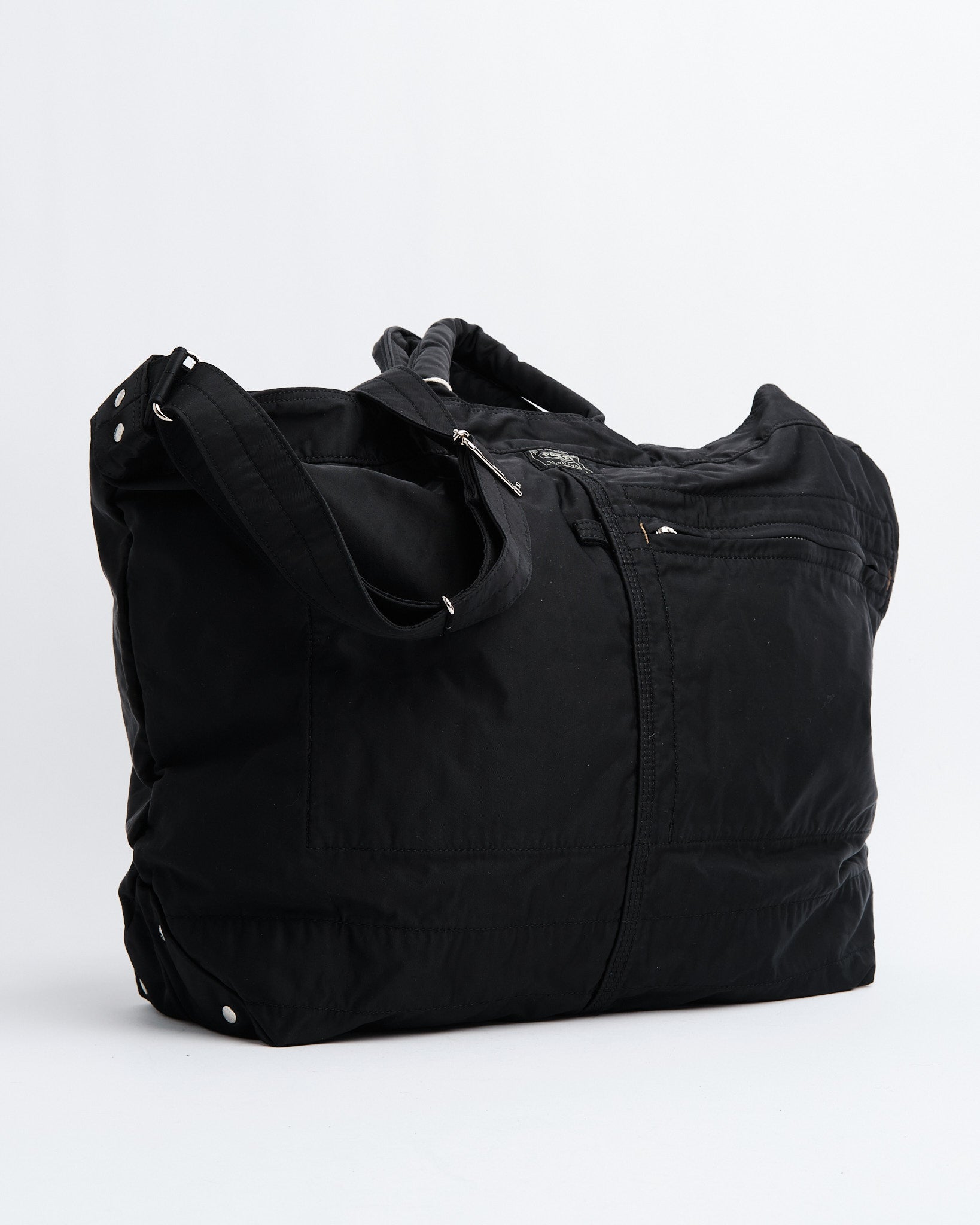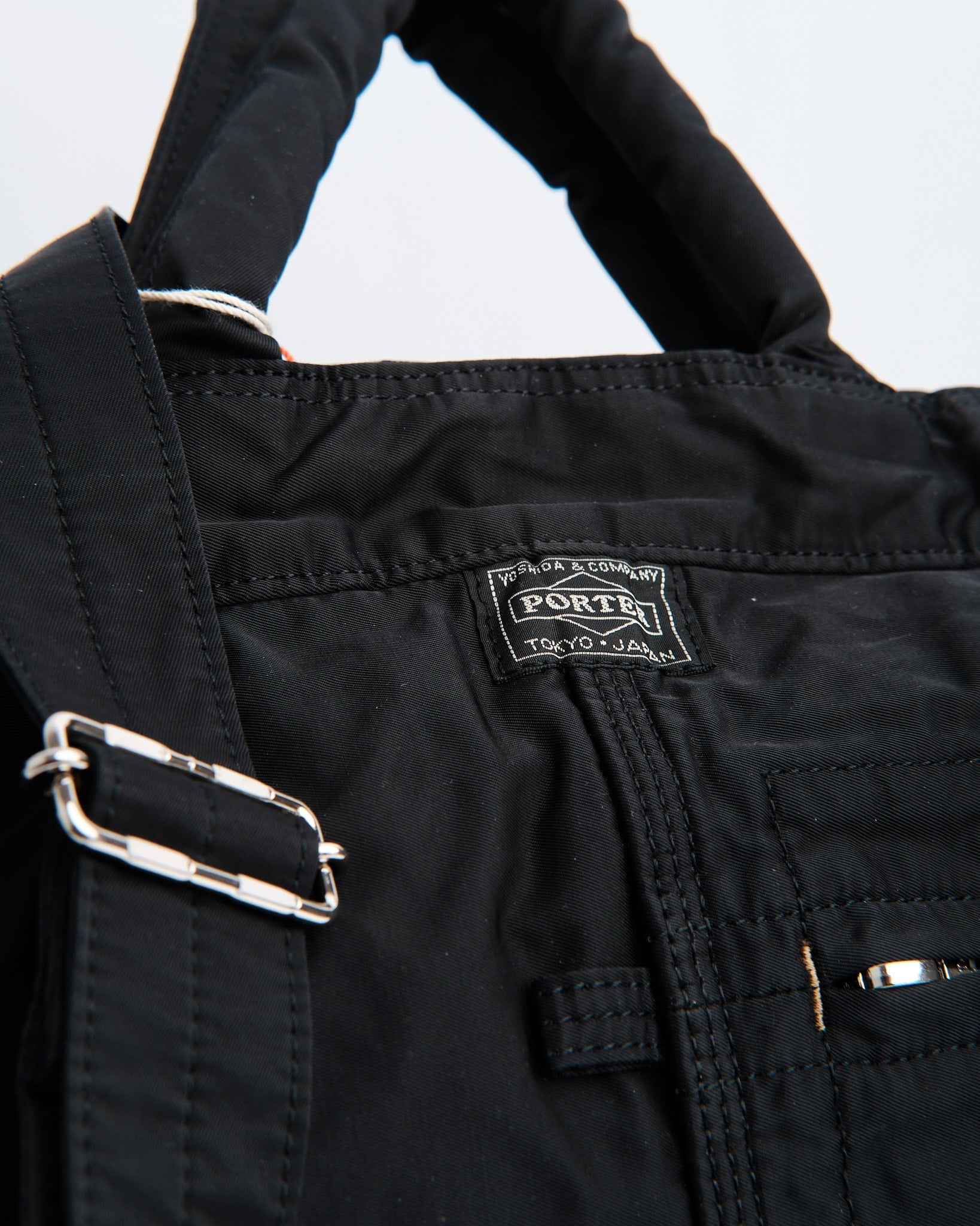 De PORTER by Yoshida MILE 2WAY TOTE BAG (L) in Zwart is een veelzijdige en elegante tote bag geïnspireerd door Amerikaanse gereedschapstassen en werkshorten uit de jaren 1940 en 1950. Vervaardigd uit een glanzende nylon-katoen twill, balanceert deze tas duurzaamheid met een verfijnde esthetiek. Een speciaal wasproces geeft het materiaal een zachte en lichte feel, terwijl glanzende nikkel-geplateerde metalen fittingen een verfijnde touch toevoegen die het onderscheidt van standaard werktassen.
