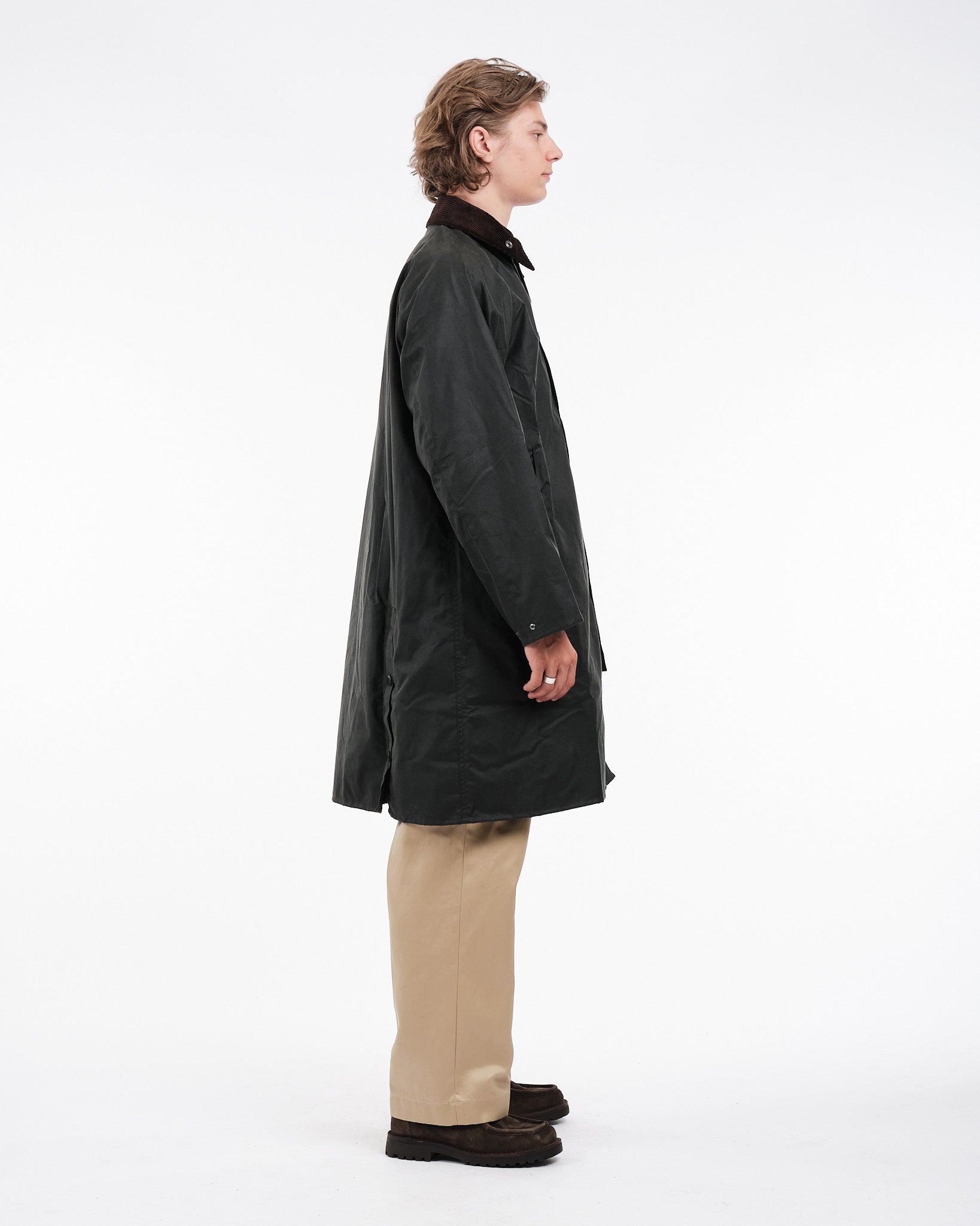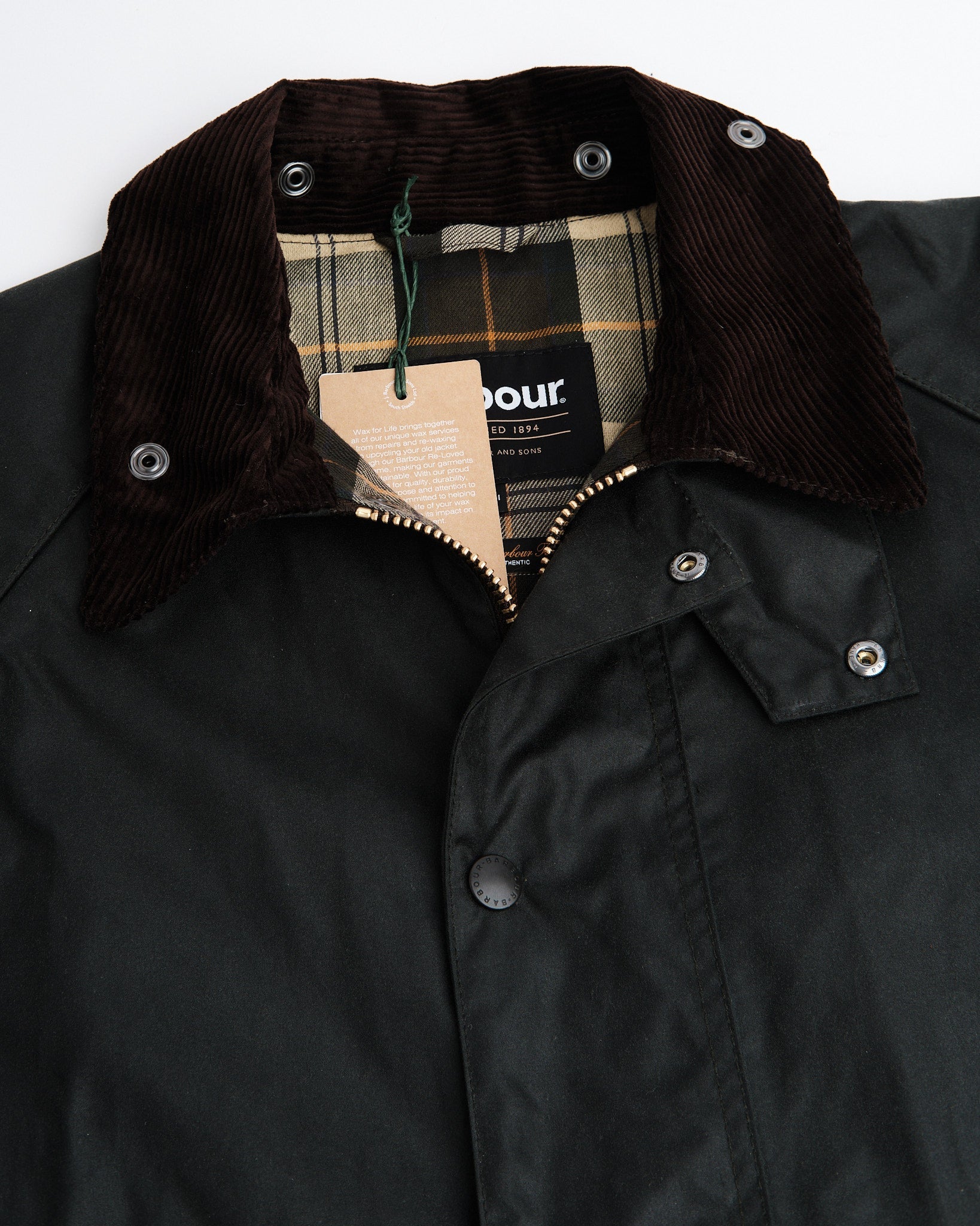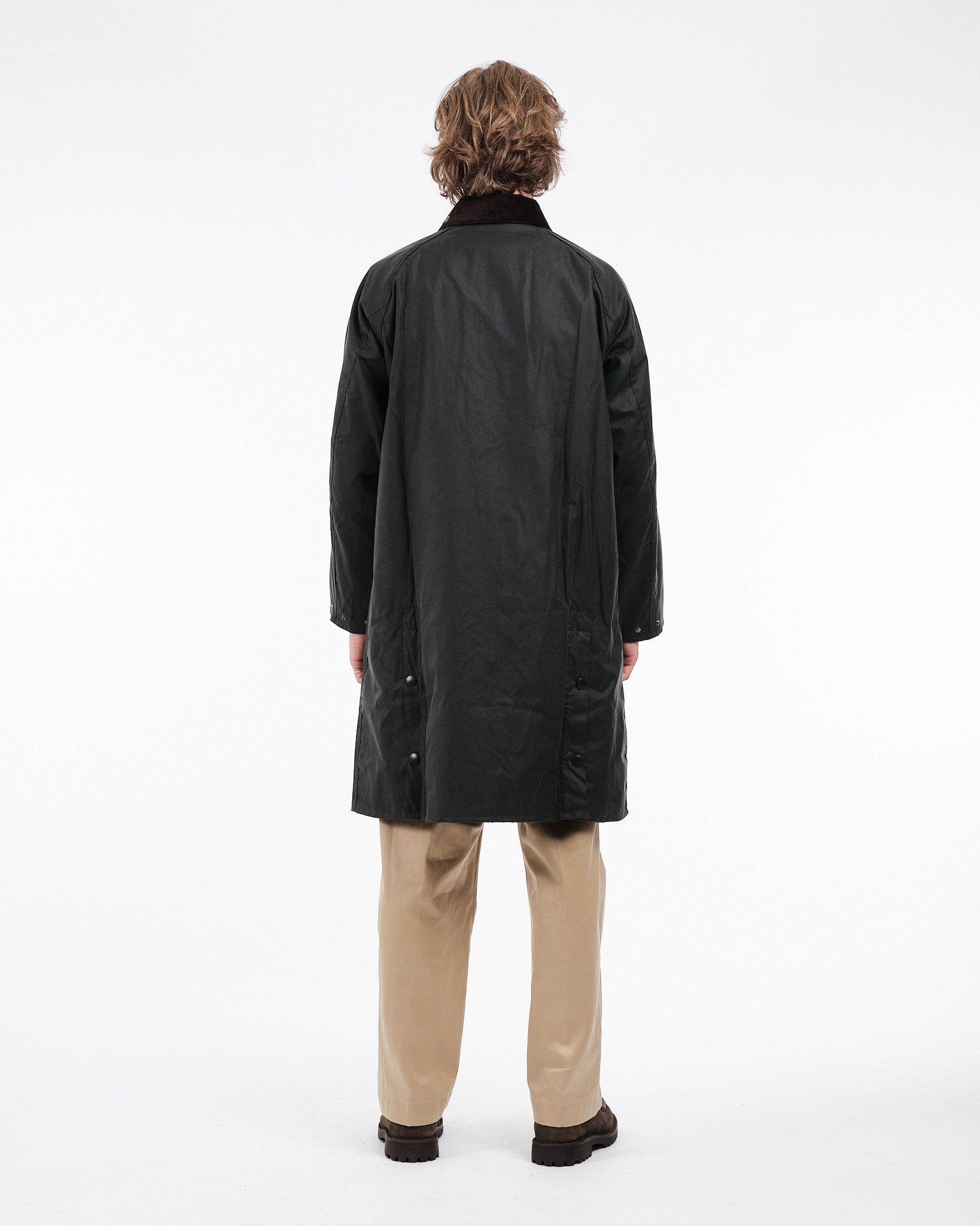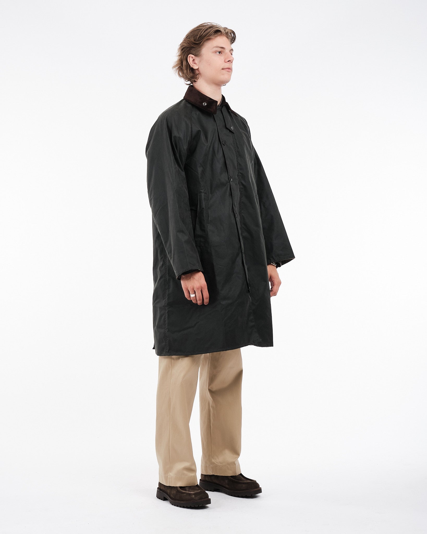 Maak kennis met de BARBOUR Modified Exmoor Waxjas in Salie, een opvallend stuk uit de Barbour Heritage Select collectie. Vervaardigd met 6oz gewaxt katoen combineert deze jas duurzaamheid met tijdloze elegantie. Ontworpen met een pasvorm op maat voor de Aziatische markt geeft het een moderne update aan Barbours klassieke stijl. Opmerkelijke kenmerken zijn een kraag van koord, rits en drukknoopsluiting aan de voorkant, handige handverwarmingszakken en met drukknoop verstelbare achterventilatie voor beweging. De gezellige katoenen tartan voering zorgt voor zowel warmte als comfort, waardoor het een ideale keuze is voor degenen die vakmanschap met een hedendaagse touch waarderen.