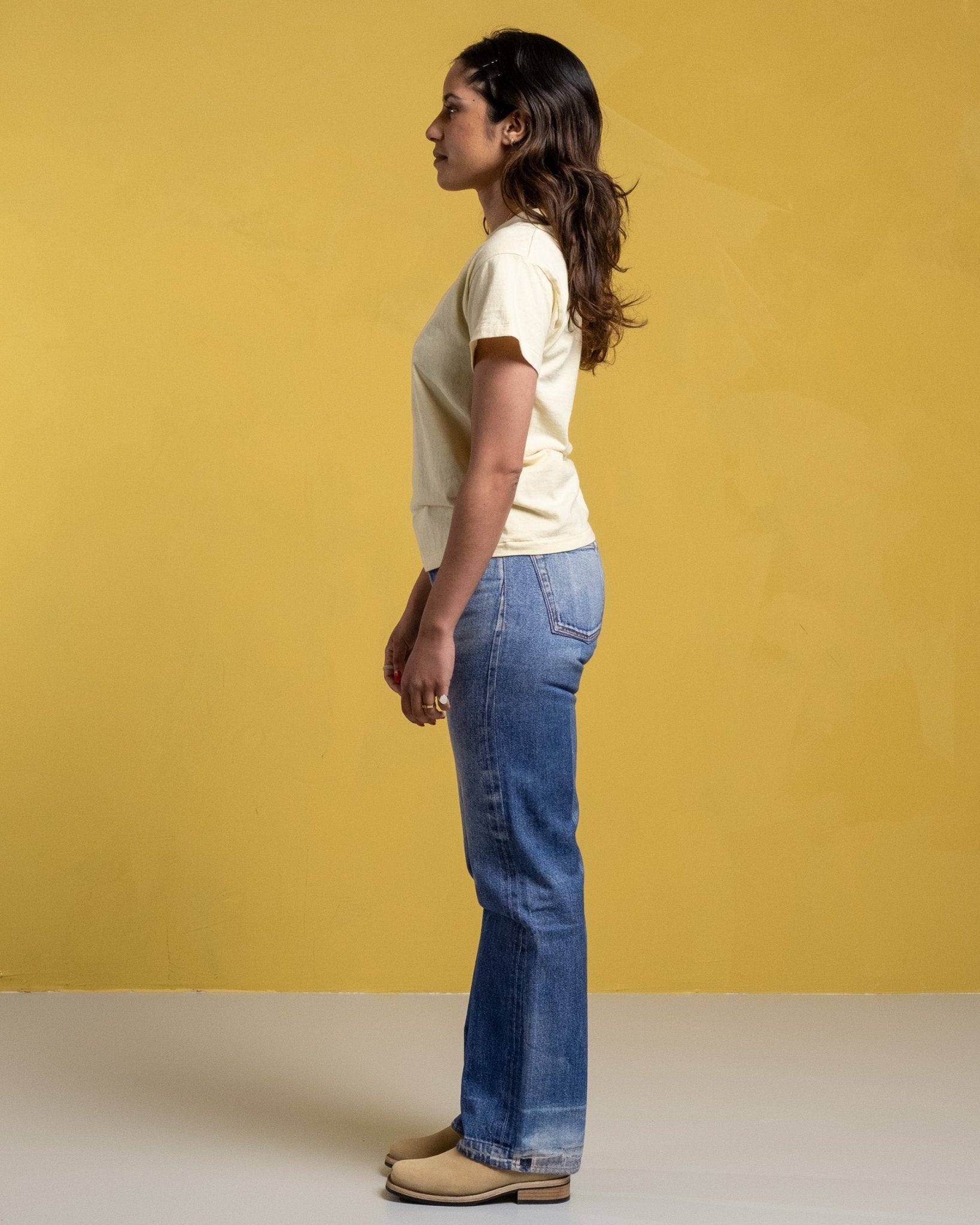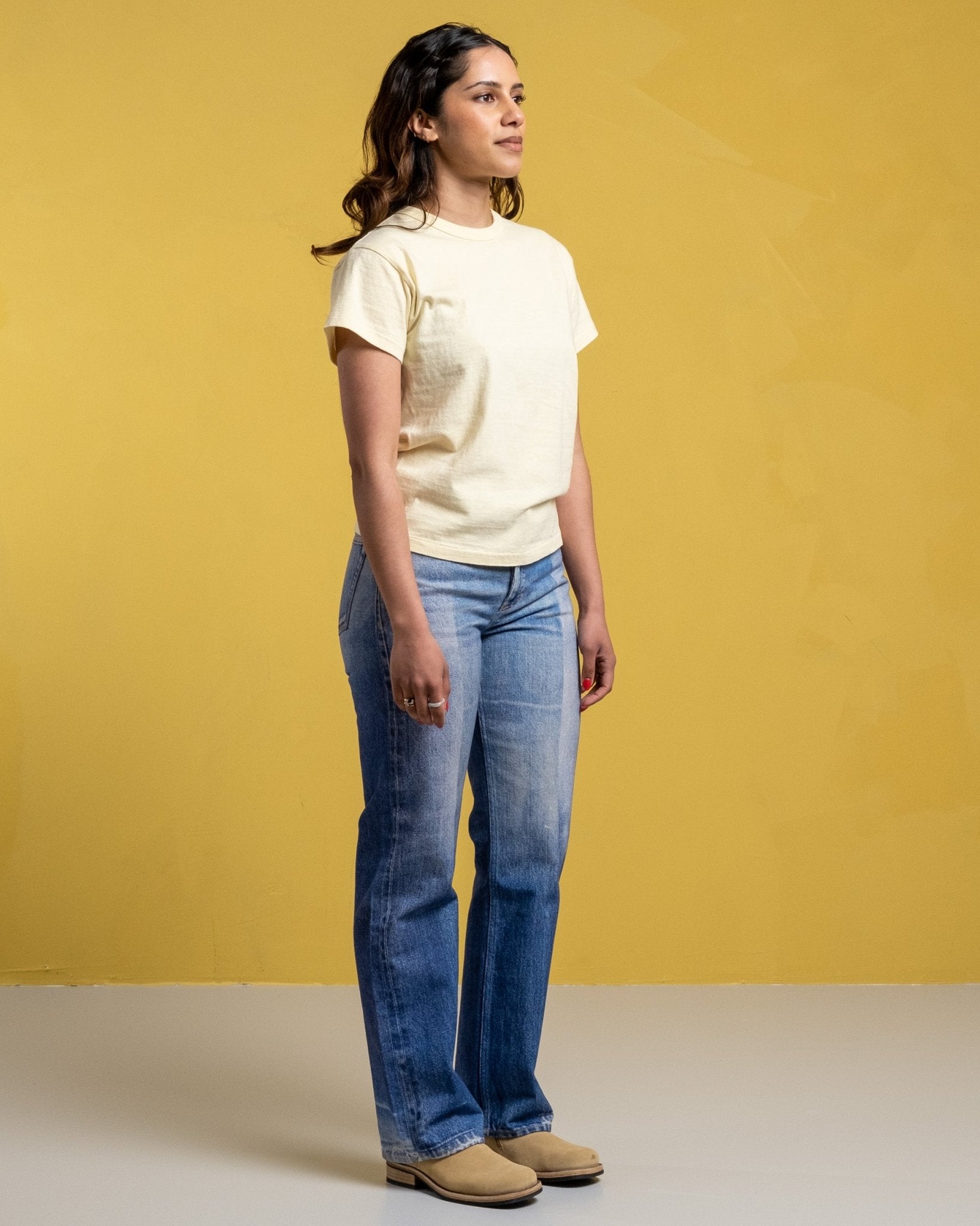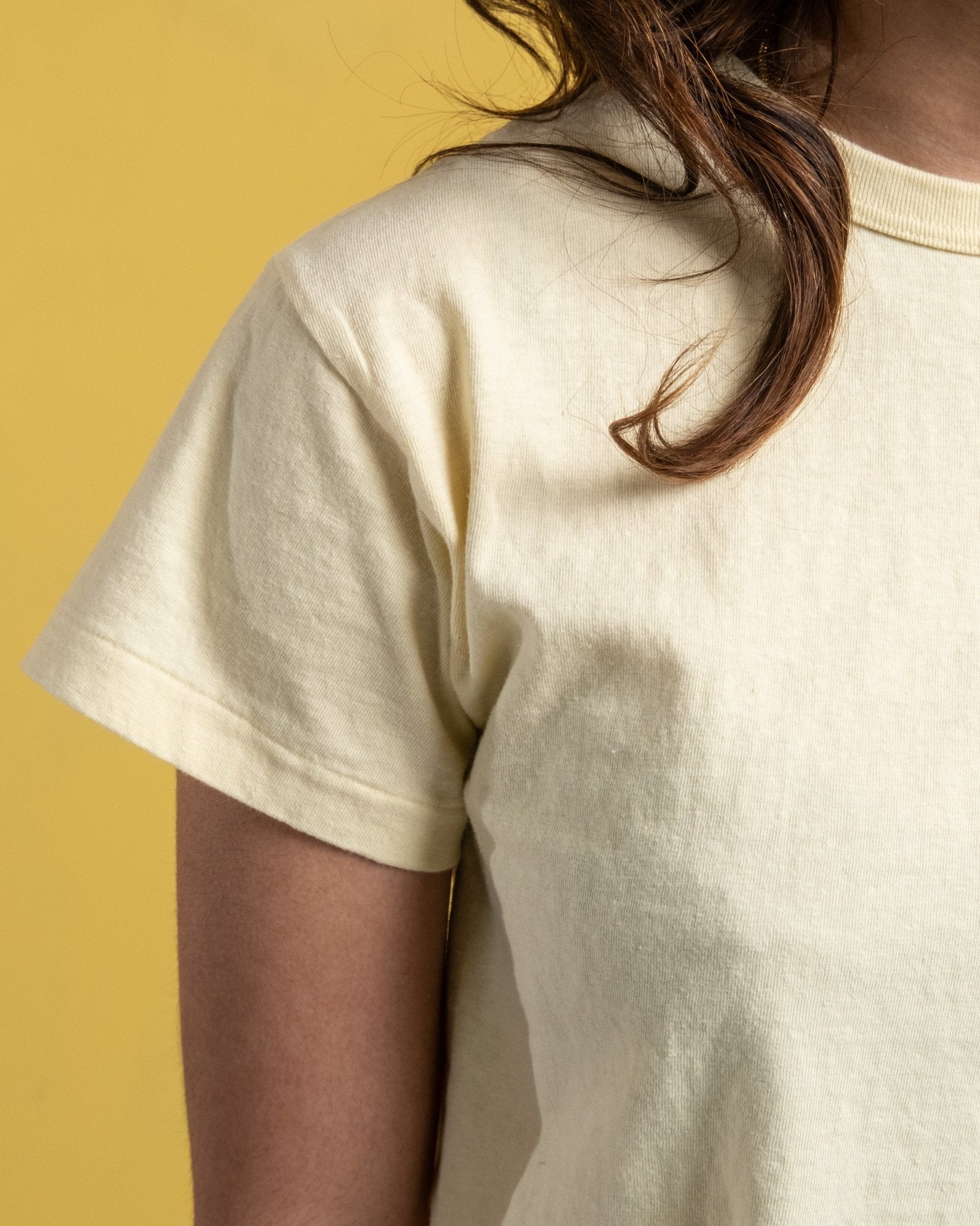 Na'maka'oh SS T-shirt Pastelgeel van Sunray Spirit. Sunray T-shirts hebben een traditionele pasvorm geïnspireerd door het gevoel van de jaren '50. Ontspannen met een normale pasvorm. De kraag, rib-ontwerp en stoffen zijn ook traditioneel. 260 g. Gemaakt in Japan.