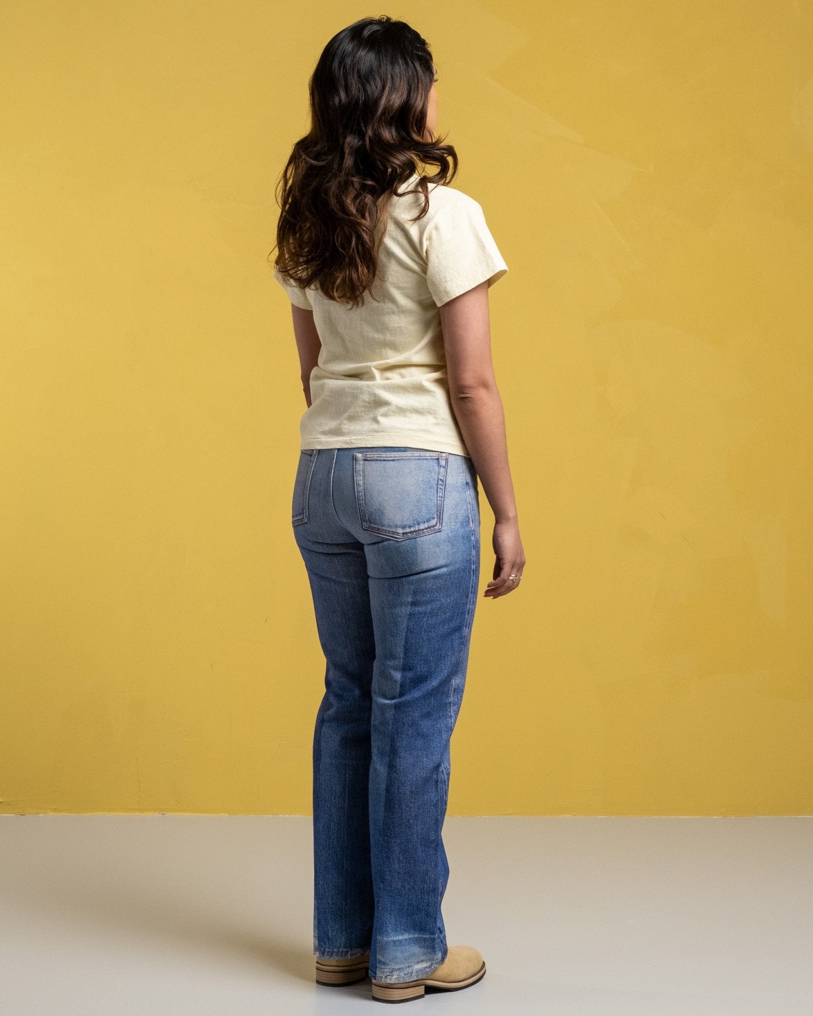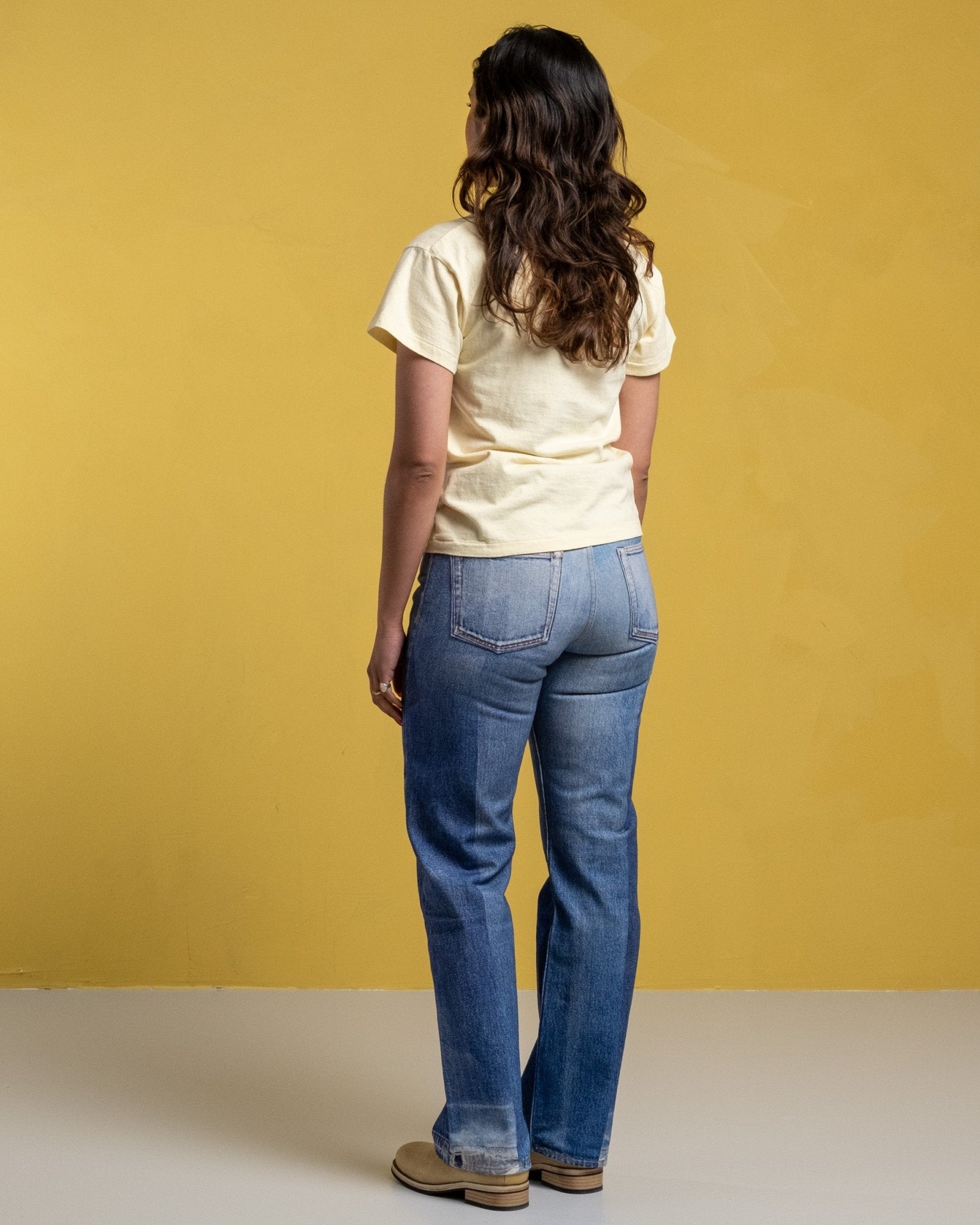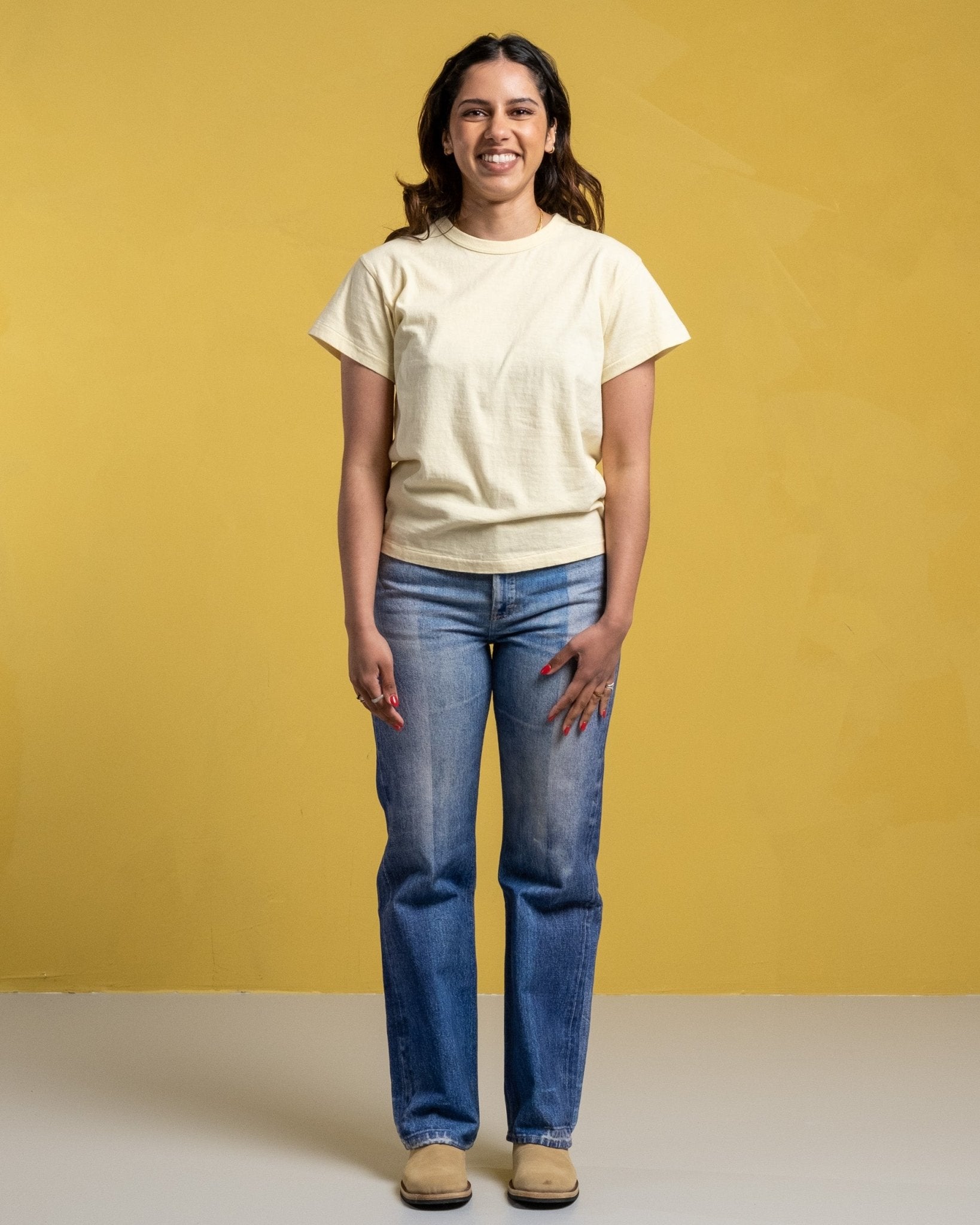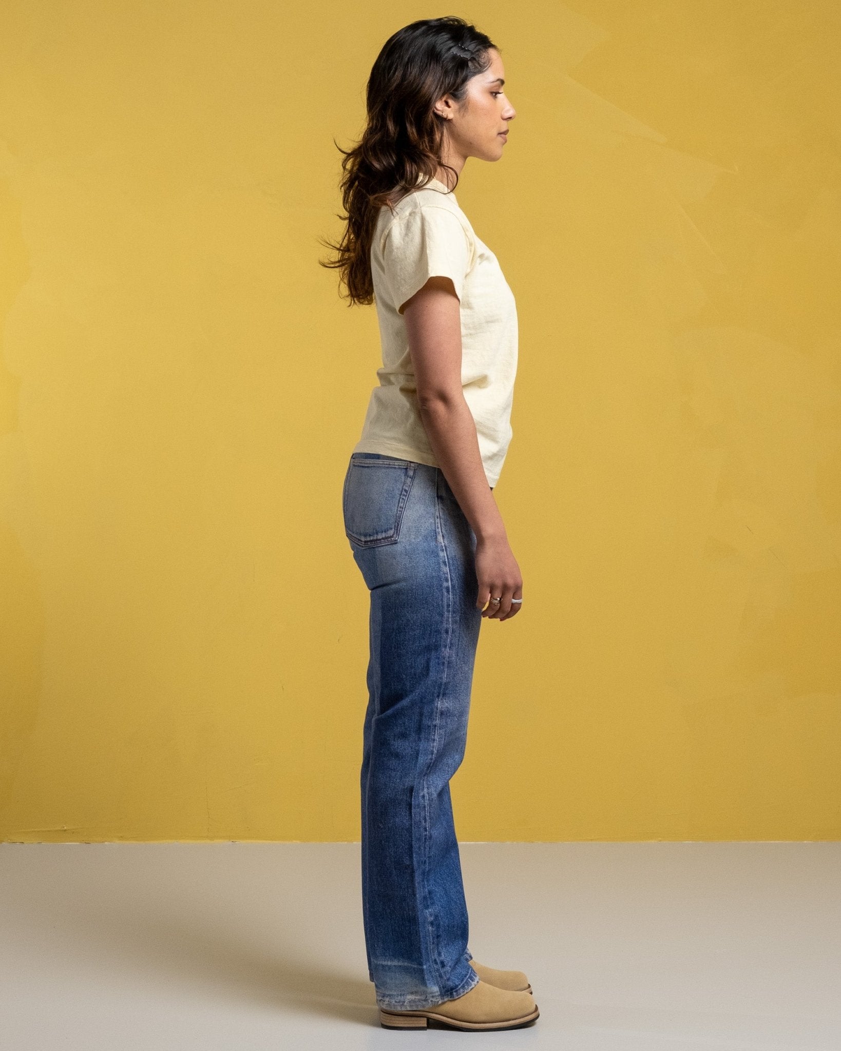 Na'maka'oh SS T-shirt Pastelgeel van Sunray Spirit. Sunray T-shirts hebben een traditionele pasvorm geïnspireerd door het gevoel van de jaren '50. Ontspannen met een normale pasvorm. De kraag, rib-ontwerp en stoffen zijn ook traditioneel. 260 g. Gemaakt in Japan.