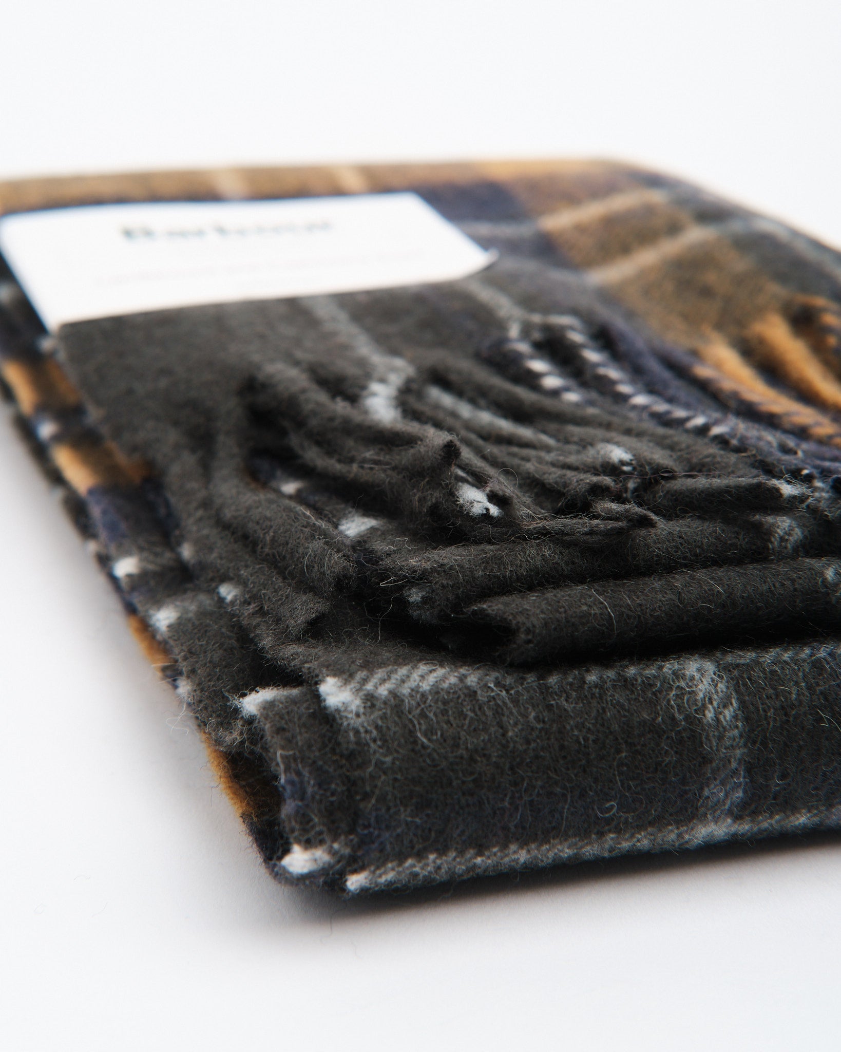 De BARBOUR NEW CHECK TARTAN SCARF in Olive/Classic is de perfecte mix van traditie en modern comfort. Vervaardigd uit een luxe mengsel van 95% lamswol en 5% kasjmier, biedt deze sjaal ongeëvenaarde zachtheid en warmte, waardoor het een essentieel item is voor de koudere maanden. Het klassieke olijfgroene tartanpatroon voegt verfijning toe, terwijl de gefranjerde zoom het een verfijnde afwerking geeft. Met een lengte van 180 cm en een breedte van 25 cm, biedt het veelzijdige stylingopties voor elke outfit.