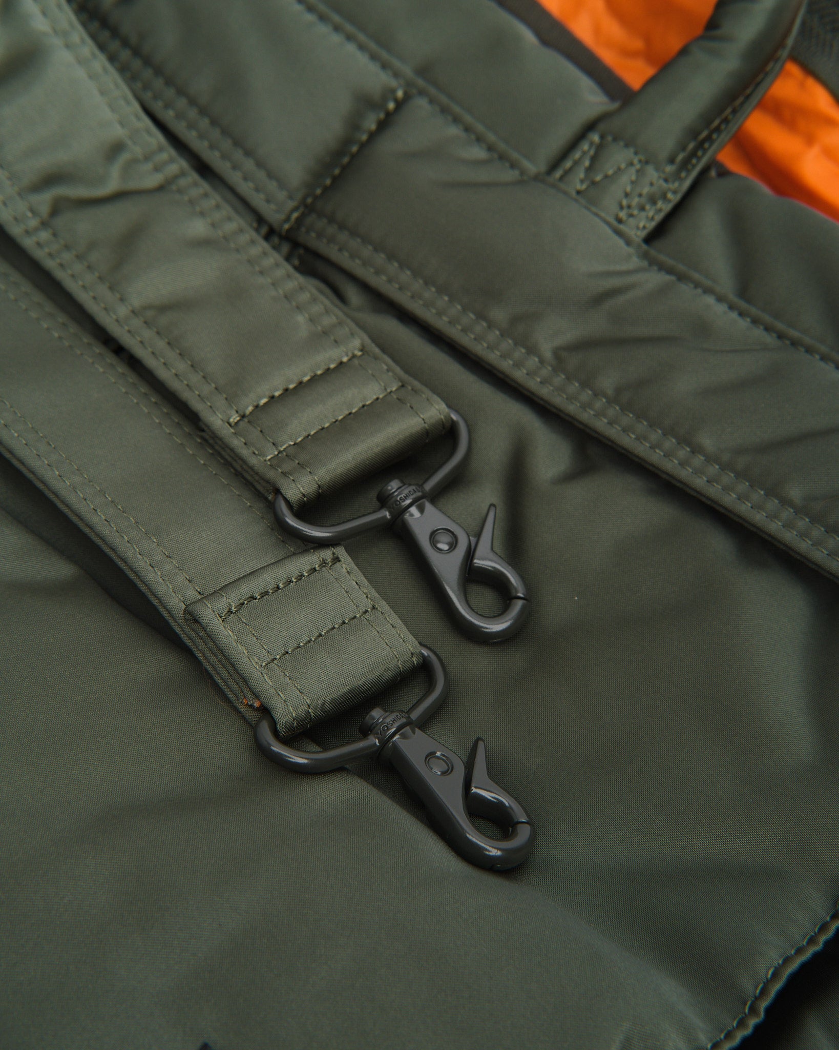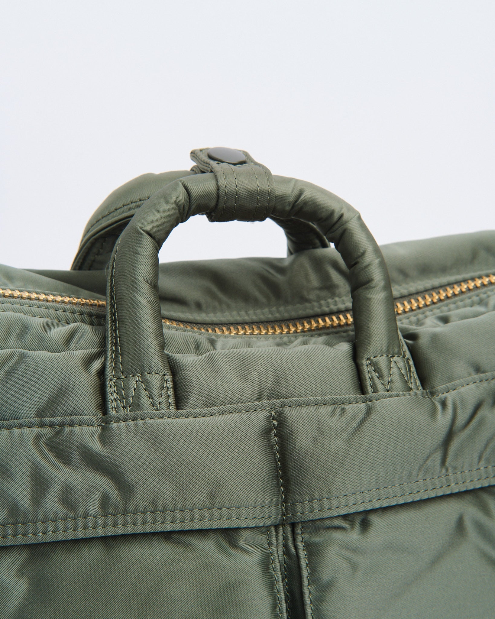 De PORTER BY YOSHIDA Tanker 3-Way Document Bag (622-26108-30) in Saliegroen is een zeer functionele en veelzijdige tas uit de nieuw herboren New Tanker serie. Vervaardigd uit 100% plantaardig nylon, gemaakt van maïs en wonderboomplanten, zet deze documententas de erfenis van de iconische Tanker collectie voort, nu verrijkt met moderne updates. De stof, geproduceerd door Toray Industries, staat bekend om zijn uitzonderlijke sterkte, soepelheid, en levendige glans, terwijl het milieuvriendelijk is.