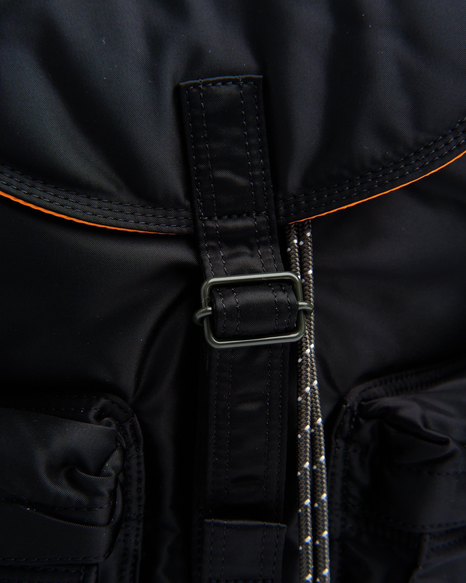 De PORTER BY YOSHIDA Tanker Rugzak (622-01630-10) in Zwart is een opvallend stuk uit de nieuw herboren New Tanker serie. Vervaardigd met 100% plantaardig nylon, gemaakt van maïs- en wonderboomplanten, zet de rugzak de erfenis van de iconische Tanker collectie voort, nu verrijkt met moderne updates. De stof, geproduceerd door Toray Industries, biedt superieure sterkte, soepelheid, en een levendige glans, terwijl het een milieuvriendelijke benadering behoudt.