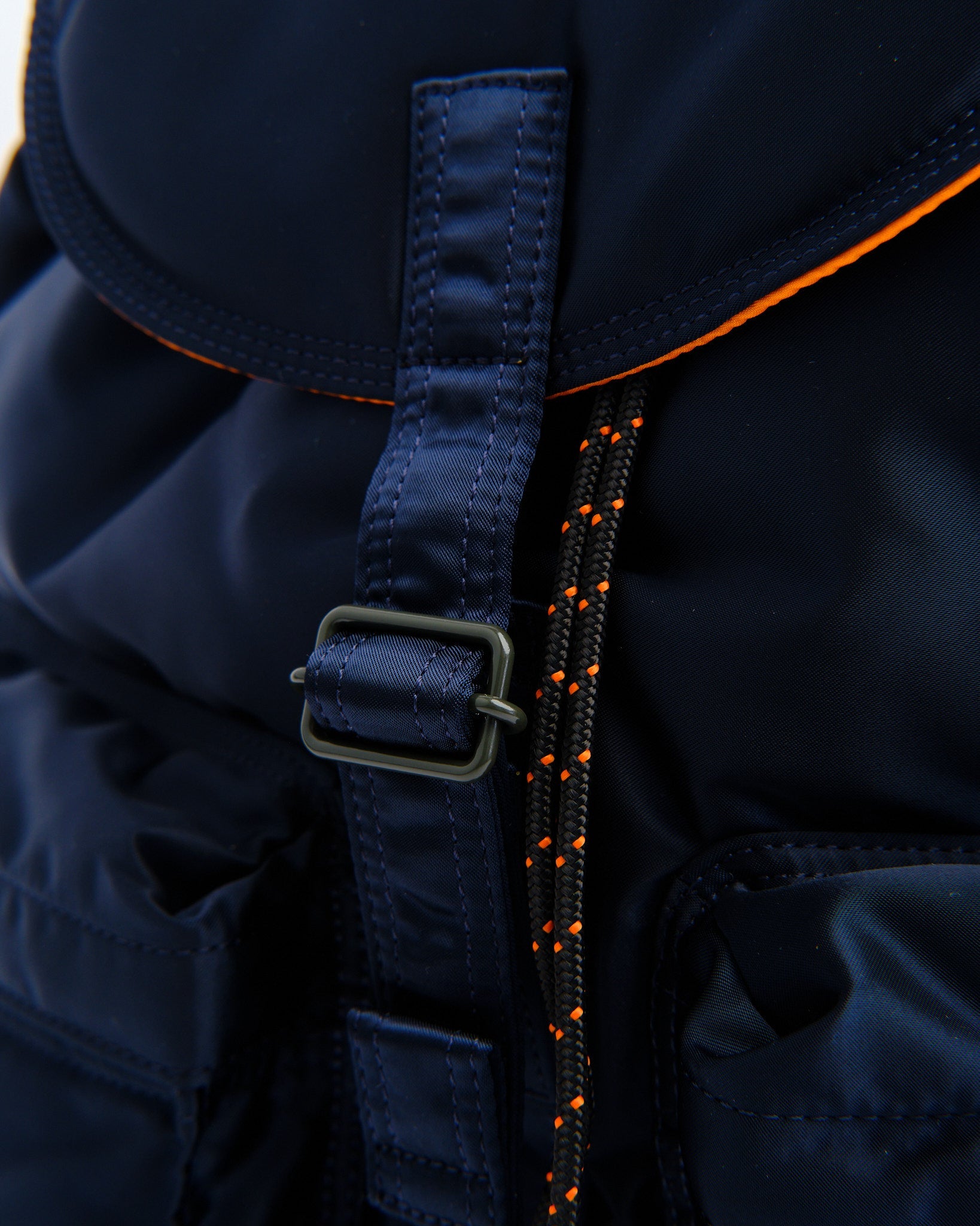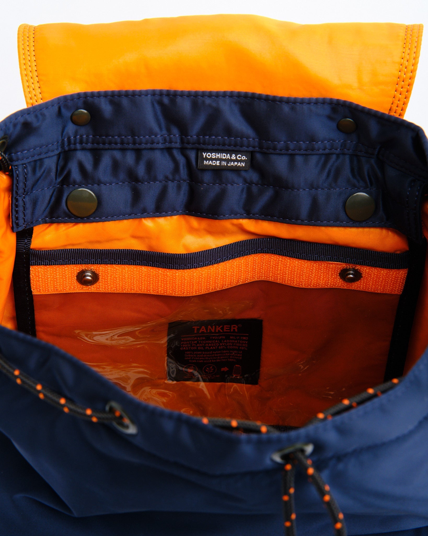 De PORTER BY YOSHIDA Tanker Rugzak (622-01630-50) in Navy is een opvallend item uit de nieuw herboren New Tanker serie. Vervaardigd met 100% plantaardig afgeleide nylon, gemaakt van maïs- en wonderboomplanten, zet de rugzak de nalatenschap van de iconische Tanker collectie voort, nu verrijkt met moderne updates. De stof, geproduceerd door Toray Industries, biedt superieure sterkte, soepelheid, en een levendige glans, terwijl het een milieuvriendelijke aanpak behoudt.