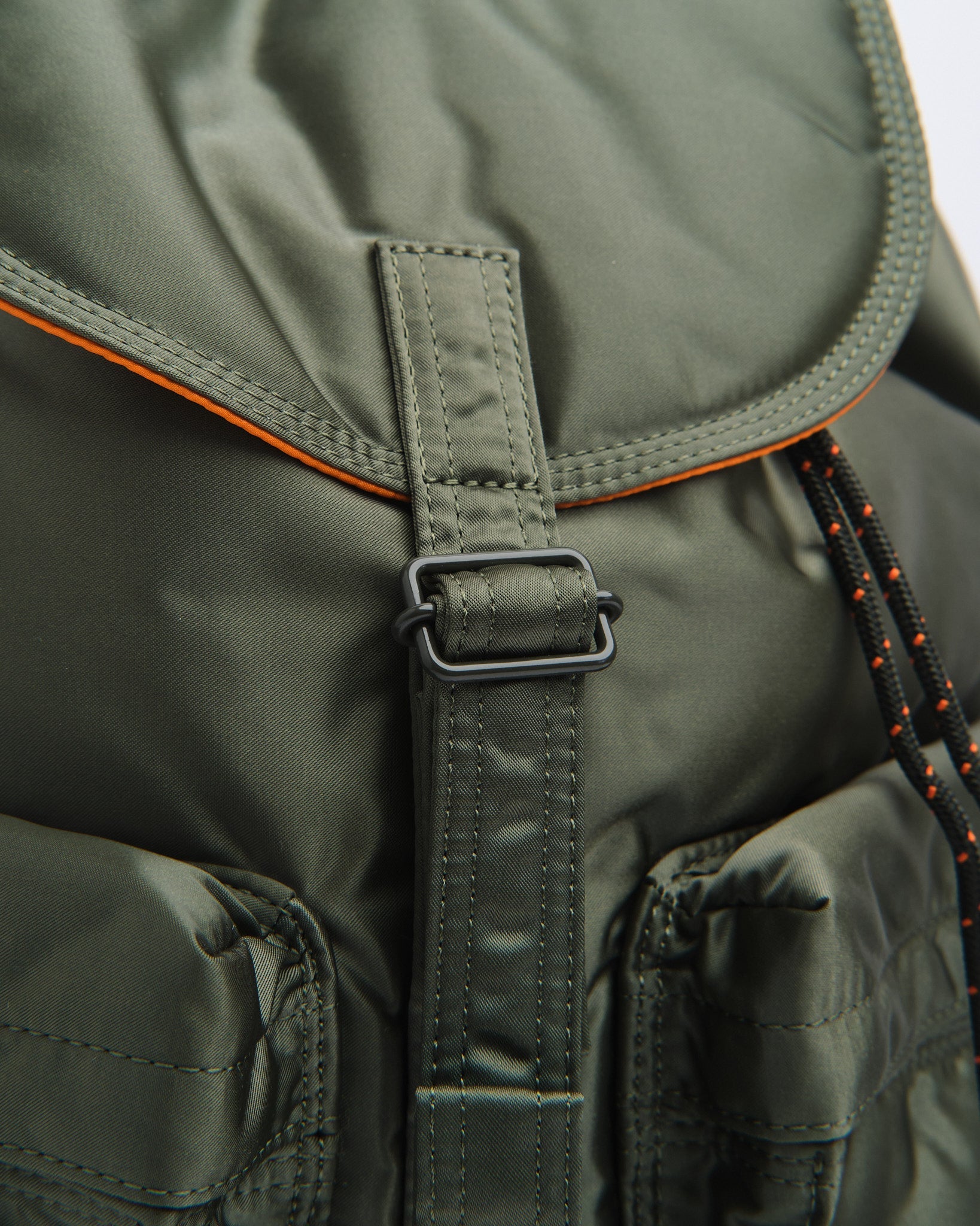 De PORTER BY YOSHIDA Tanker Rugzak (622-01630-30) in Saliegroen is een opvallend item uit de nieuw herleefde New Tanker-serie. Vervaardigd met 100% plantaardig nylon, gemaakt van maïs- en wonderboomplanten, zet de rugzak de erfenis van de iconische Tanker-collectie voort, nu verrijkt met moderne updates. De stof, geproduceerd door Toray Industries, biedt superieure sterkte, soepelheid en een levendige glans, terwijl het een milieuvriendelijke benadering behoudt.