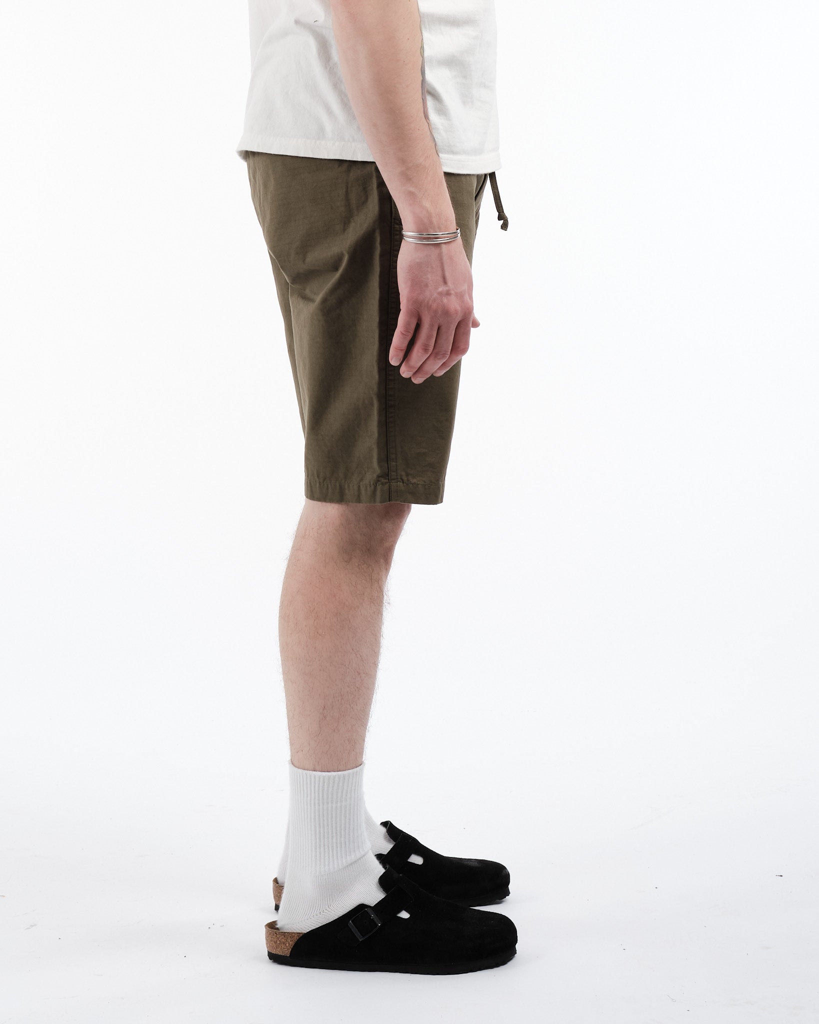 De orSlow New Yorker Shorts in Army Green zijn een veelzijdige toevoeging aan elke garderobe, die comfort combineert met een utilitaire esthetiek. Vervaardigd uit 100% katoenen ripstop stof, zijn deze shorts zowel lichtgewicht als duurzaam, wat ze ideaal maakt voor dagelijks gebruik. De elastische tailleband met een intern trekkoord zorgt voor een comfortabele en aanpasbare pasvorm, terwijl twee zijzakken en een enkele achterzak met paspel praktische opbergoplossingen bieden. Ontworpen en gemaakt in Japan, weerspiegelen deze shorts de toewijding van orSlow aan kwaliteitsvakmanschap en tijdloze stijl.