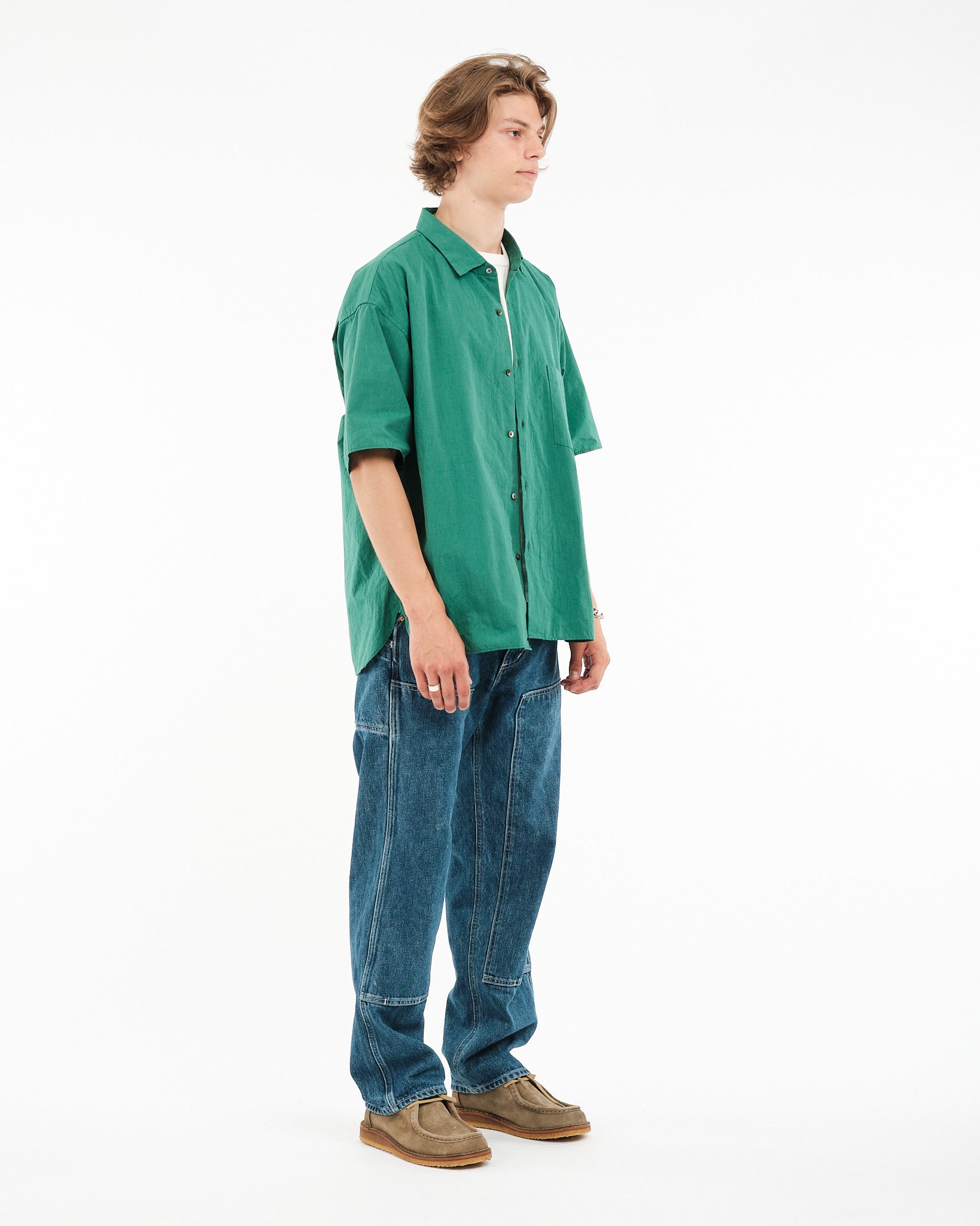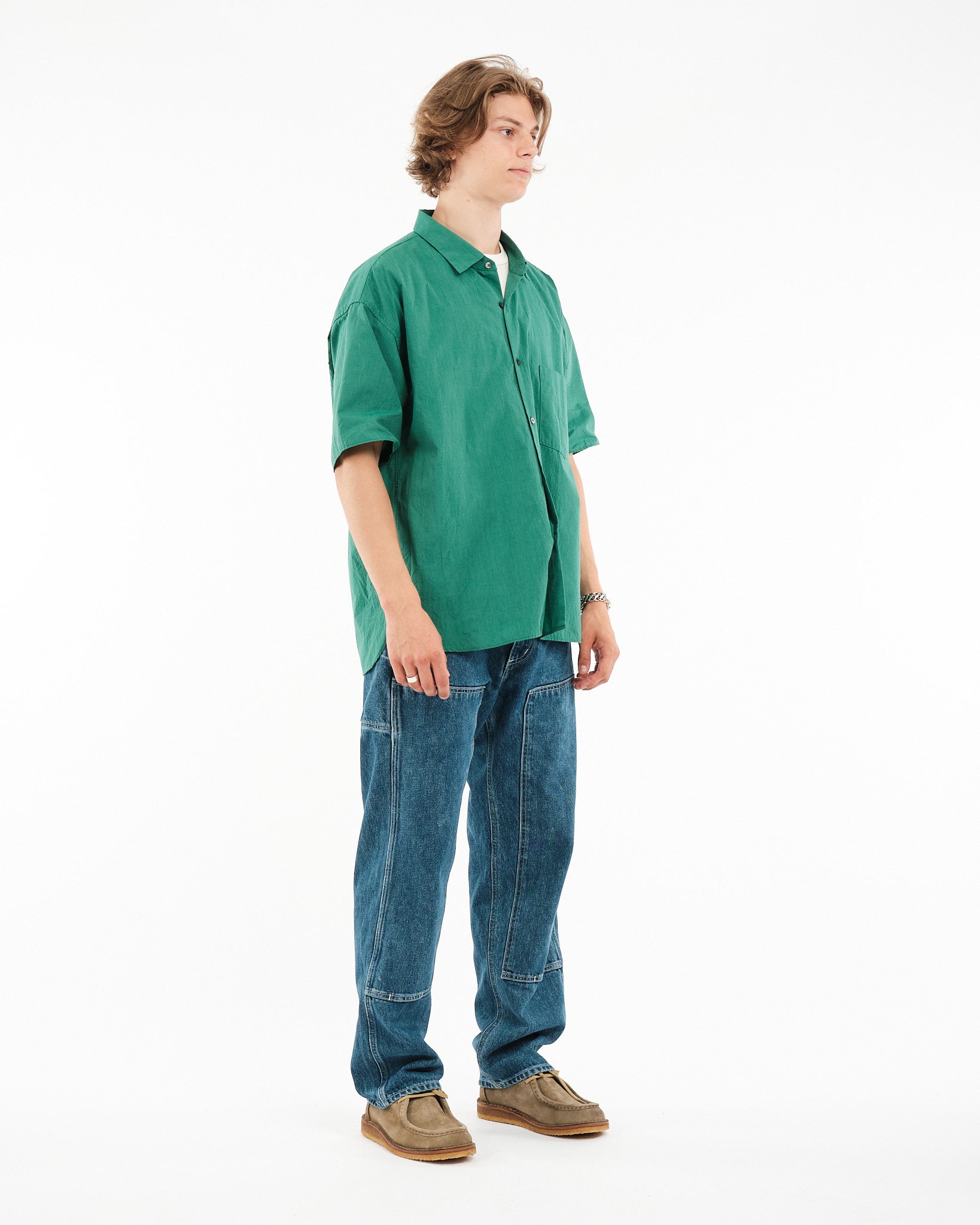 Ontdek Nanamica's OOAL H/S Wind Shirt in een betoverend Zeegroen. Dit shirt, vervaardigd in Japan met stijlnummer #SUGS314E, is gesponnen van een zachte, lichtgewicht broadcloth, gebruikmakend van het innovatieve katoen omhulde polyester kerngaren. Het ontwerp valt op door zijn haarlijn streep broadcloth, gebruikmakend van garen geverfd in een natuurlijke gradatie van 3 kleuren geïnspireerd door natuurfotografie. Met een ontspannen pasvorm silhouet, heeft het een royale nek, volumineuze mouwen, en is afgewerkt met matte schelpknopen. Premium mix van 60% katoen en 40% polyester.