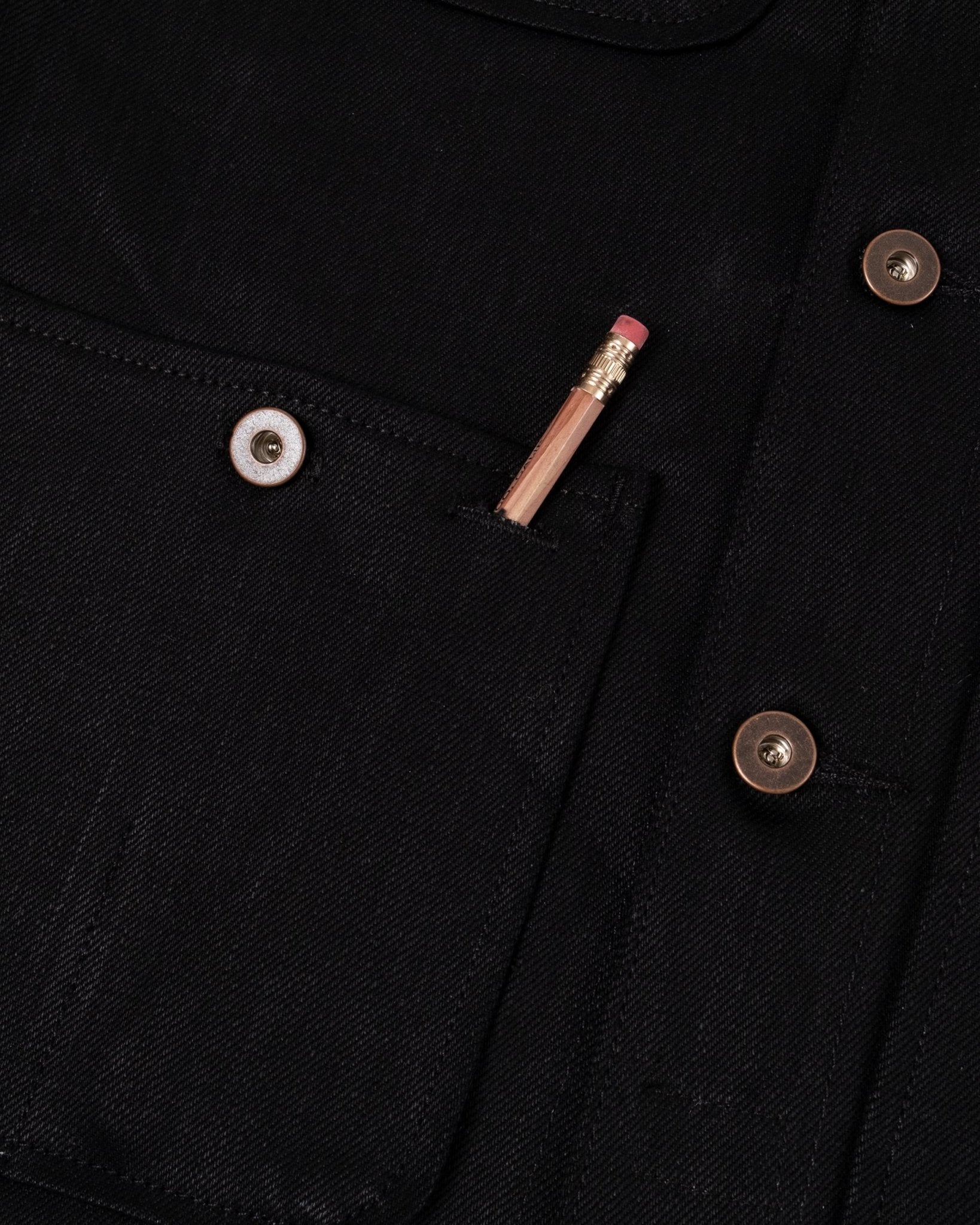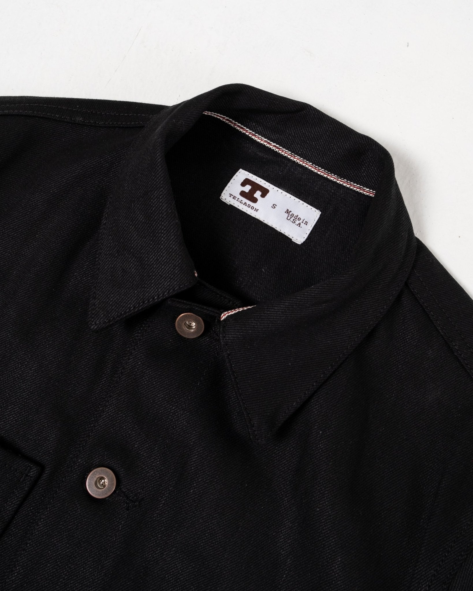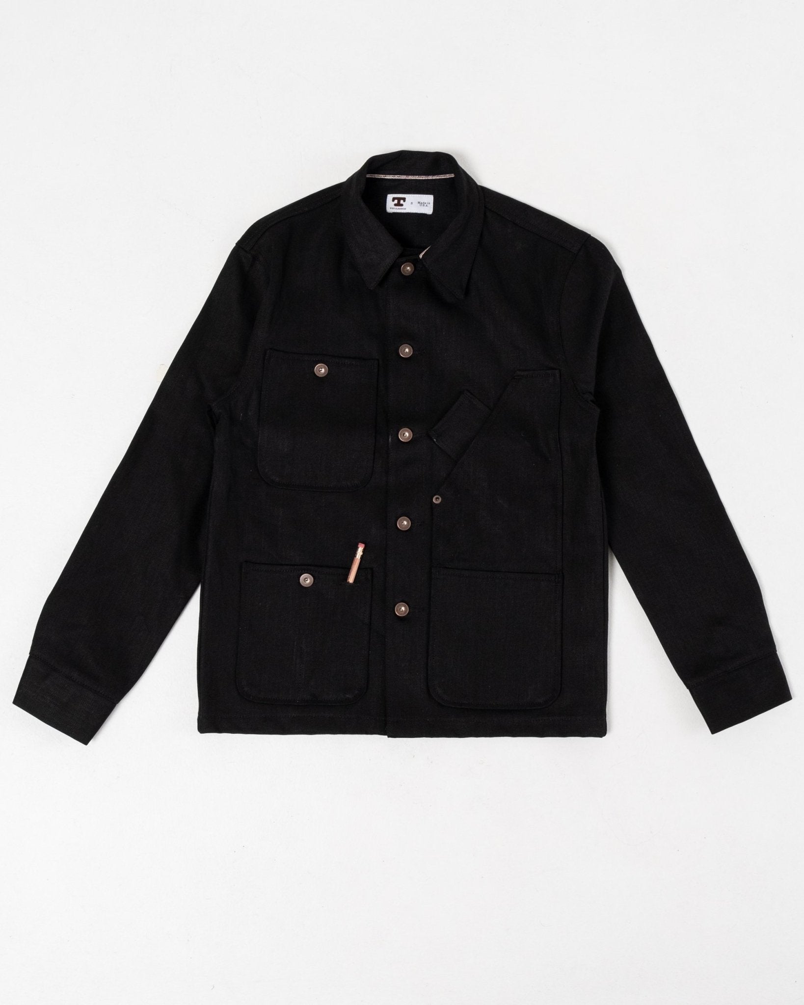 Coverall Jacket van Tellason gemaakt van een mooie 13,5 oz Japanse selvage denim, genaaid in San Francisco. Vier grotere buitenzakken en een brillenzak aan de voorkant samen met één binnenzak. Wordt mooier naarmate je het meer draagt. Metalen knopen aan de voorkant en in de manchetten. Gemaakt in de VS.