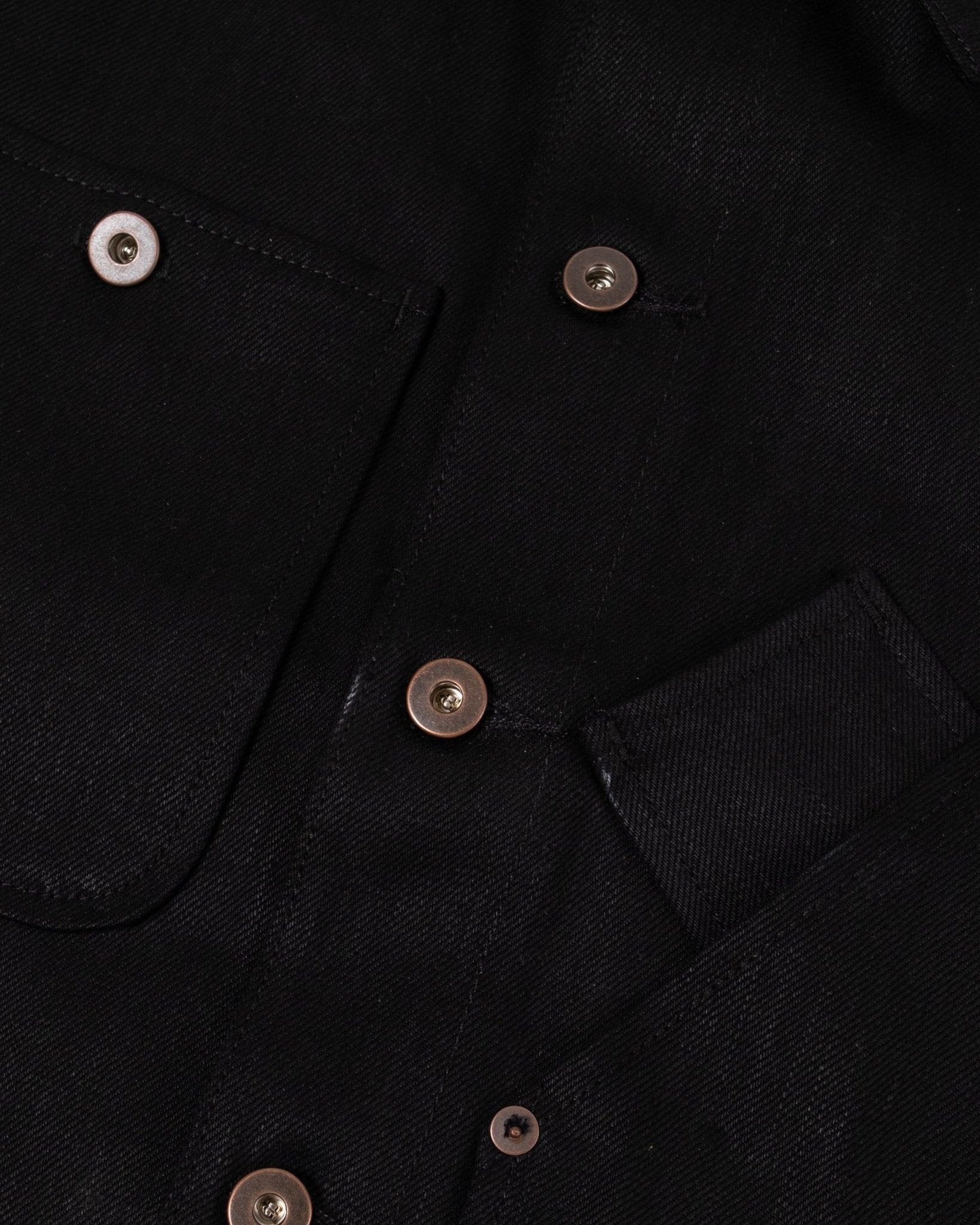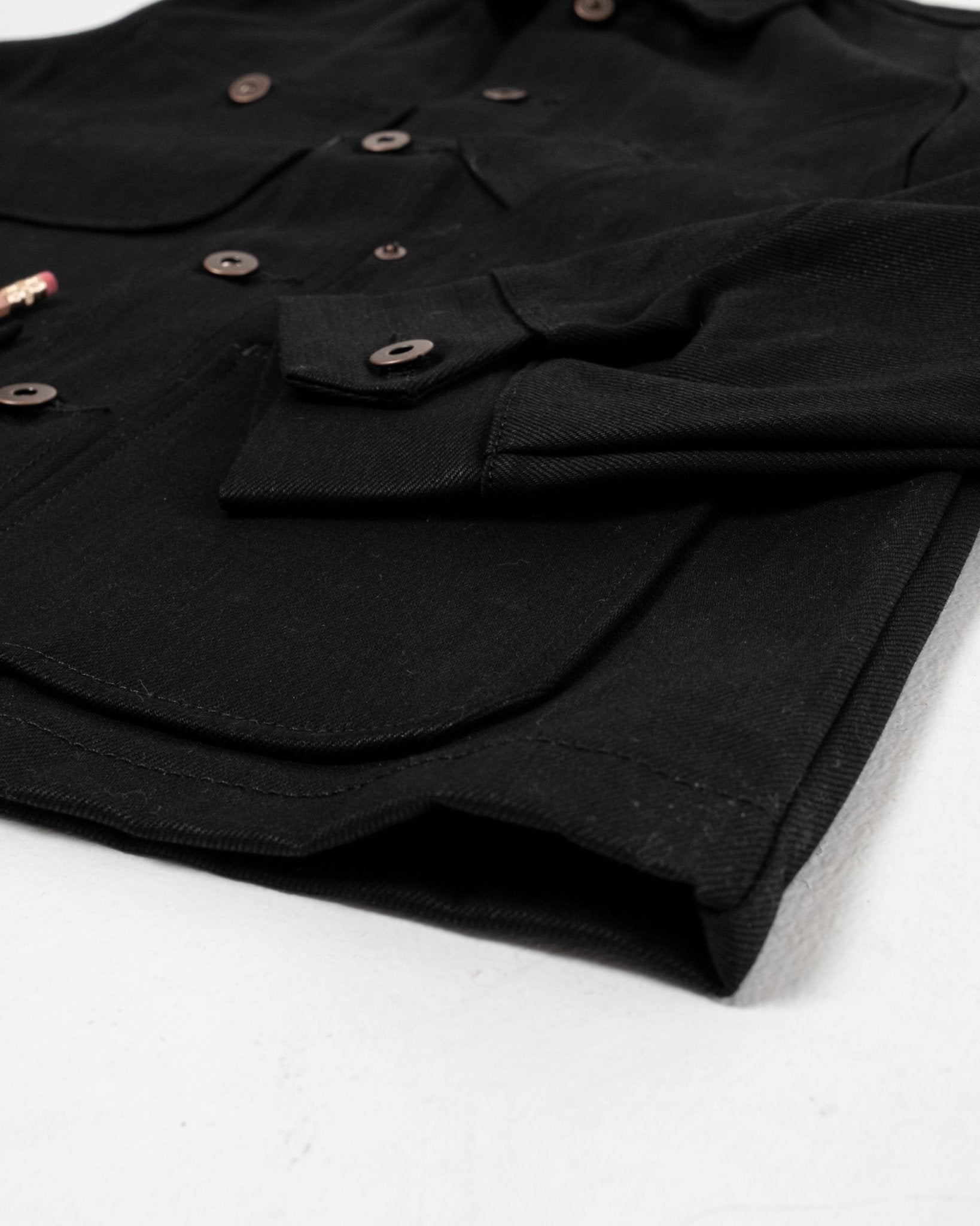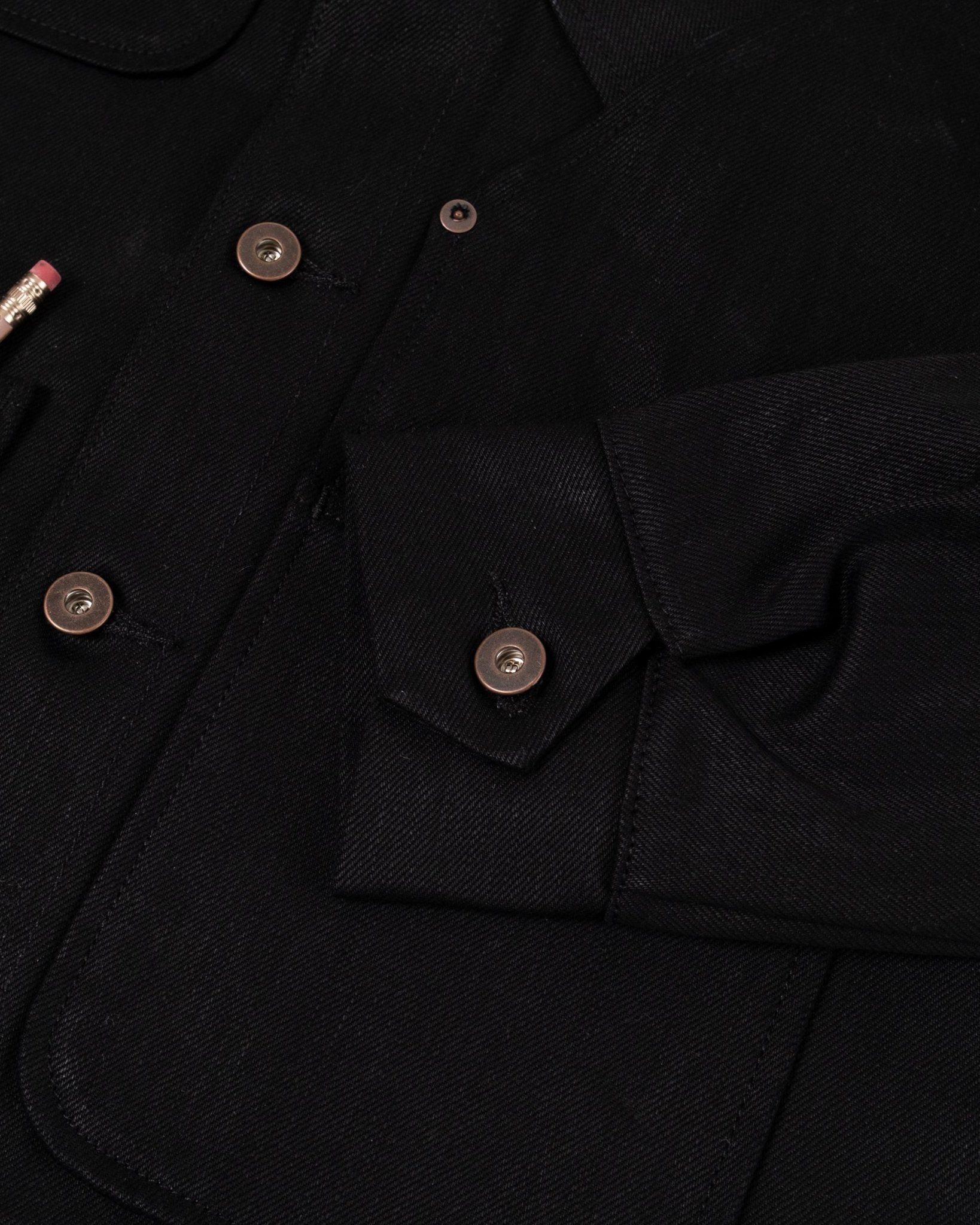 Coverall Jacket van Tellason gemaakt van een mooie 13,5 oz Japanse selvage denim, genaaid in San Francisco. Vier grotere buitenzakken en een brillenzak aan de voorkant samen met één binnenzak. Wordt mooier naarmate je het meer draagt. Metalen knopen aan de voorkant en in de manchetten. Gemaakt in de VS.