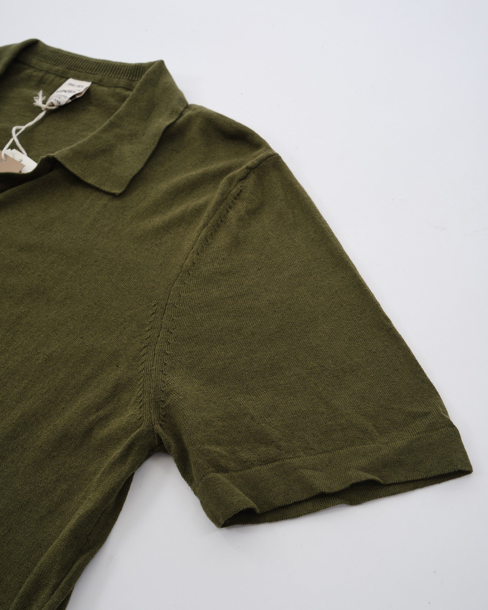 Voel je comfortabel maar toch stijlvol in de Maglificio GRP Polo S/S in het groen. Zorgvuldig vervaardigd uit een mix van 20% linnen en 80% biologisch katoen, biedt deze polo een lichtgewicht gevoel dat perfect is voor die warmere dagen. De kenmerkende mix van vezels biedt een zachte aanraking door het linnen en heeft een droge afwerking om je de hele dag comfortabel te houden. Deze polo toont de ambachtelijke fully-fashioned breitechniek, zichtbaar in het naaddetail dat over de schouders loopt. De levendige groene kleur van het shirt voegt een verfrissende kleurpop toe aan je ensemble.