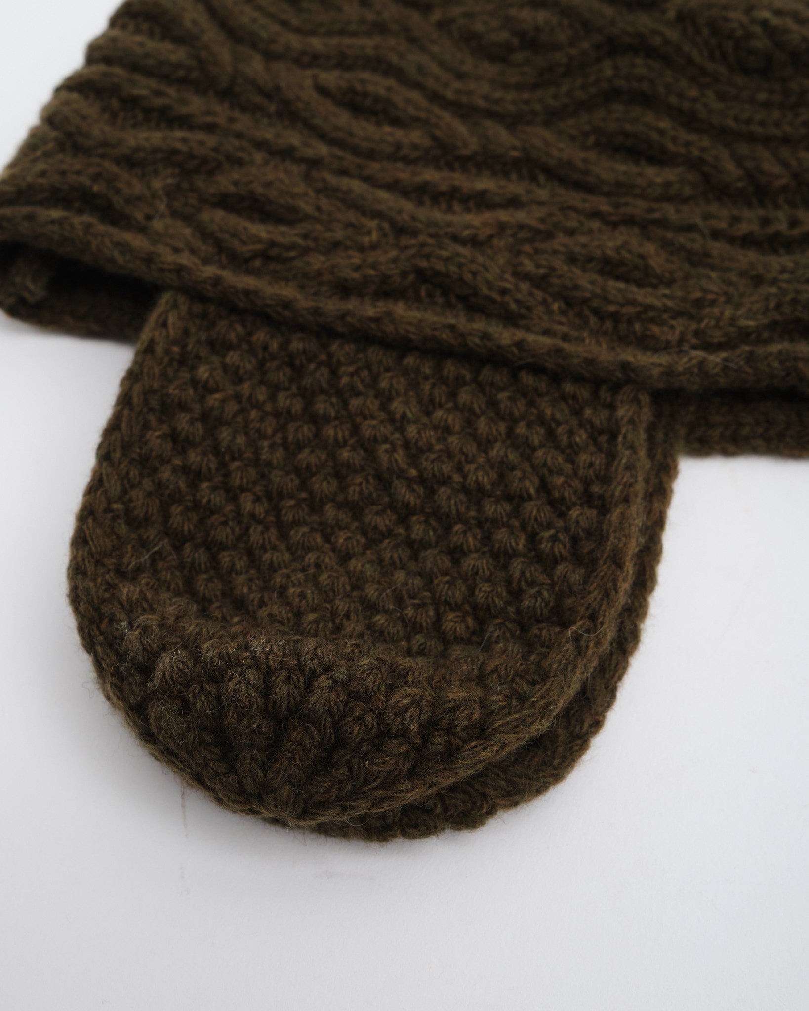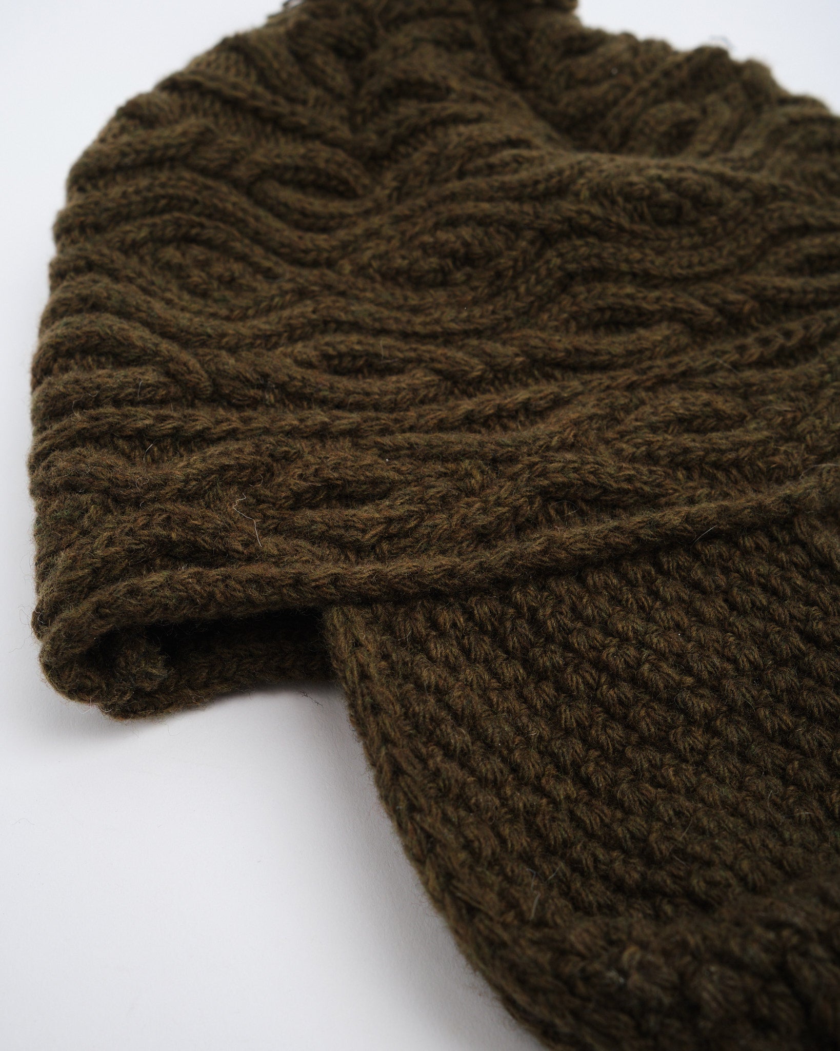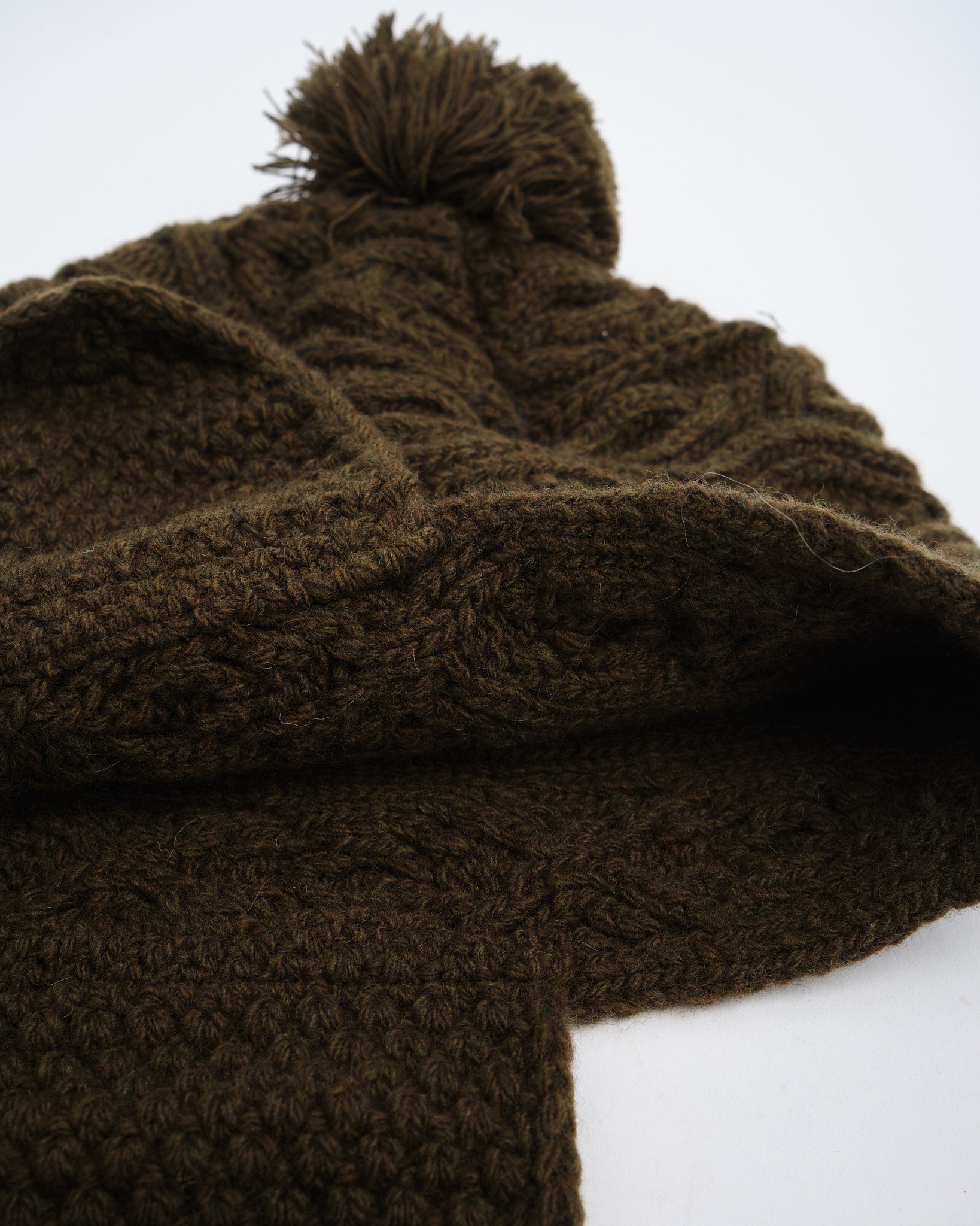 The Pom Pom Beanie in Olive by Found Feather is a perfect blend of cozy warmth and playful personality. Crafted in Japan from a washable lambswool blend, it features a chunky 3x cable knit pattern and soft brushed texture. With an oversized 20 cm crown and 11 cm ear panels, it’s designed for cold days and complete comfort. A self-yarn pom pom tops it all off, while a one-panel construction and QR-coded care label round out this unisex winter essential.