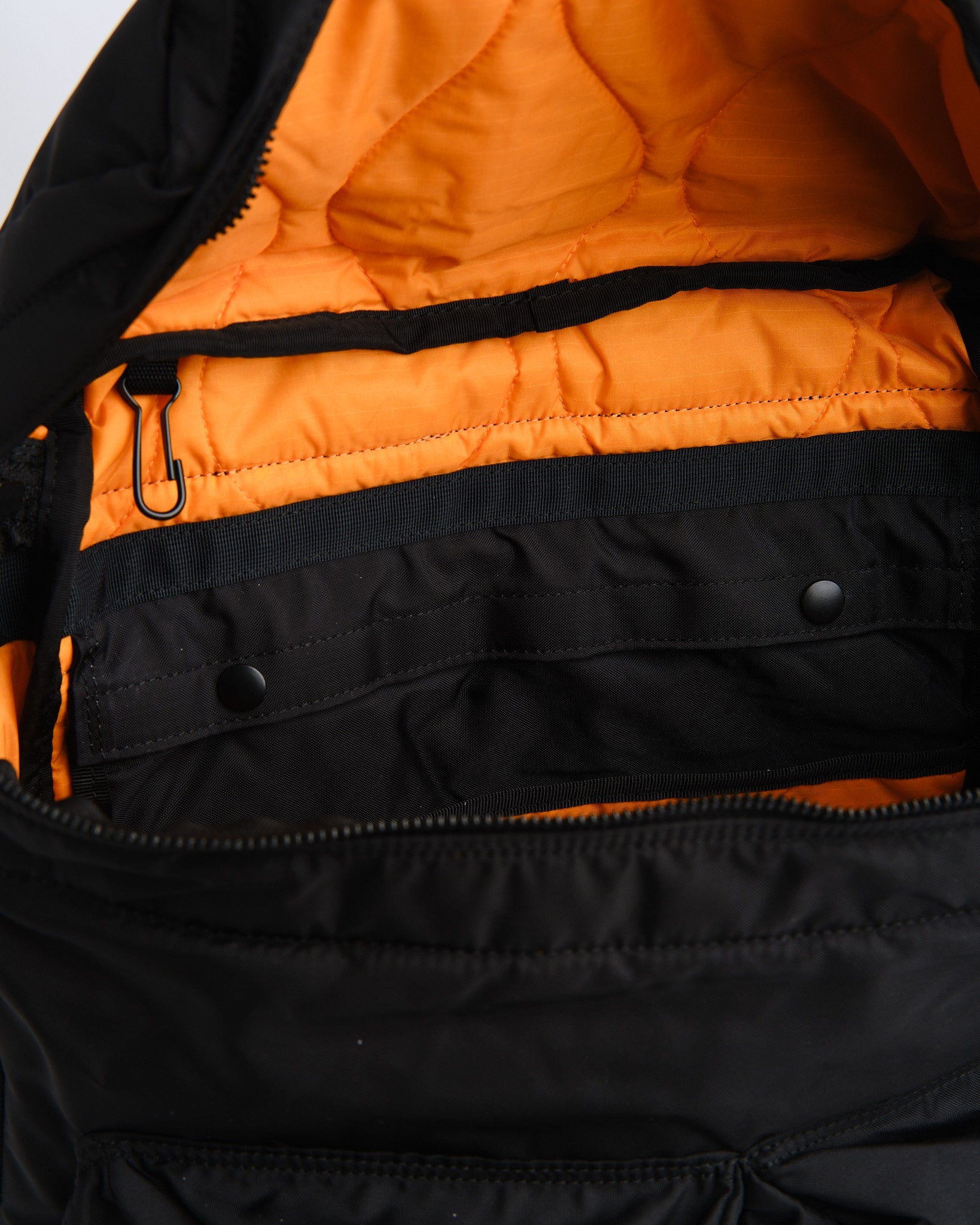 Ontdek de PORTER YOSHIDA PORTER FORCE DAYPACK in het zwart, een fusie van moderne stijl en militaire precisie. Ontworpen en vervaardigd in Japan, haalt deze rugzak inspiratie uit de kleurvariaties die in militaire uitrusting worden gevonden. Hij is gemaakt van Nylon Ox stof met een acrylcoating terwijl de binnenkant is gevoerd met gewatteerd nylon ripstop in een opvallende noodoranje tint. Deze combinatie zorgt niet alleen voor een lange levensduur, maar voegt ook een uniek element toe aan zijn esthetische aantrekkingskracht. De rugzak heeft een ruim hoofdcompartiment dat gemakkelijk B4-formaat items kan bevatten, samen met verschillende externe ritszakken, een Velcro zak en interne organisatievakken. Een daarvan kan worden losgemaakt voor extra gemak. Met afmetingen van W 295mm x H 410mm x D 130mm en een gewicht van 735g is het perfect geschikt voor dagelijks gebruik, zonder in te boeten aan stijl of functionaliteit. Bovendien garandeert de ruime capaciteit van 19L voldoende ruimte om al je essentiële spullen op te bergen.