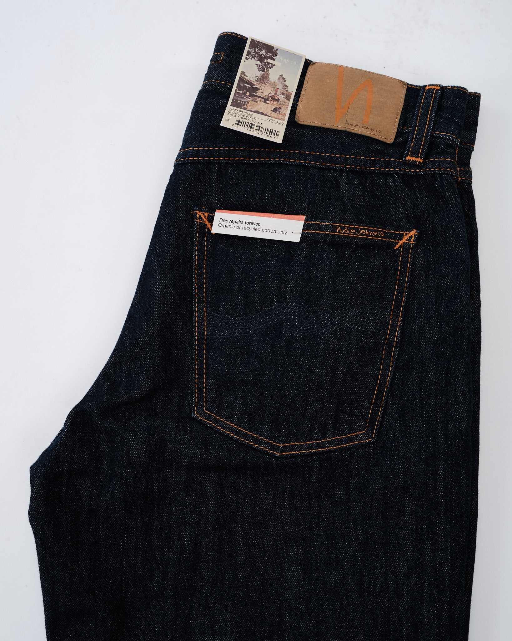 De NUDIE JEANS CO. RAD RUFUS BLUE ONE WASH is een viering van eenvoudige, authentieke denim. Deze jeans met hoge taille, reguliere pasvorm en rechte pijpen zijn gemaakt van regeneratief biologisch katoen, wat zowel duurzaamheid als langdurig comfort garandeert.