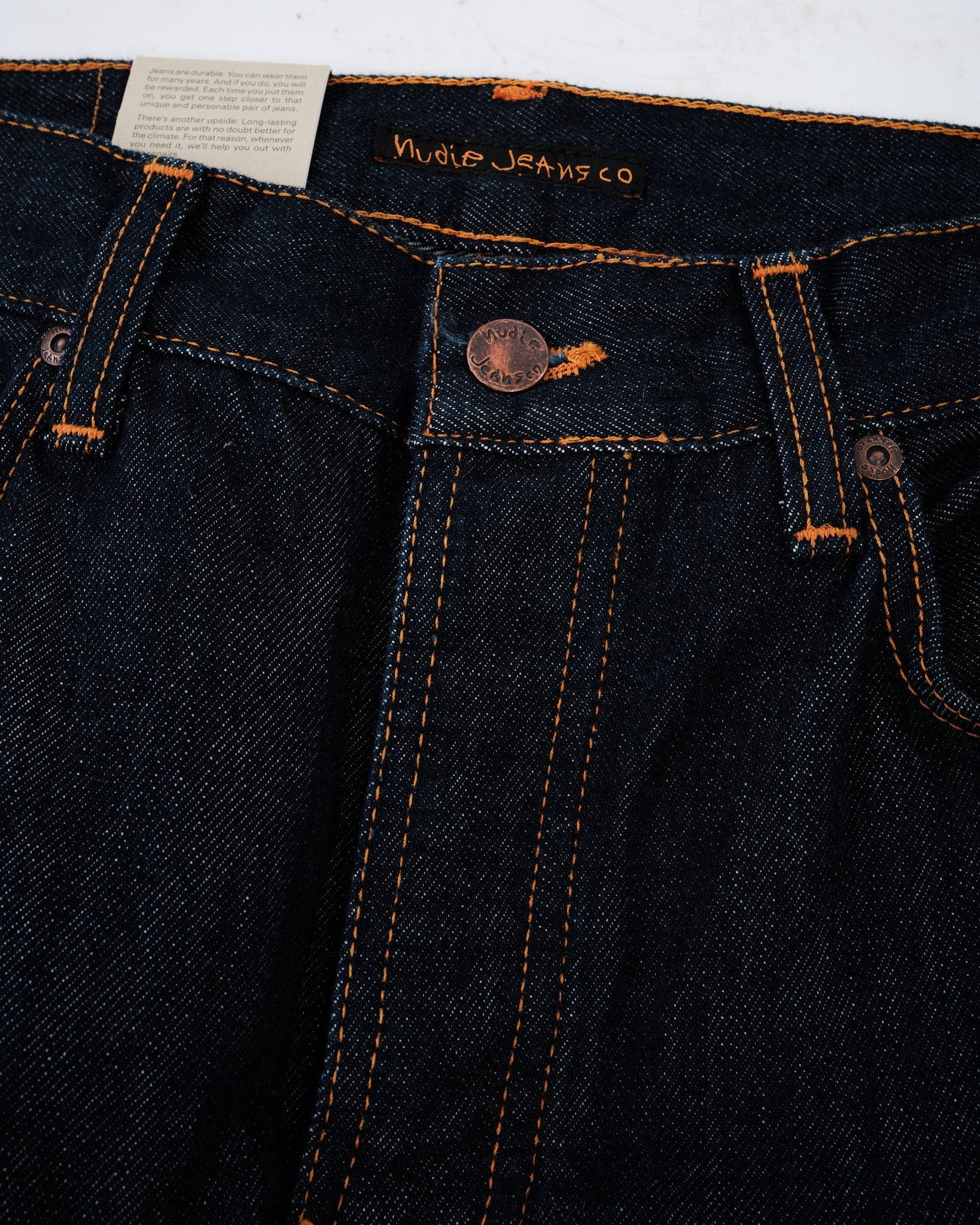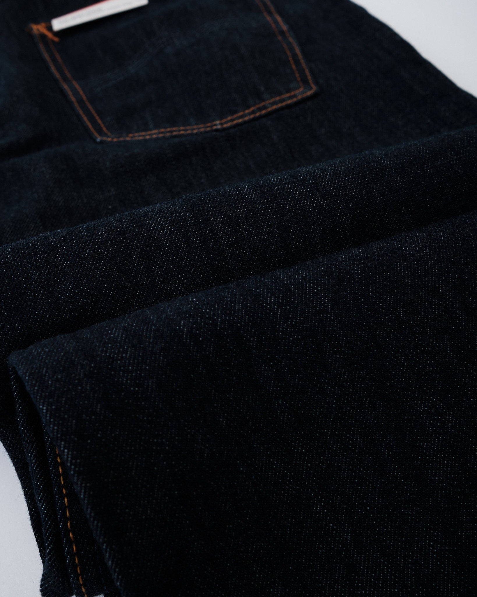 Geïnspireerd door de natuurlijke schoonheid van een enkele thuiswas van droge denim, heeft dit paar een diepblauwe wassing die overgaat van donkerblauw naar een rijk, roodachtig blauw. Gemaakt van vintage-stijl diep indigo denim met een medium slub karakter, versterkt de wassing de textuur van de stof, waardoor deze van glad naar prachtig onregelmatig transformeert.