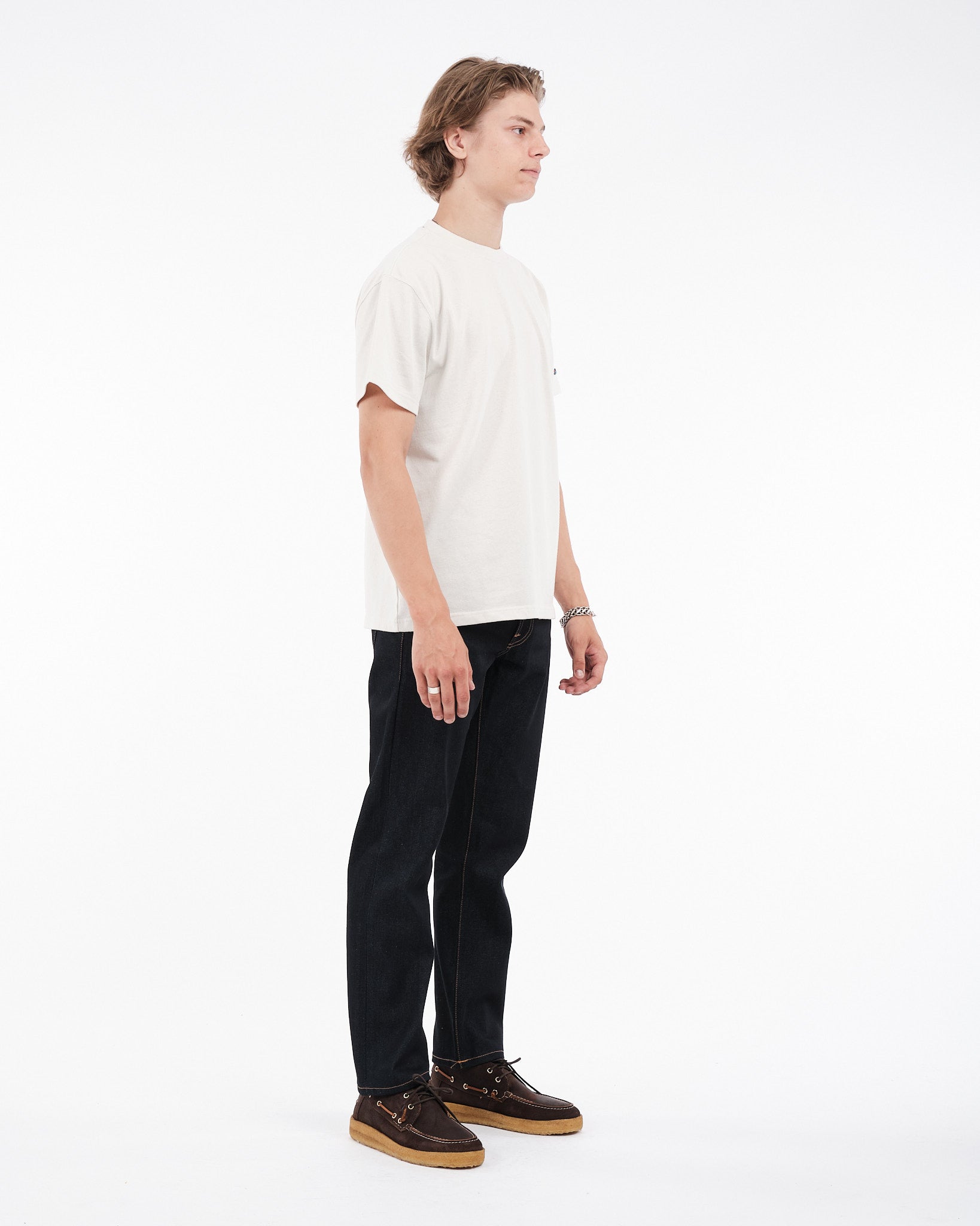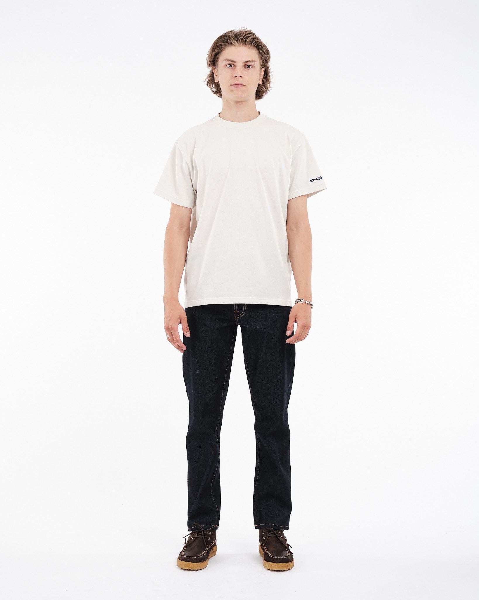 Omarm duurzaamheid met de NUDIE JEANS Rebirth Tee Pin in Offwhite. Dit T-shirt met ronde hals is gemaakt van 100% materialen die ongebruikt katoen en gerecycled polyester combineren. Het resultaat is een stijlvolle jersey stof met een duidelijk gestructureerde look. Versierd met een geborduurde veiligheidsspeld patch op de mouw en een uniek rebirth label, pleit dit losvallende T-shirt voor een milieubewuste stijl. In plaats van je oude kleren weg te gooien, geef ze een nieuw leven om te helpen een groenere morgen te creëren. Ontworpen in PT biedt dit T-shirt zowel mode als ethische aantrekkingskracht.