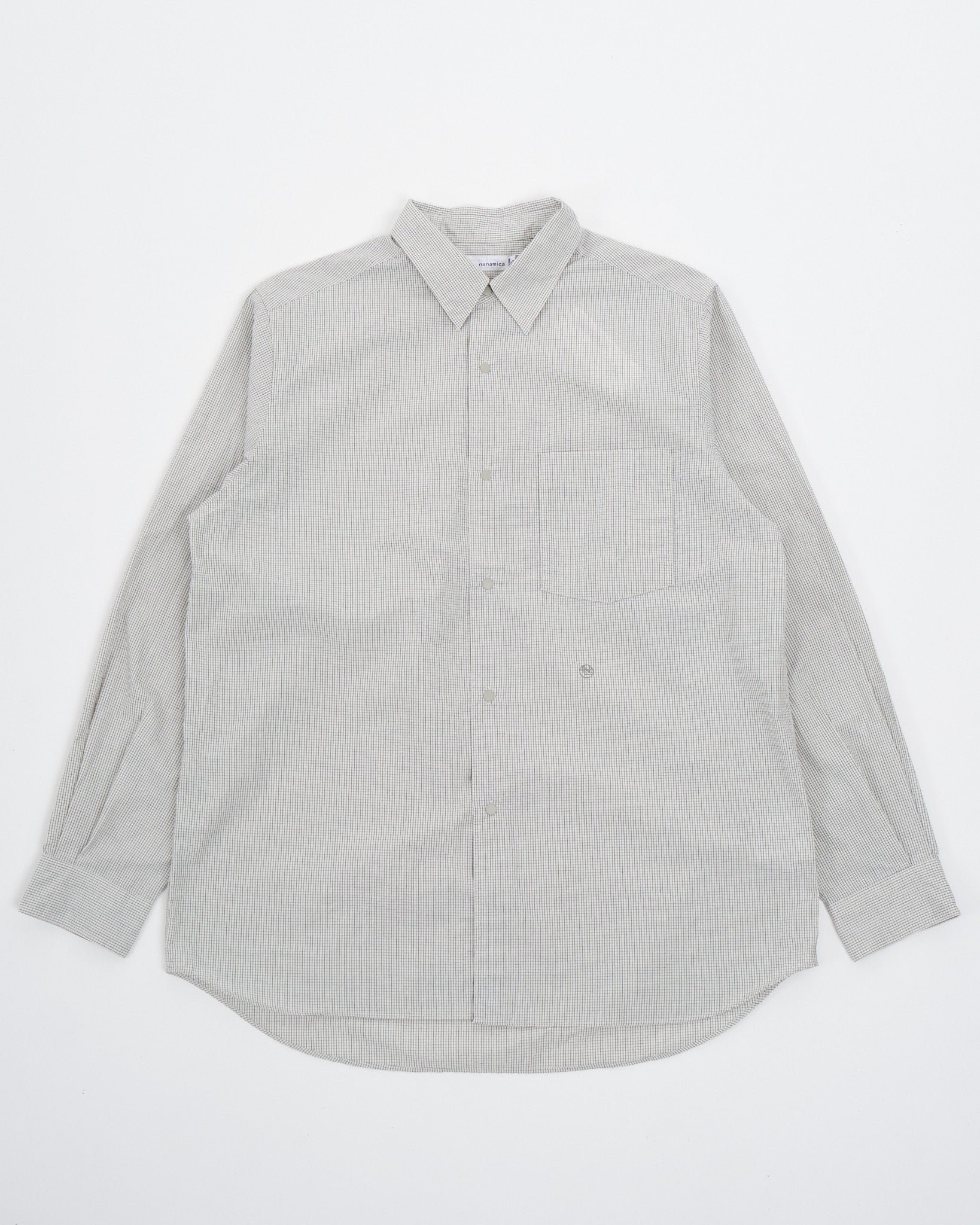 Stap in verfijnde elegantie met Nanamica's Regular Collar Wind Shirt in een serene Natuurlijke tint. Het shirt combineert traditionele charme met hedendaagse elegantie. De unieke broadcloth stof, gemaakt van bedekt kerngaren, is doordacht ontworpen met katoen dat een polyester kern omhult. In vergelijking met de standaard SUGS307, heeft het een lichtere stof textuur en biedt het een silhouet dat ongeveer één maat slanker is. Het shirt heeft een klassiek grafisch ruitpatroon, dat subtiel zijn esthetische aantrekkingskracht verhoogt. Om het ontwerp te complementeren, zijn alle knopen uitgevoerd als stipknopen, vergezeld van decoratieve knoopsgaten, voor dat extra vleugje finesse.