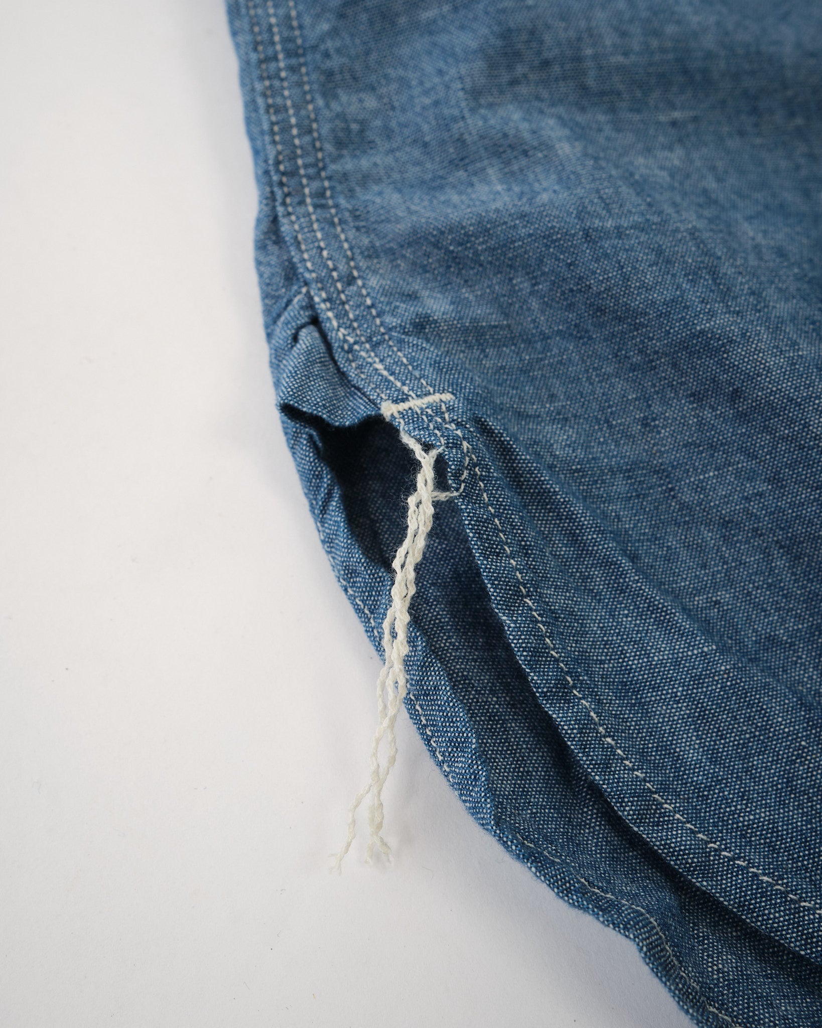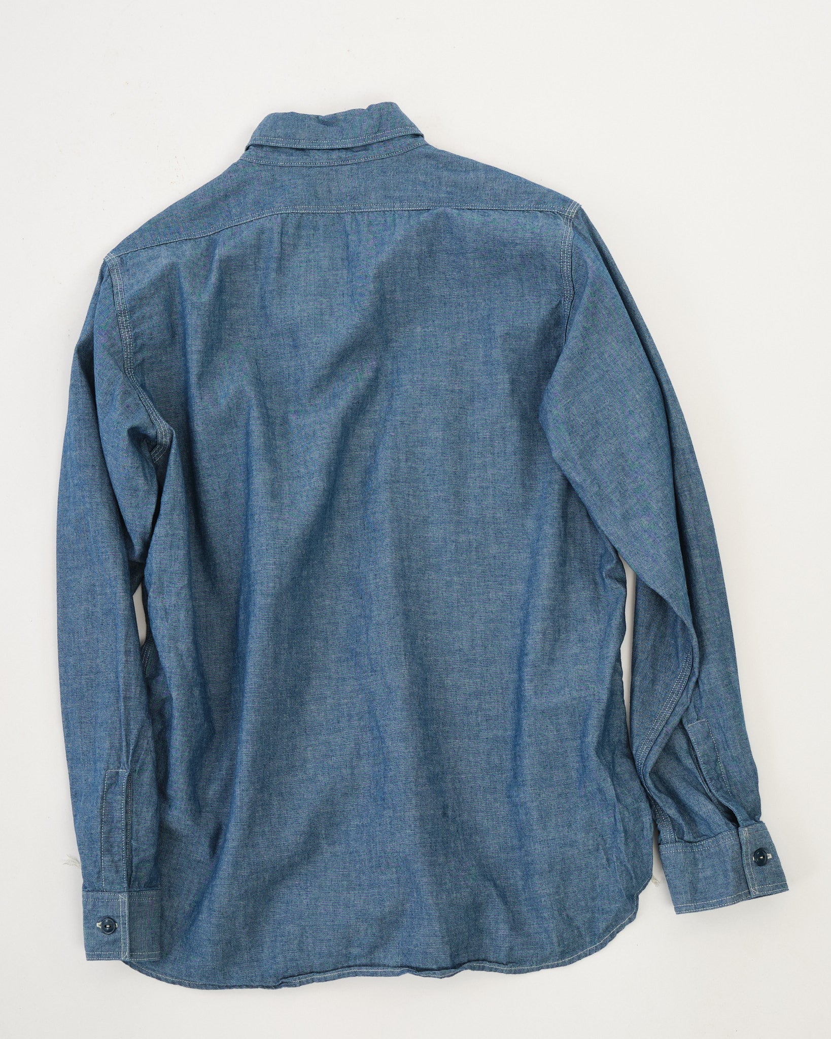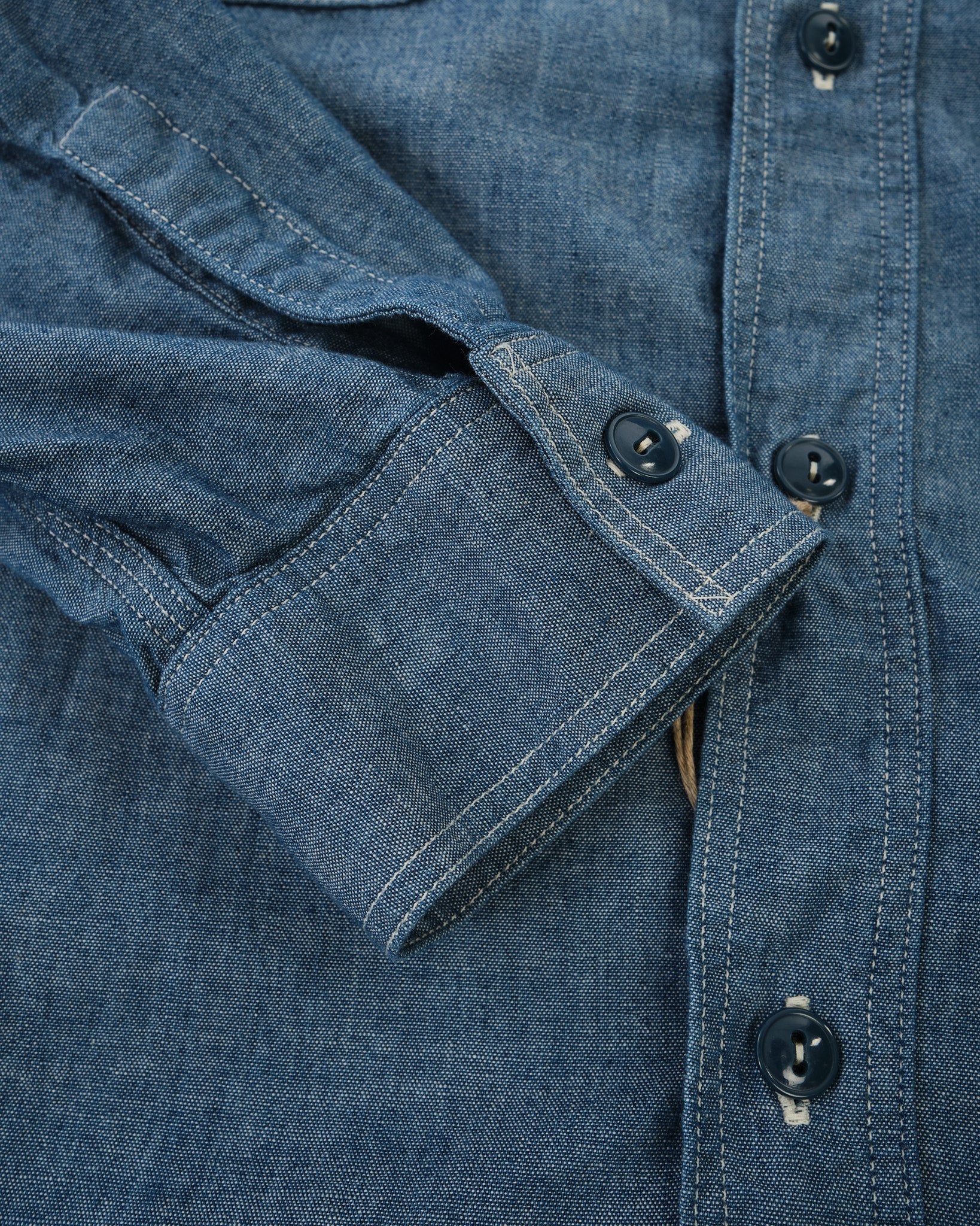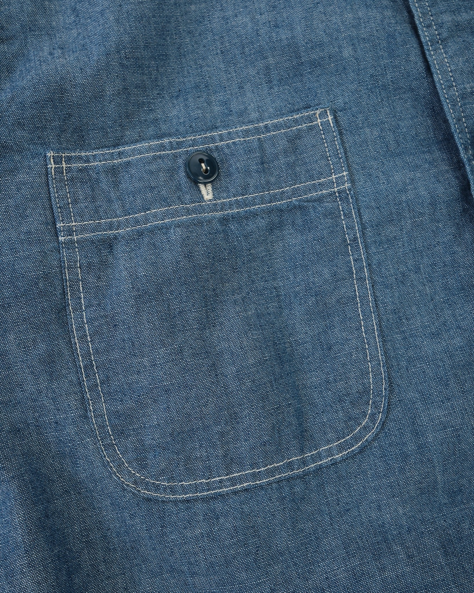 De chambray stof biedt een subtiele textuur en een klassieke blauwe tint, waardoor het veelzijdig is voor verschillende stylingopties. Of het nu dichtgeknoopt wordt gedragen voor een gepolijste look of over een T-shirt voor een casual vibe, dit shirt mengt functionaliteit naadloos met tijdloze stijl.