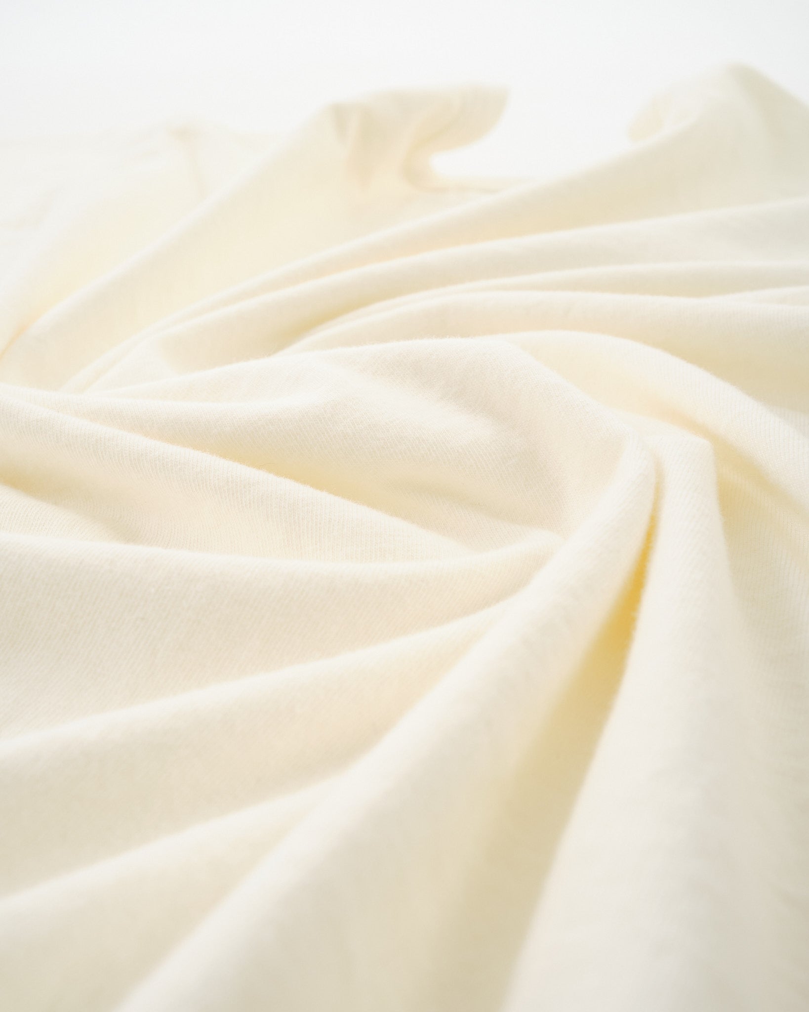 Made from #19 yarn spun from recycled cotton, the fabric balances structure and softness. The medium weight feel makes it versatile across seasons — substantial enough to wear on its own, yet refined enough to layer comfortably under shirts or jackets. The slightly shorter sleeve length is intentionally designed for easy layering without excess bulk.