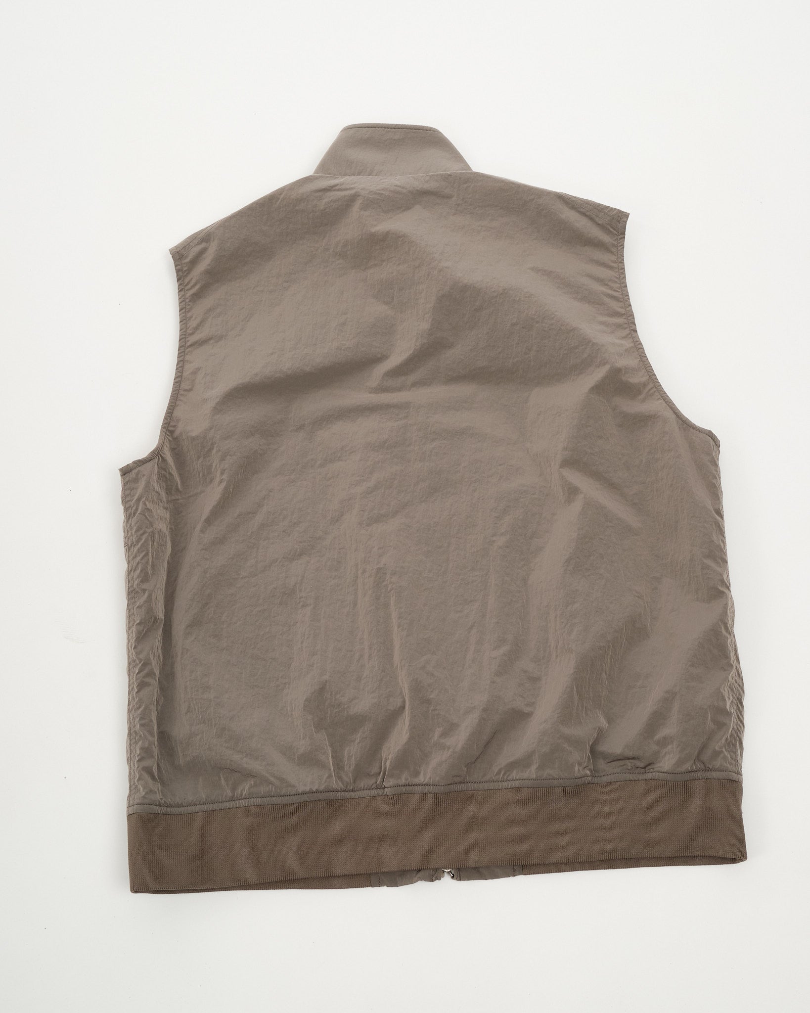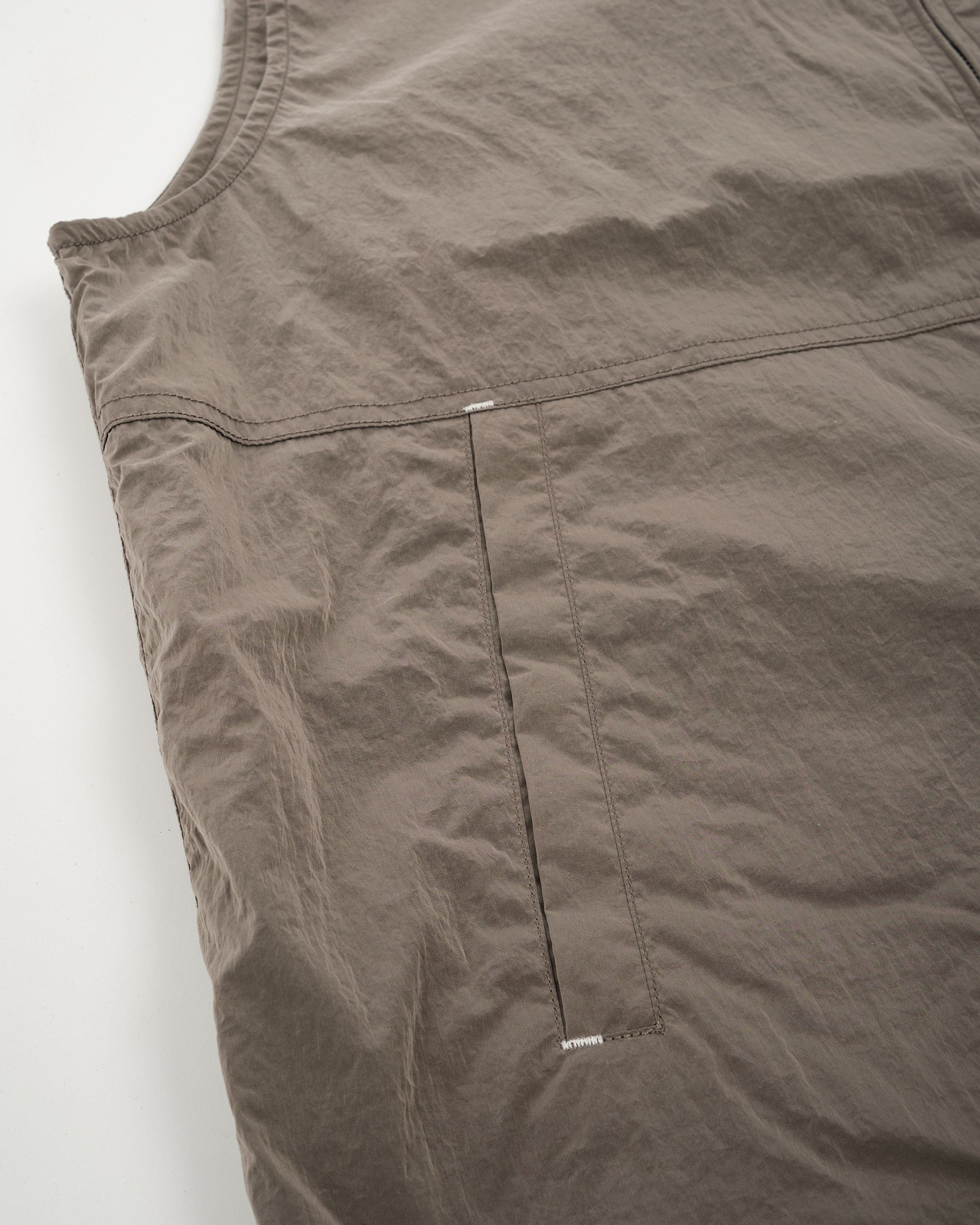 Ontdek het ontwerp van de Beige Nanamica SUAS412E Zip Up Wind Vest, een mix van traditionele swingtops en hedendaagse outdoorvesten. Gemaakt van nylon taffeta biedt de stof een opvallende driedimensionale uitstraling met veranderende tinten afhankelijk van hoe je ernaar kijkt. Dit effect wordt bereikt door de draden te kleuren en de inslagdraden zwart te verven. Met vier handige utility zakken aan de binnenkant is dit vest. Modieus en praktisch, voor dagelijks gebruik of buitenavonturen.