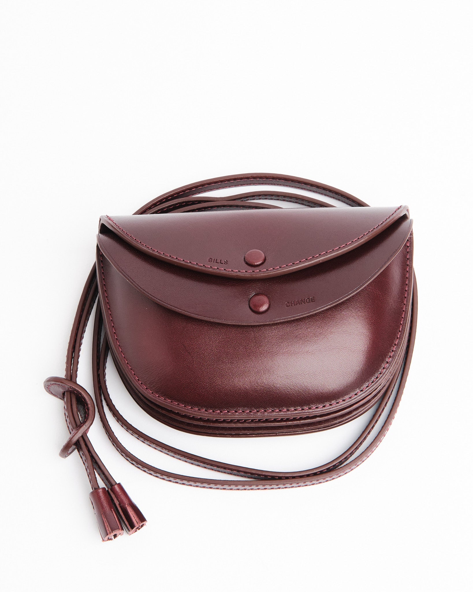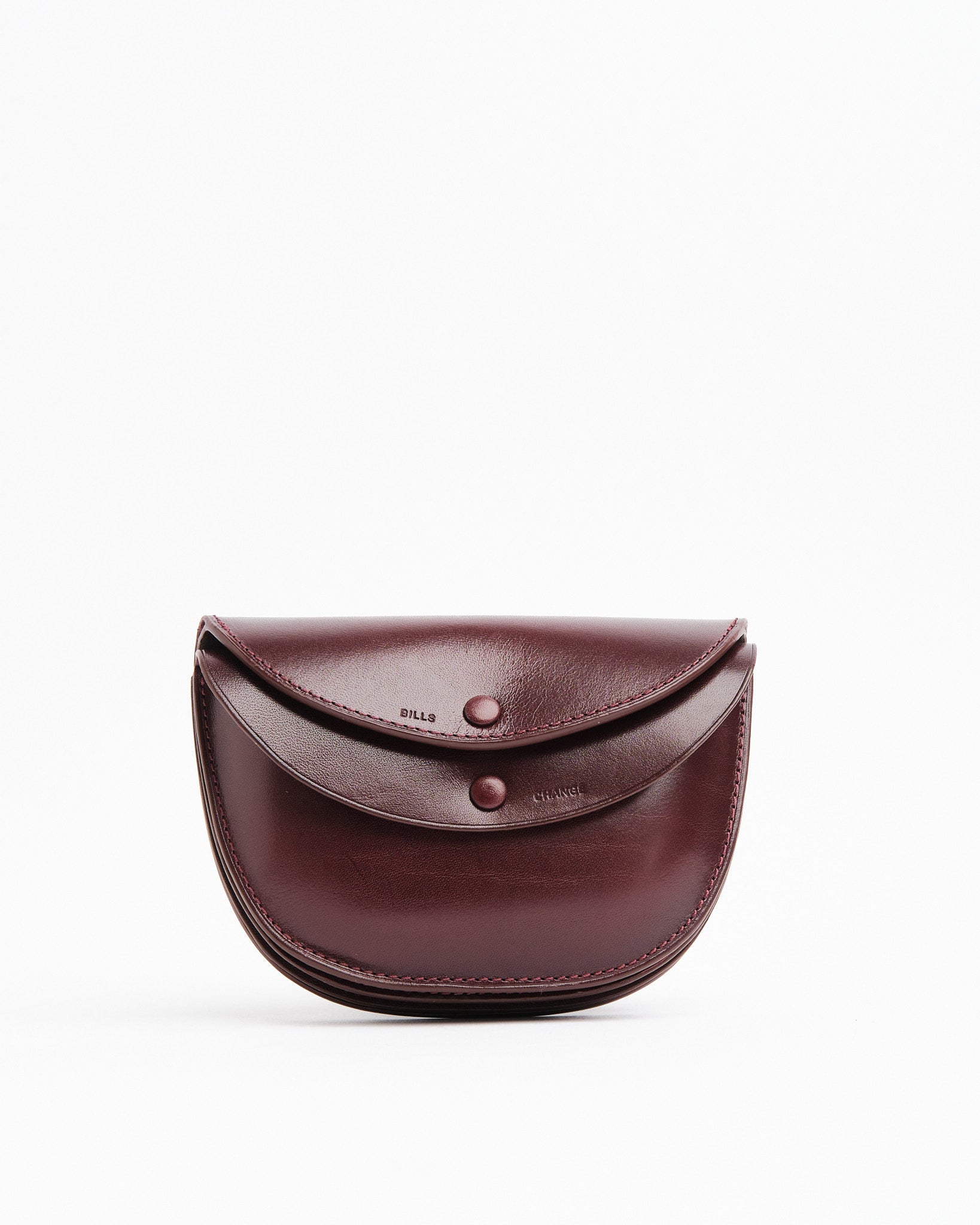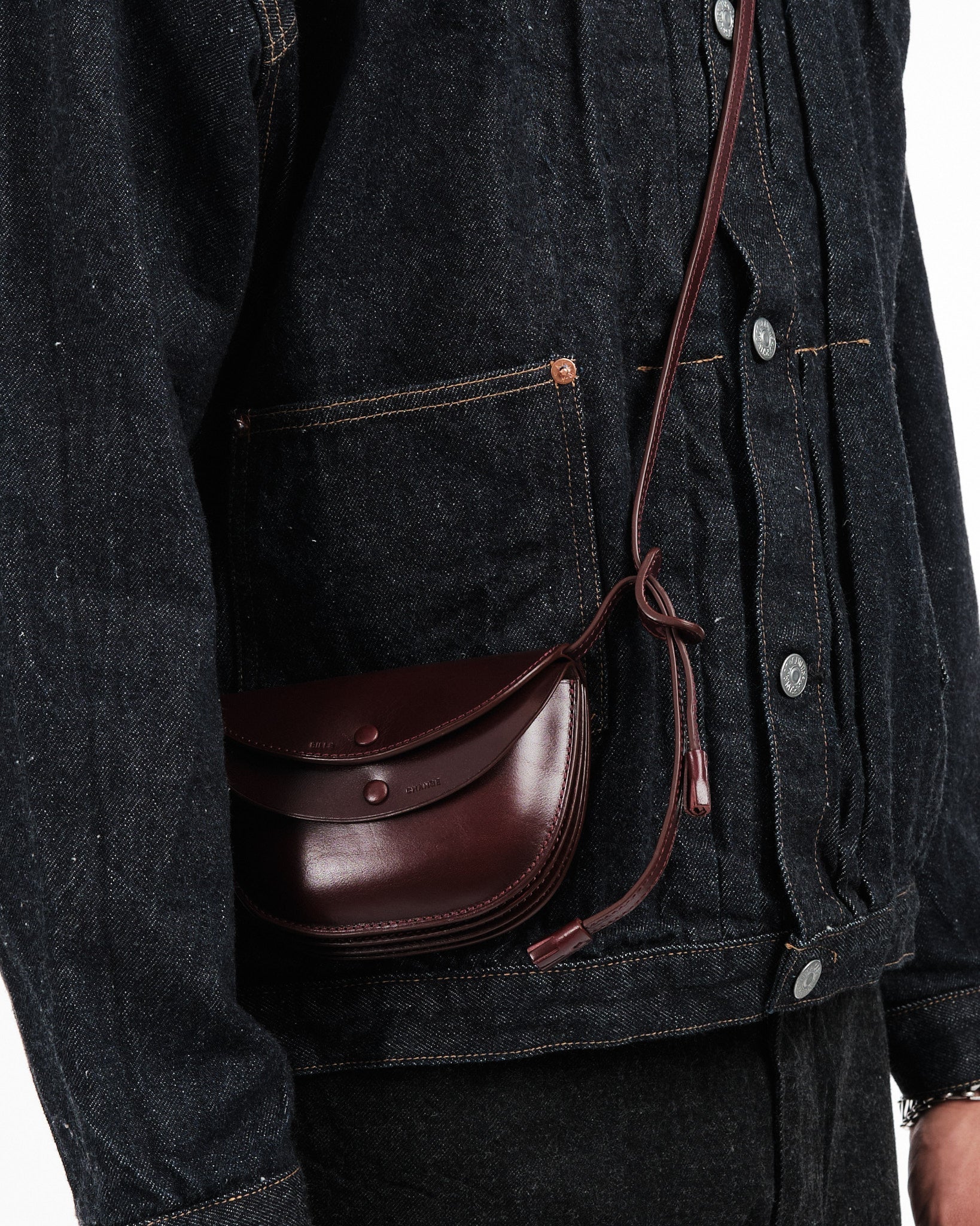 Bekijk de Kaptain Sunshine Round Wallet Mid Porch in Burgundy, een accessoire gemaakt van hoogwaardig Italiaans koeienleer. Dit veelzijdige item dient zowel als portemonnee als een tasje met een harmonica gevormde zak die voldoende opbergruimte biedt. Je kunt je look veranderen, met de schouderriem die een perfecte balans van praktisch nut en verfijning creëert.