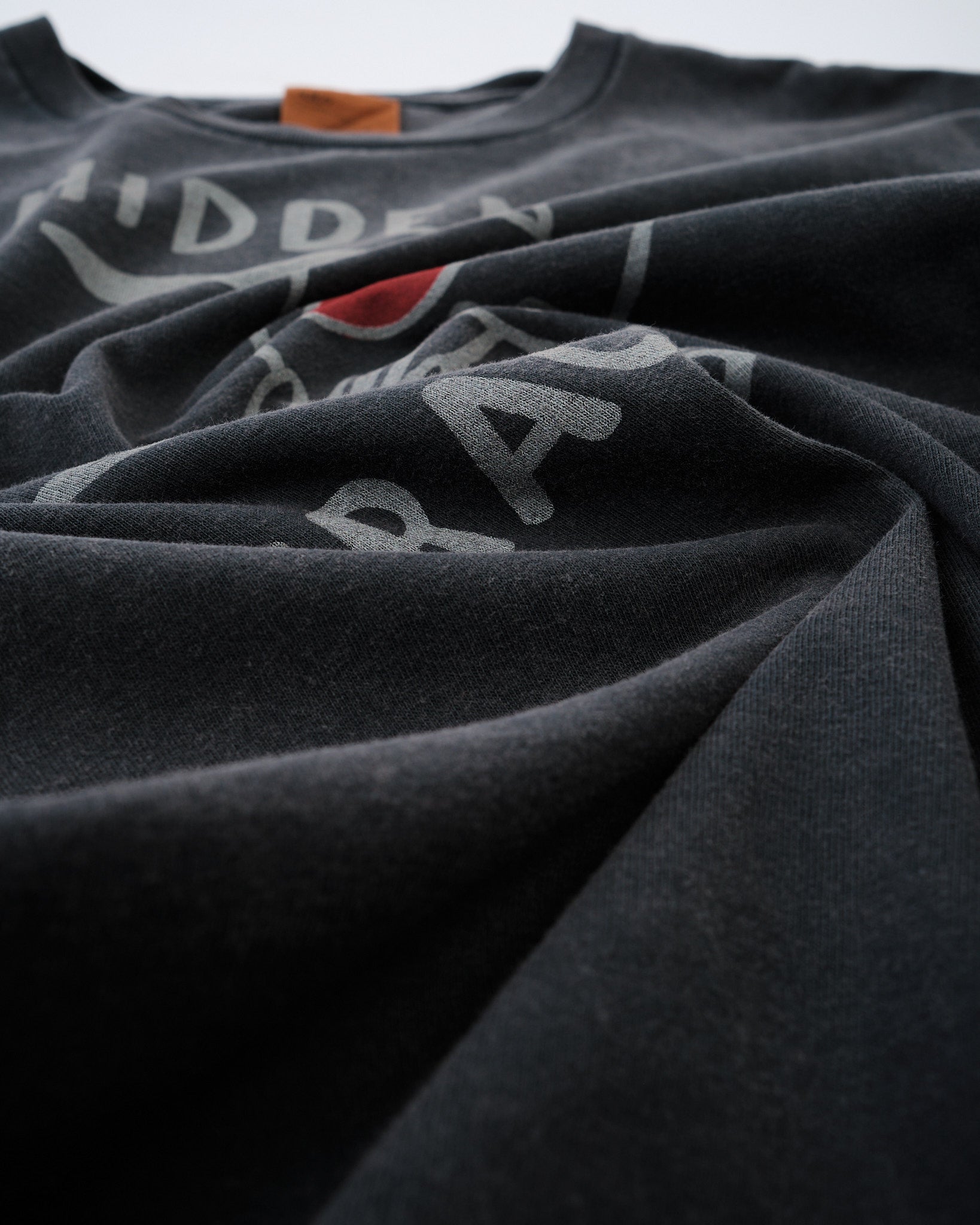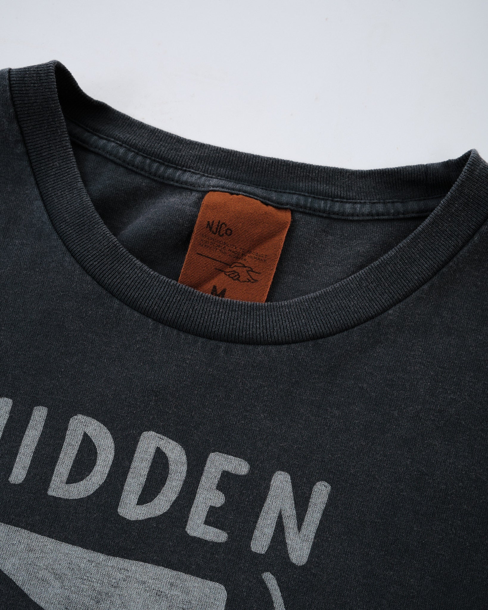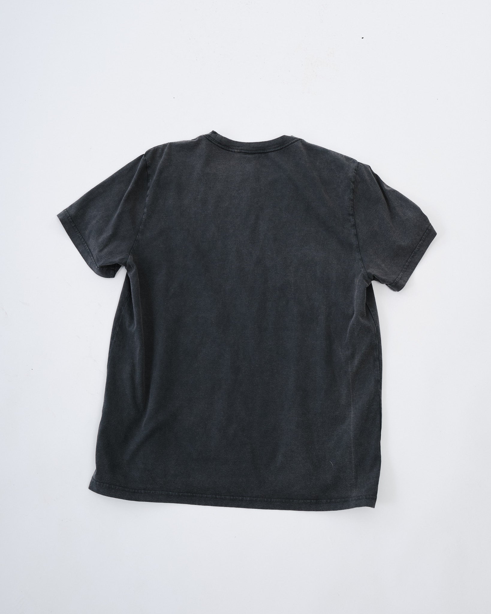 De diepe antracietkleur is kledinggeverfd en vervaagd gewassen, waardoor het een natuurlijk ingedragen uiterlijk krijgt. Na verloop van tijd zal de kleur blijven vervagen, waardoor het de perfecte aanvulling is op goed gedragen denim. Afgewerkt met een borstopdruk, combineert dit T-shirt moeiteloze stijl met een uitgesproken vintage karakter.