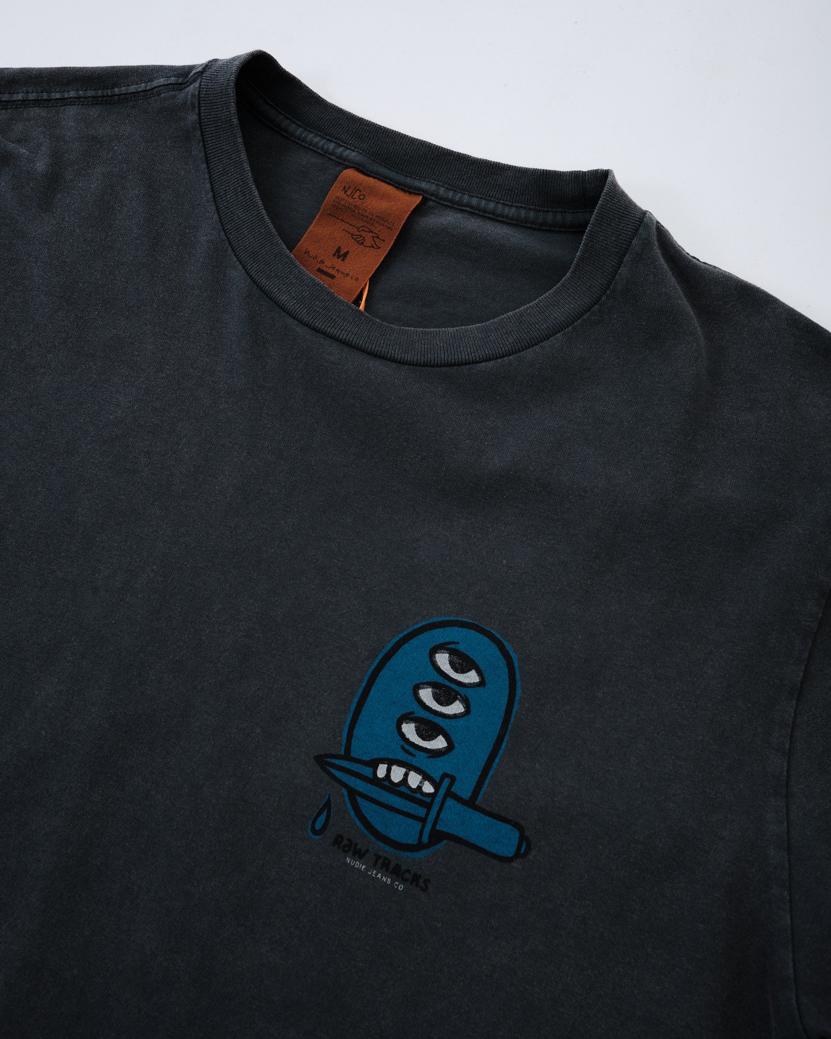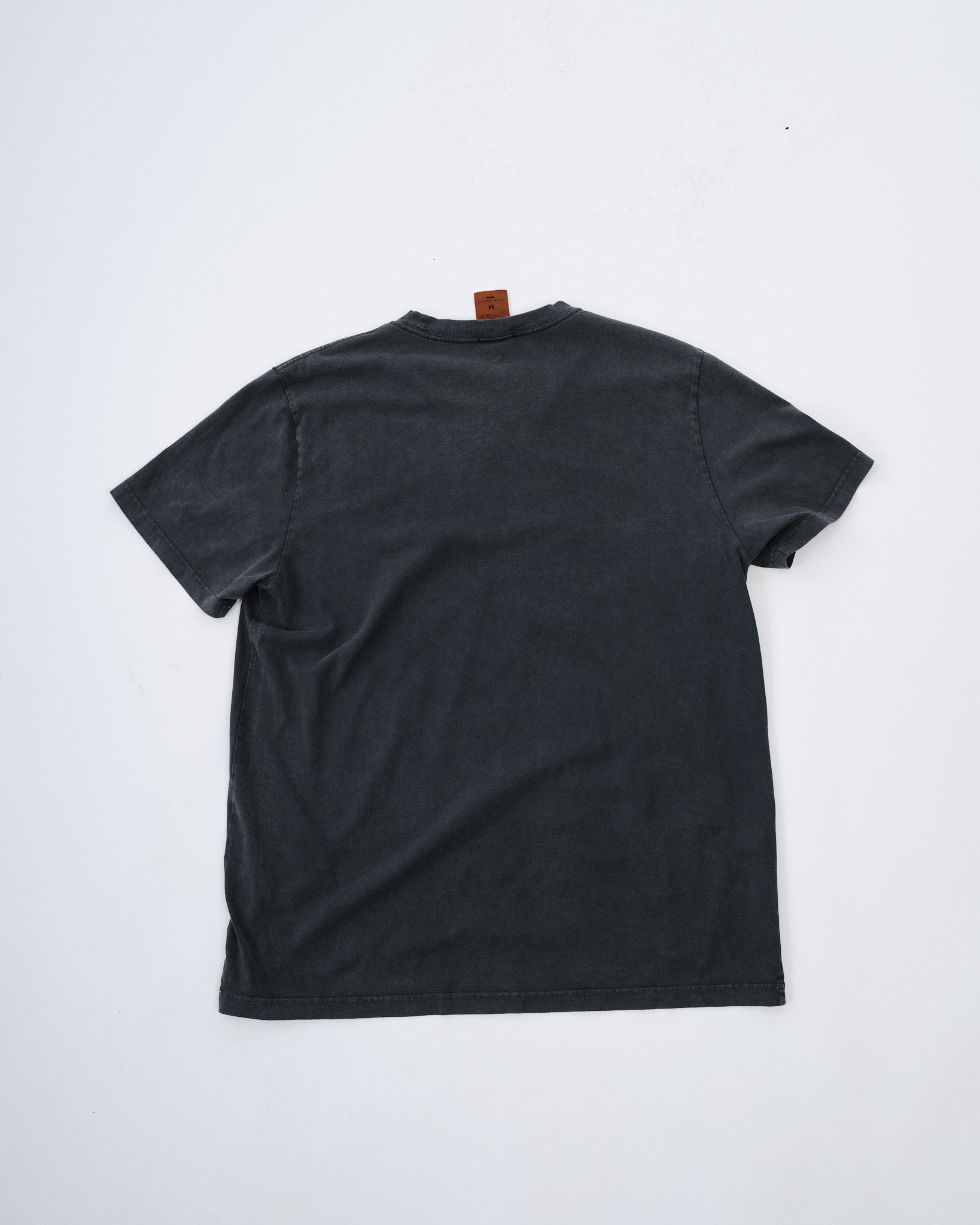 De vervaagde antraciet schaduw wordt bereikt door kledingverven en een fade-out wasbeurt, waardoor het T-shirt een natuurlijk ingeleefde uitstraling krijgt die perfect past bij denim. Naarmate je het draagt en wast, zal de kleur blijven evolueren, waardoor de vintage esthetiek wordt versterkt. Afgewerkt met een borstopdruk, biedt dit T-shirt moeiteloze stijl met een authentieke, goed gedragen charme.