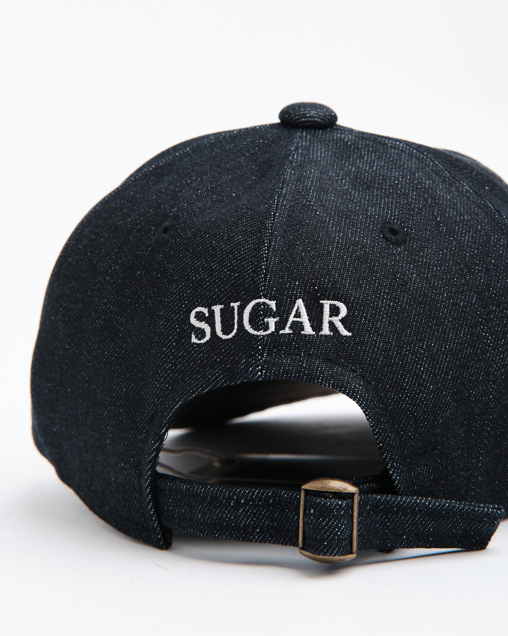 Het voorpaneel van de pet is gemaakt uit één stuk stof, dat, bij herhaald dragen, verzacht om een vintage, ingedragen gevoel te bereiken. De achterkant heeft "SUGAR" borduursel en een messing gesp, wat de nauwgezette aandacht voor detail benadrukt en de algehele esthetiek verhoogt.