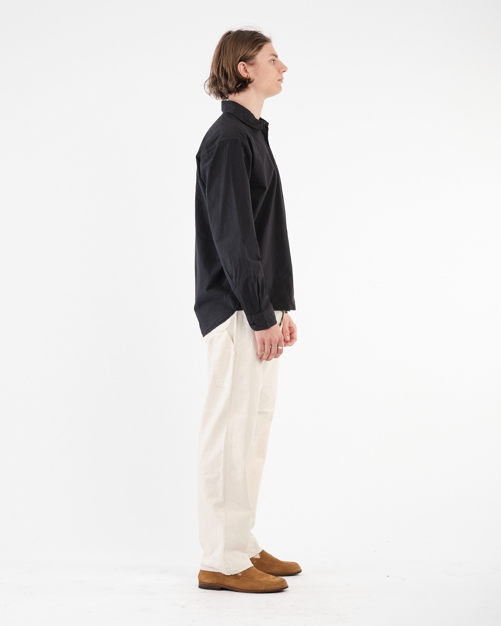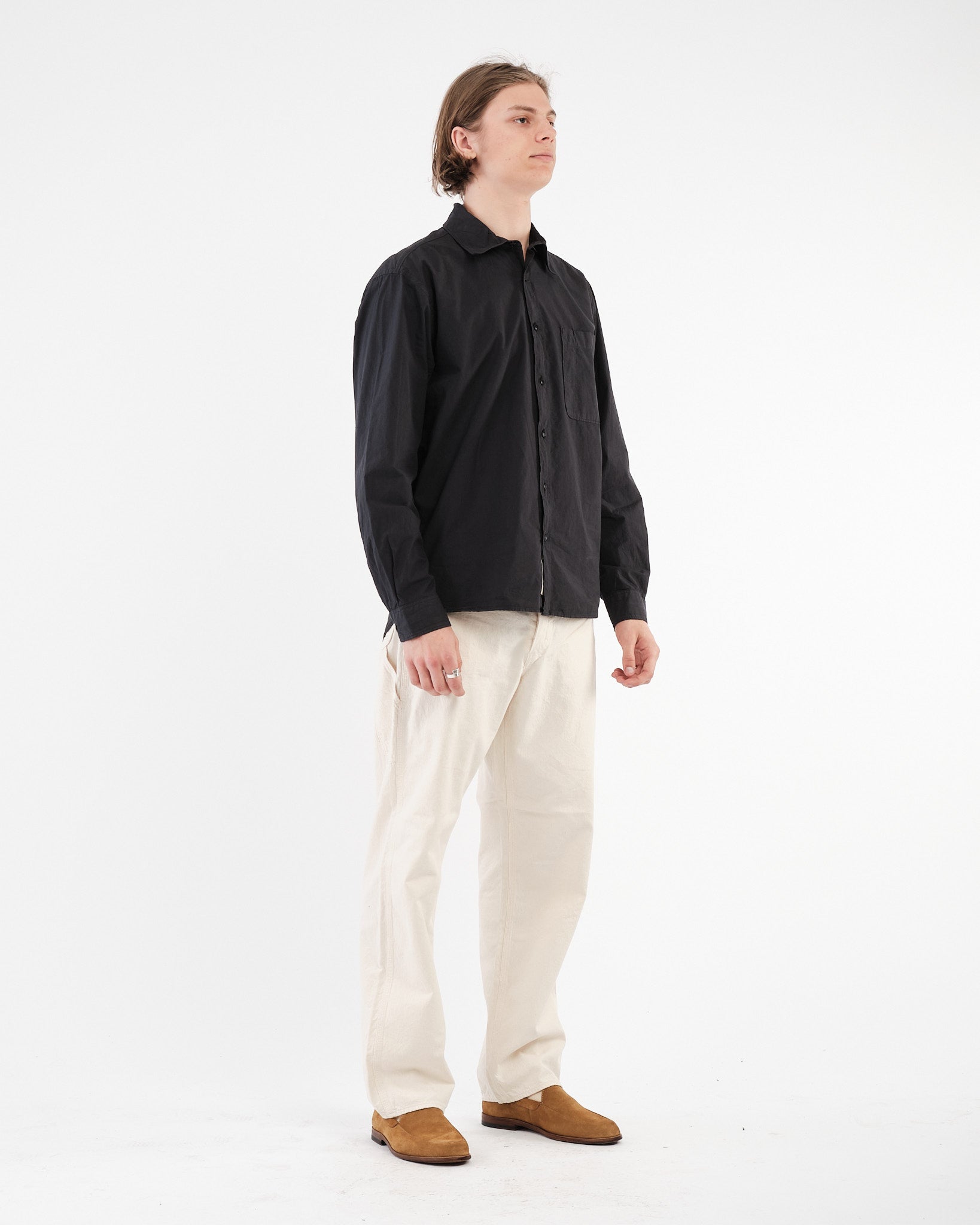 Ontworpen met een ontspannen pasvorm, lange mouwen, en een rugplooi voor bewegingsvrijheid, het heeft ook functionele details zoals een borstzak, corozo vissenoogknopen, en een gedrukt canvas label. Geen krimp, geen onzin - gewoon tijdloze, gemakkelijke stijl waar je steeds weer naar zult grijpen.