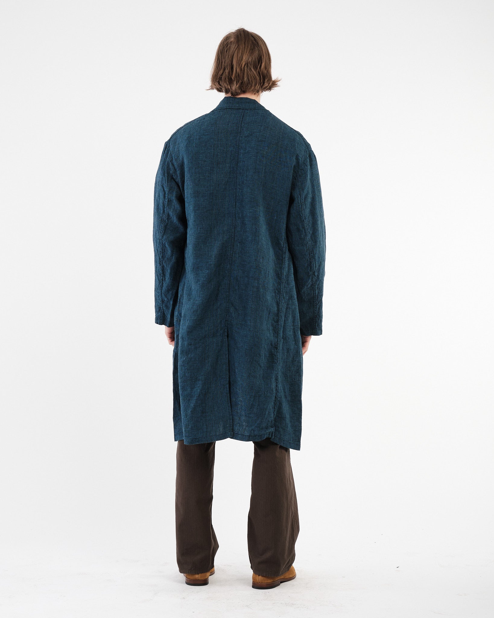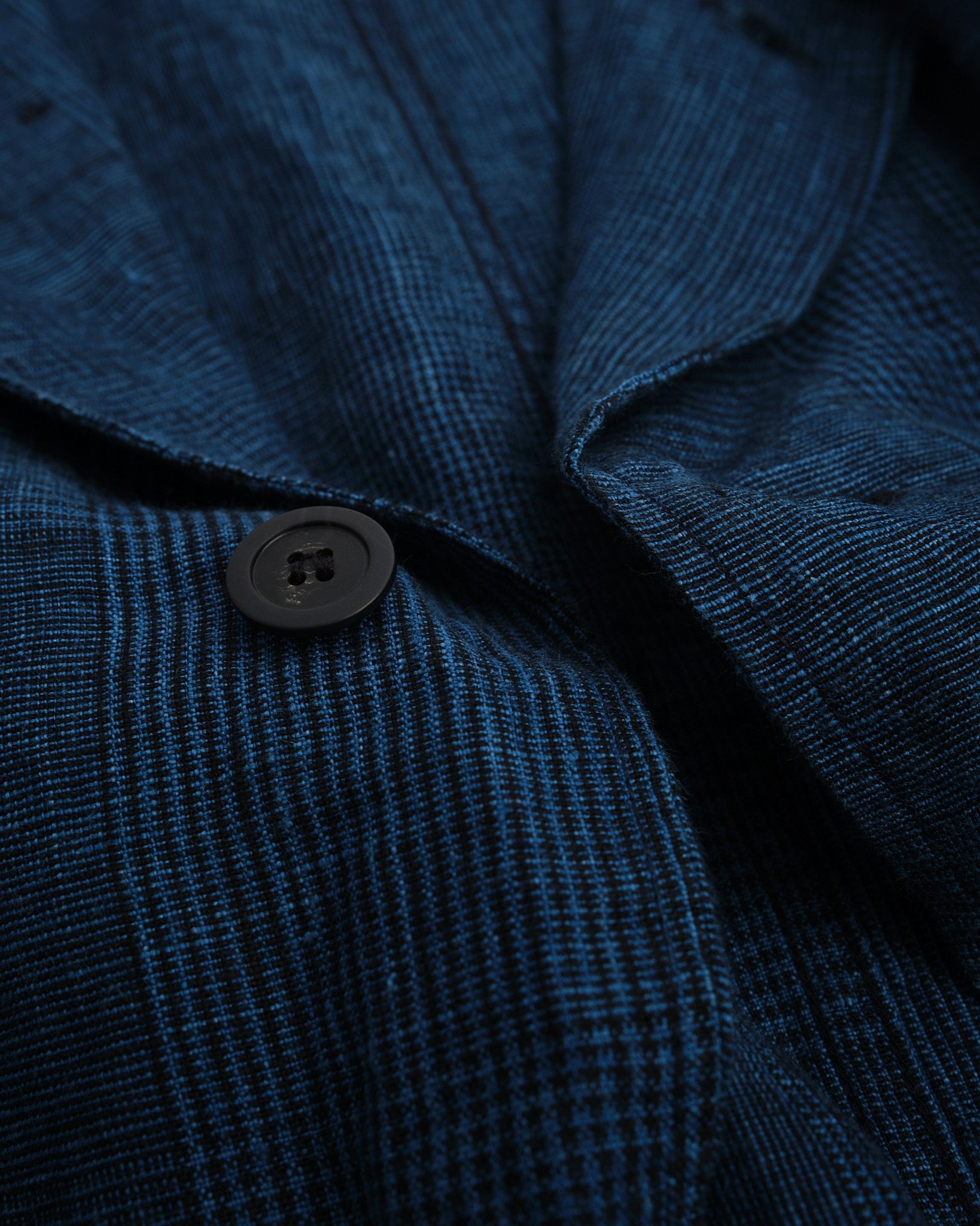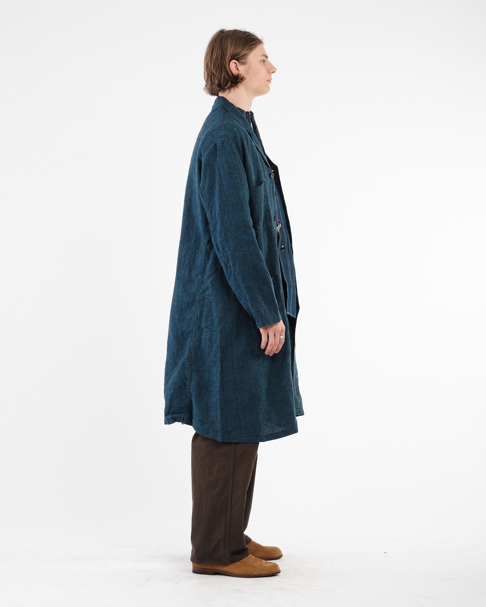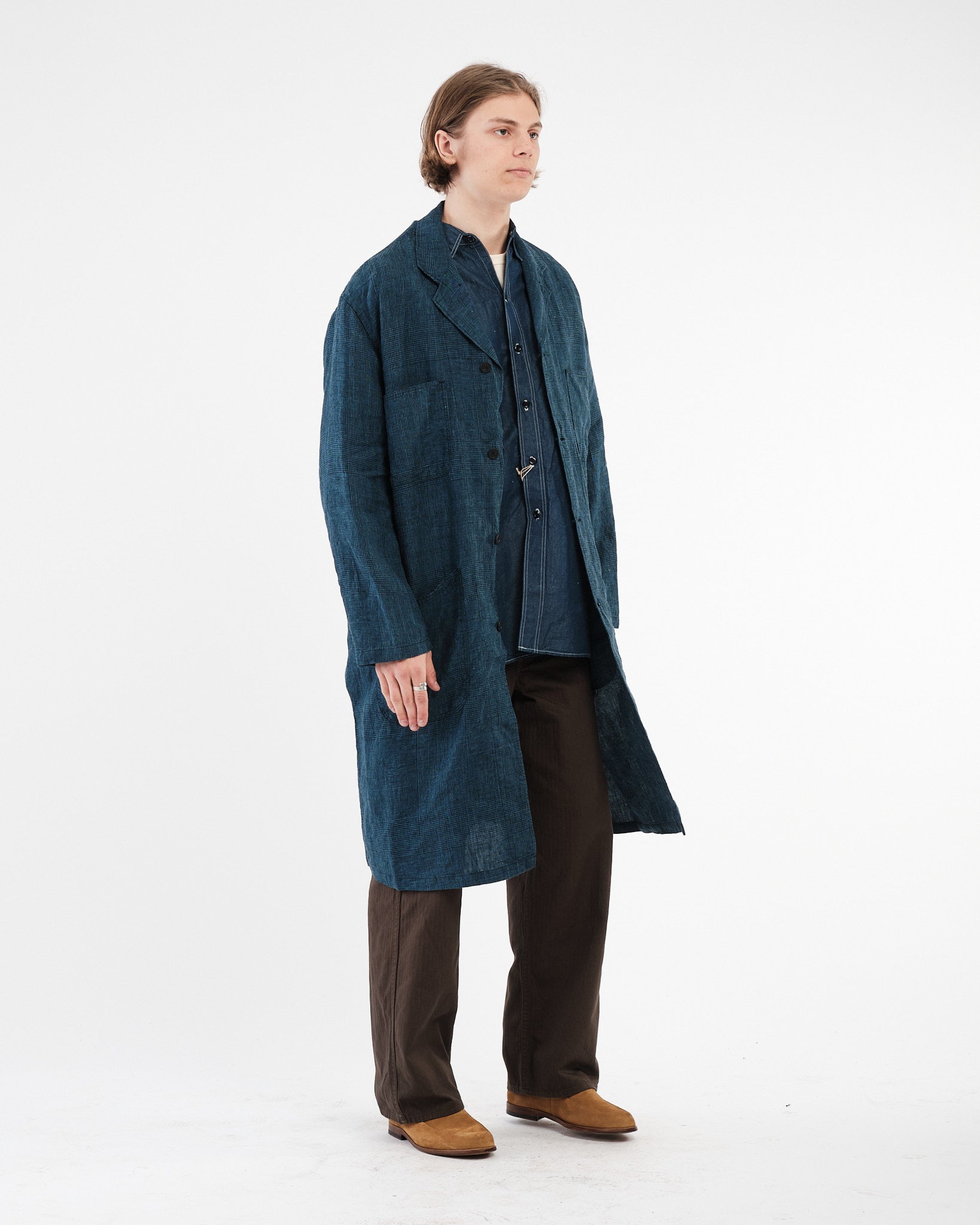 De orSlow SHOP COAT in INDIGO CHECK is waar traditionele werkkleding en doordacht Japans vakmanschap samenkomen. Gemaakt van 100% linnen en geverfd in diepe indigotinten, heeft deze jas een verfijnd ruitpatroon dat klassiek karakter met moderne elegantie in evenwicht brengt.