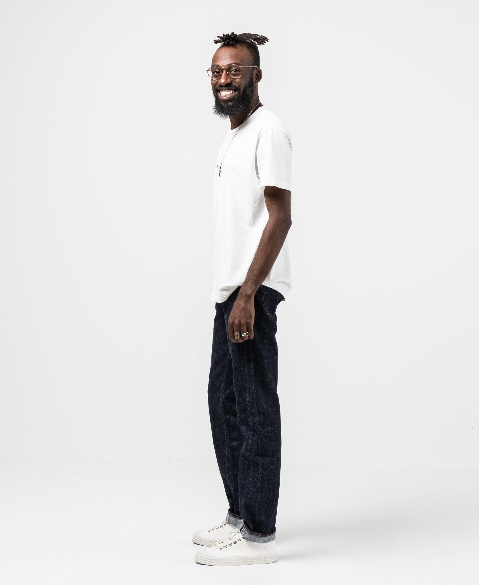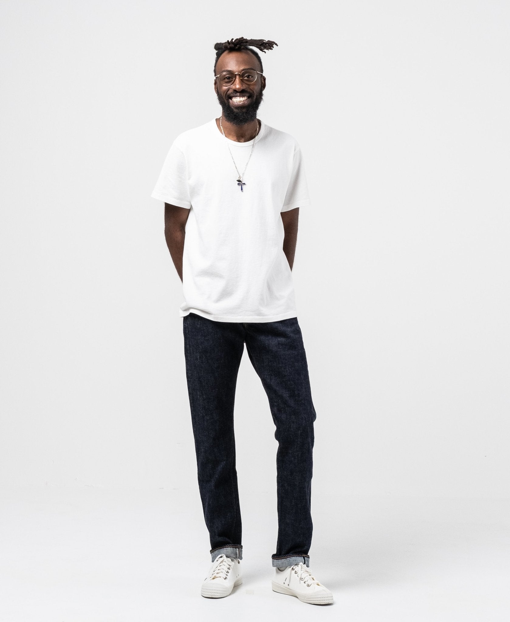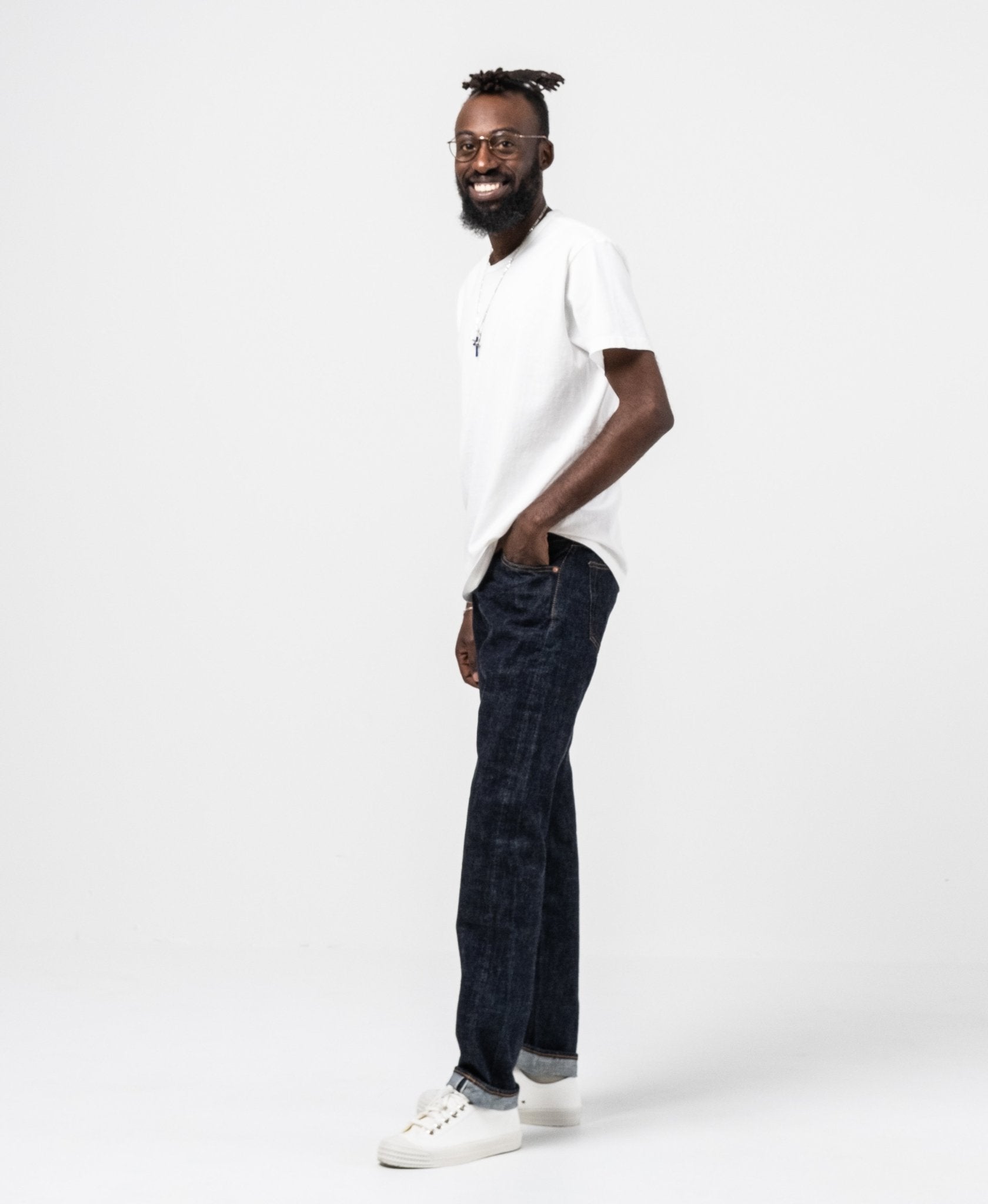 Ludjero is 179 cm lang, slank gebouwd en draagt maat 29.