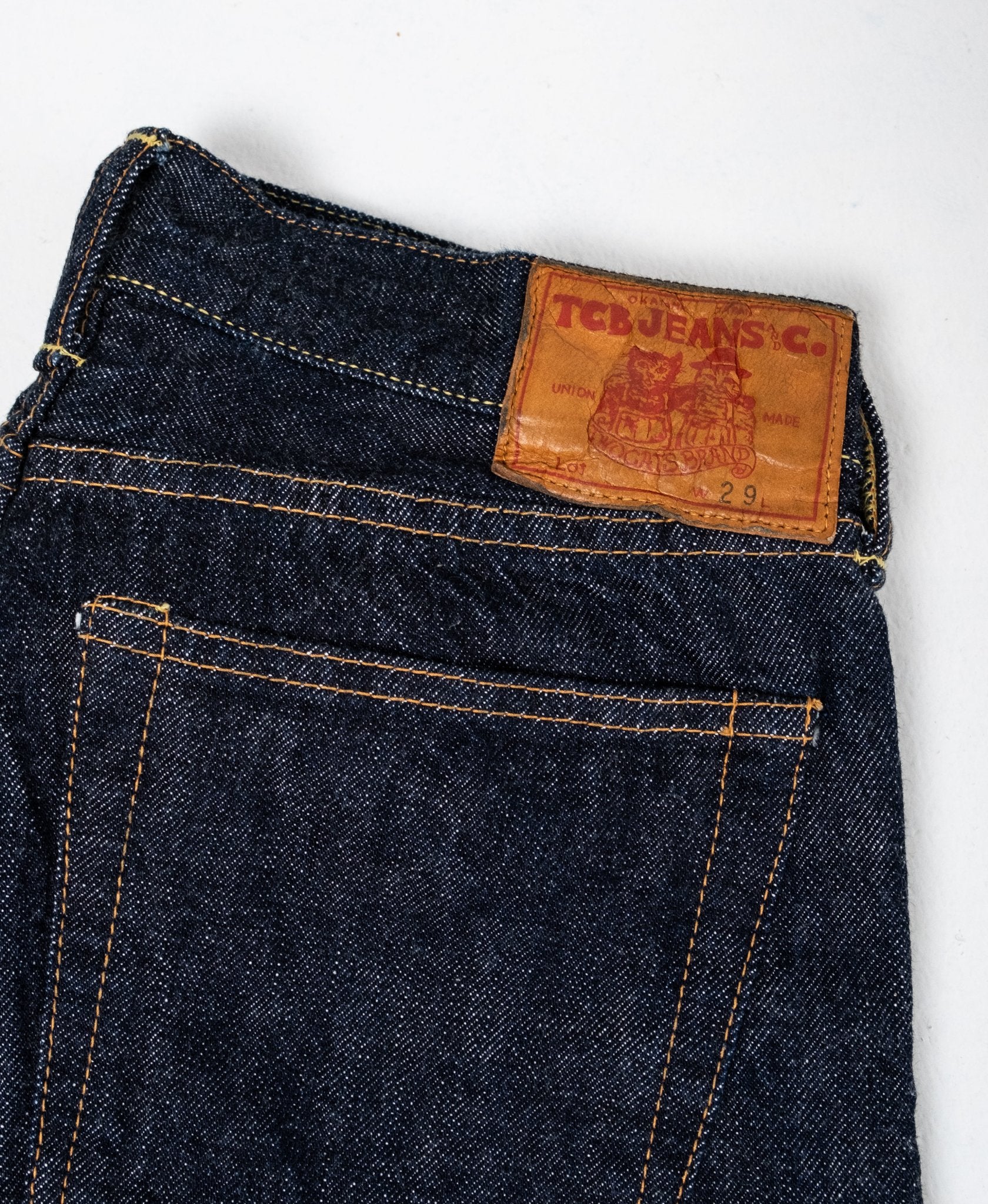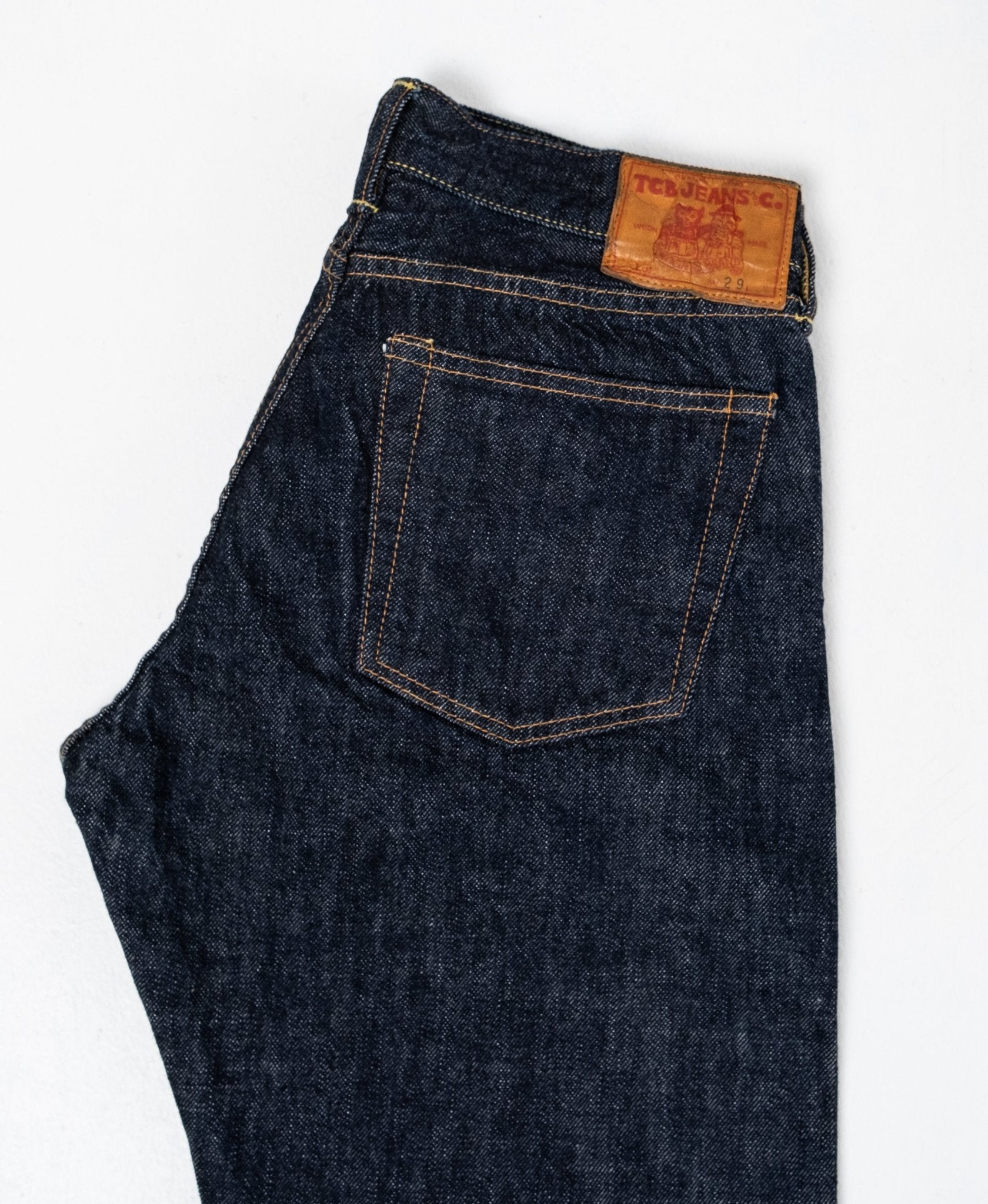 Slim 50's Jeans Indigo Rinsed van TCB. Gemaakt van een fantastische 13,5 oz selvage denim met Zimbabwecotton. De denim is gespoeld en heeft een prachtige ongelijke textuur dankzij de ouderwetse stijl van de weefmachines. De pasvorm is smal met een lichte toelopende vorm vanaf de knie naar beneden en een lagere taille. Gemaakt in Japan.
