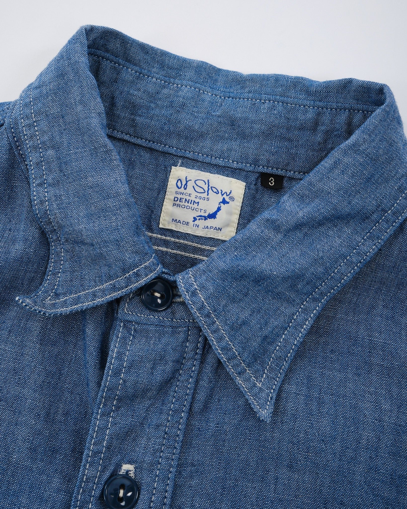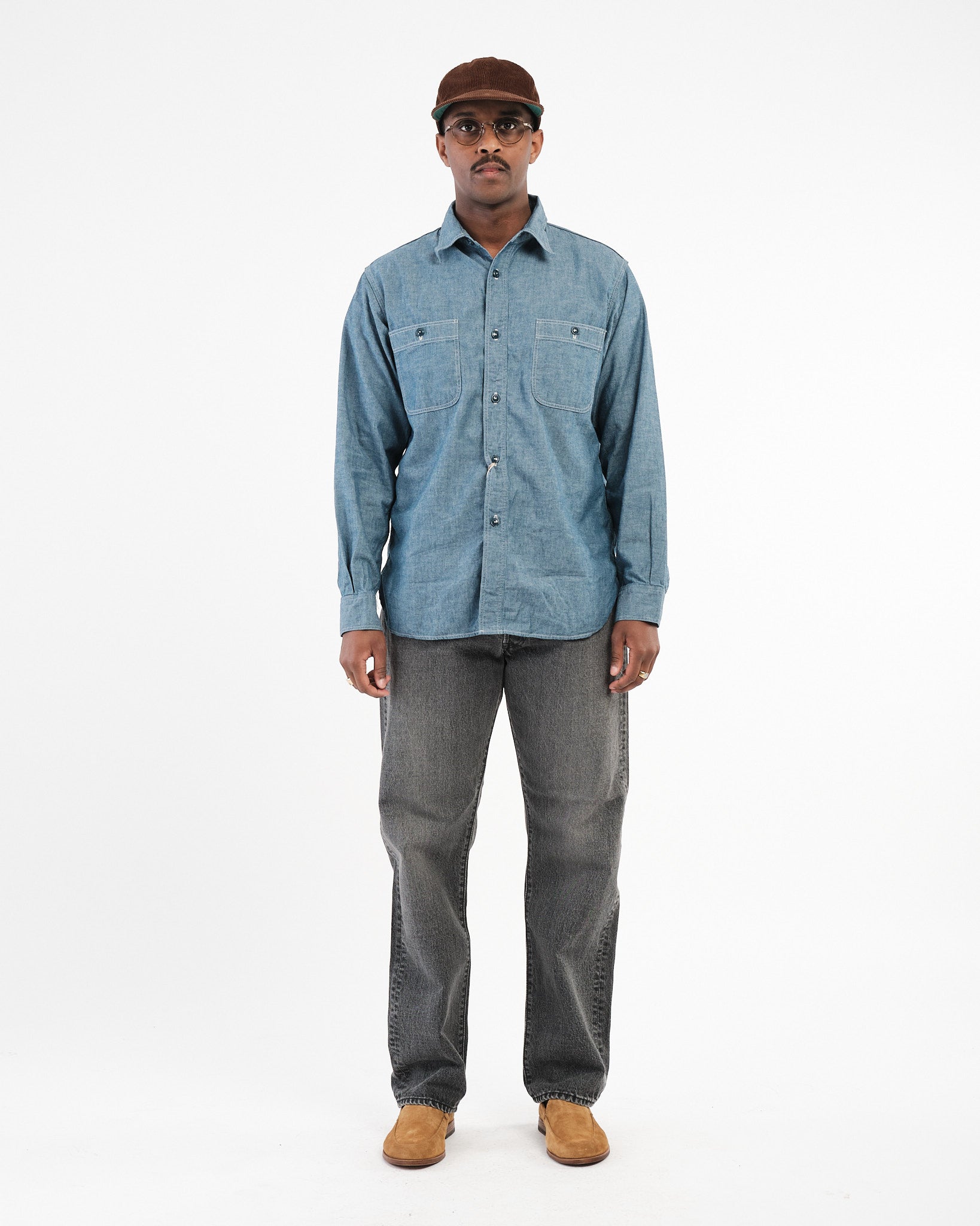 • Premium 4.5OZ ORIGINAL CHAMBRAY stof die op een mooie manier veroudert bij het dragen, overgaand van een diepblauwe naar een zachte aquarel tint.
