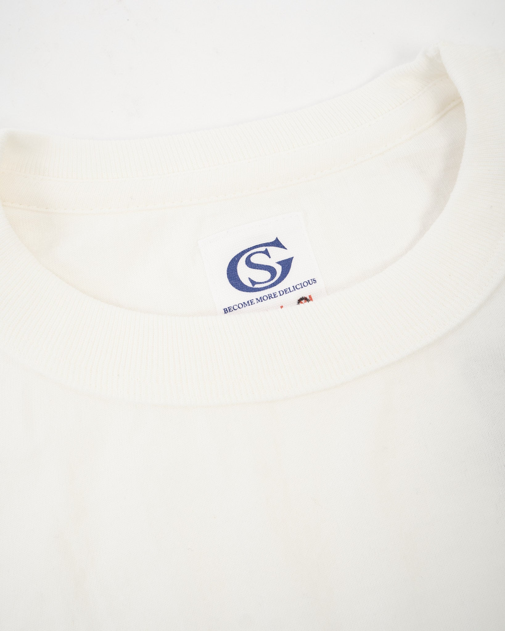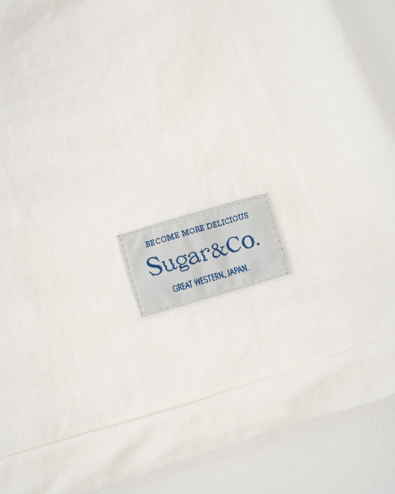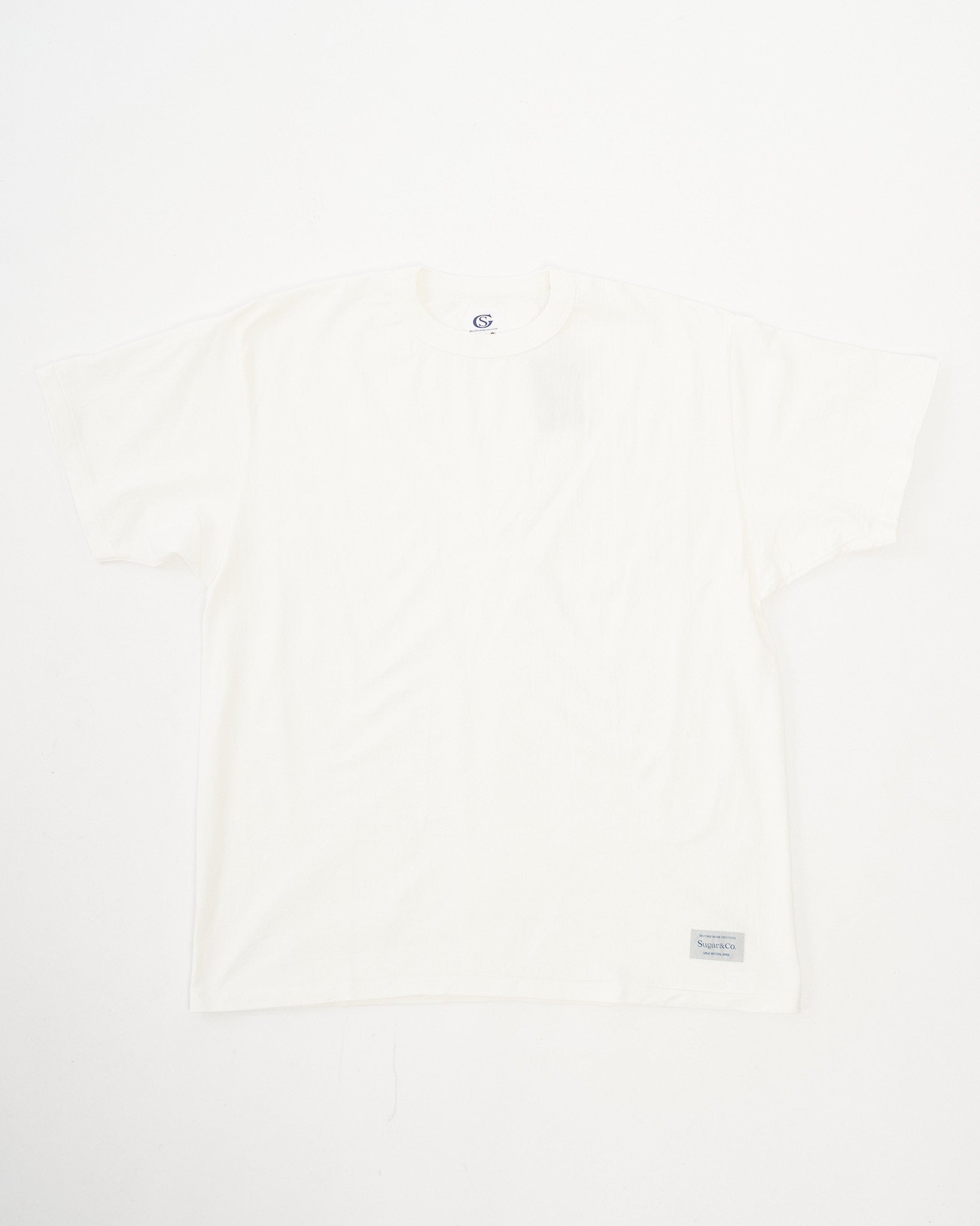 The tubular body construction eliminates side seams for increased comfort, while the combination of a binder neck and “taco” binder neck stitching boosts durability where it counts. Finished with single-stitch hems on the sleeves and bottom, the tee maintains a clean, simple expression that reflects Sugar & Co.’s philosophy: comfort, longevity, and a proudly textured character.