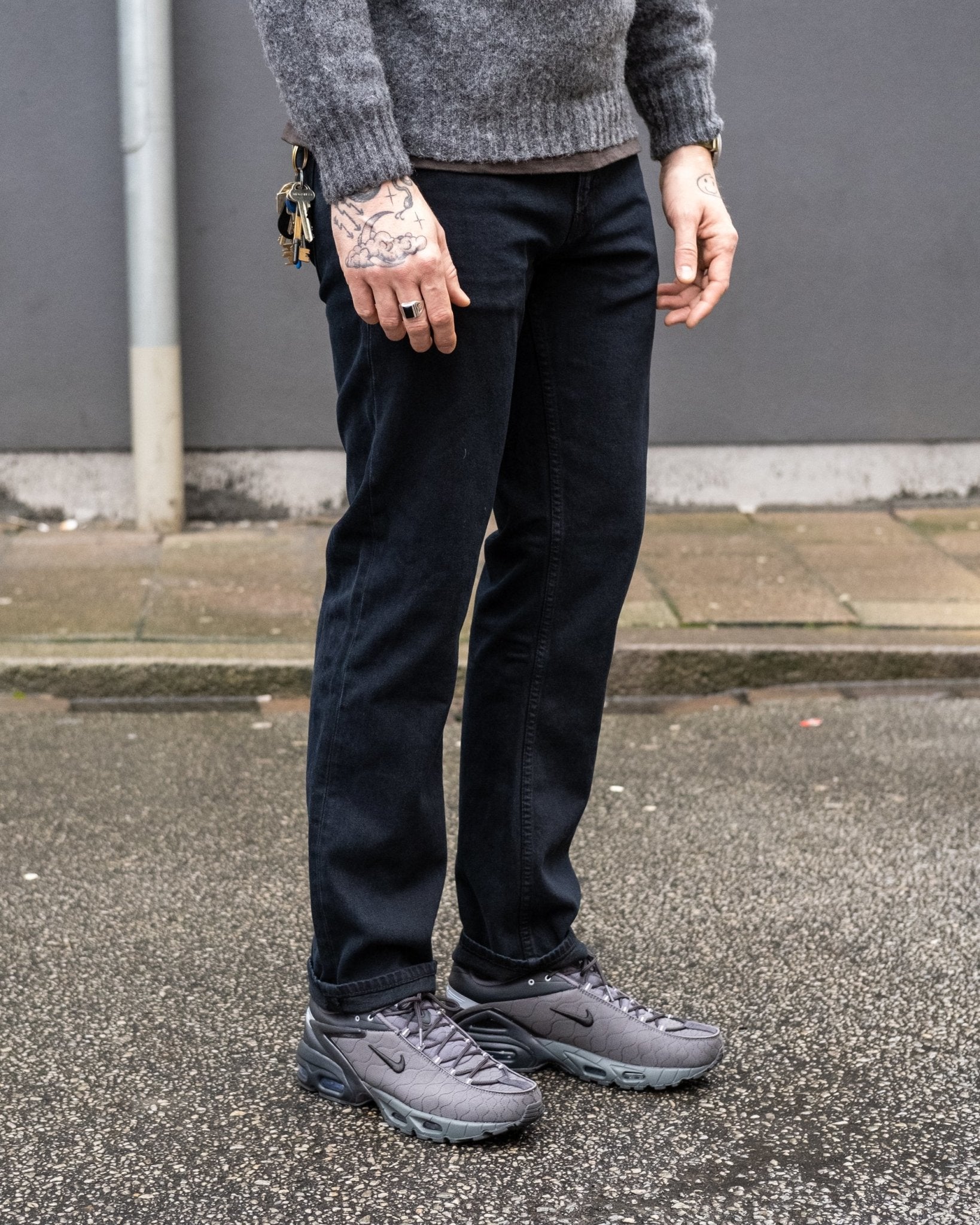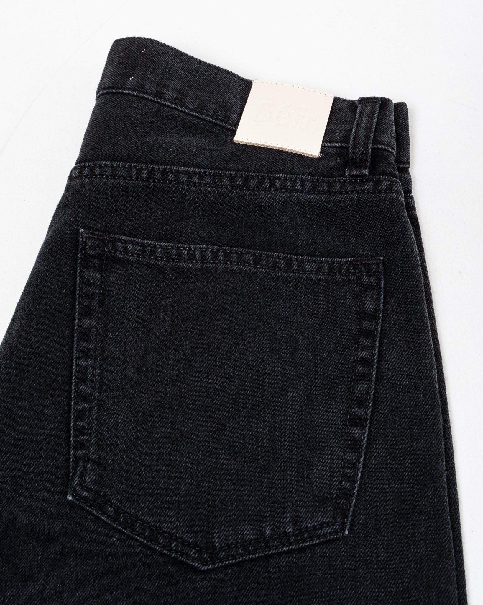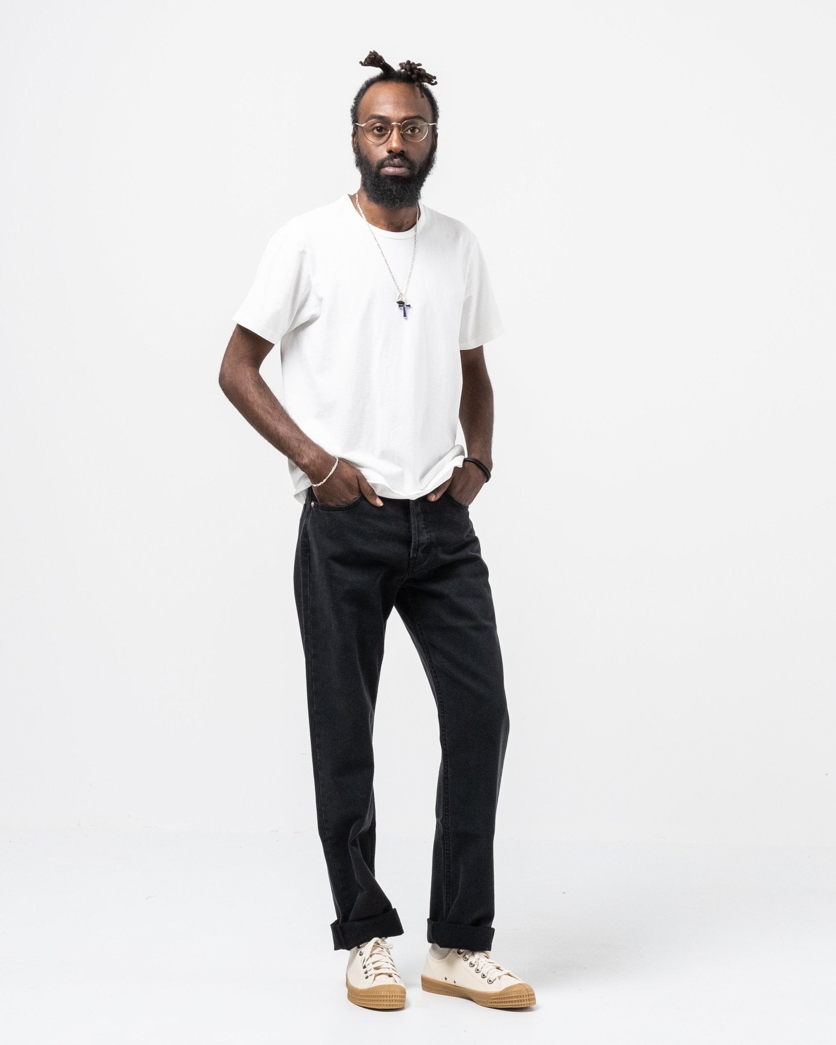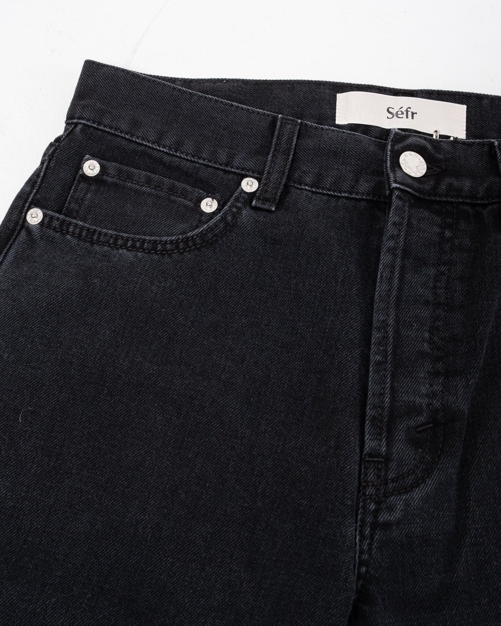 Straight Cut Jeans Rinsed Black van Séfr. Klassieke vijfzaksjeans gemaakt van 13 oz Italiaans katoen. Knoopsluiting voor, rechte snit en eenmaal gespoeld voor een zachte en comfortabele pasvorm vanaf het begin. Gemaakt in Letland.