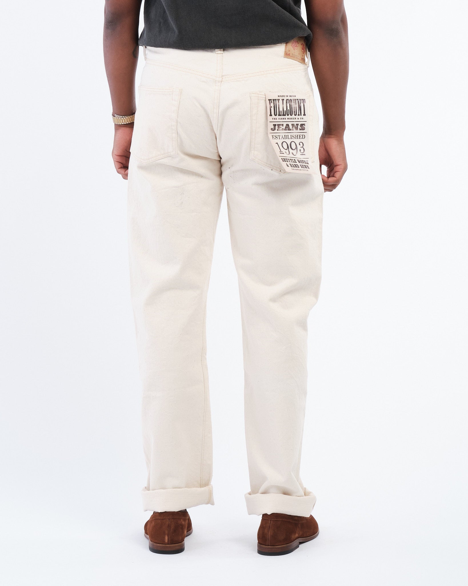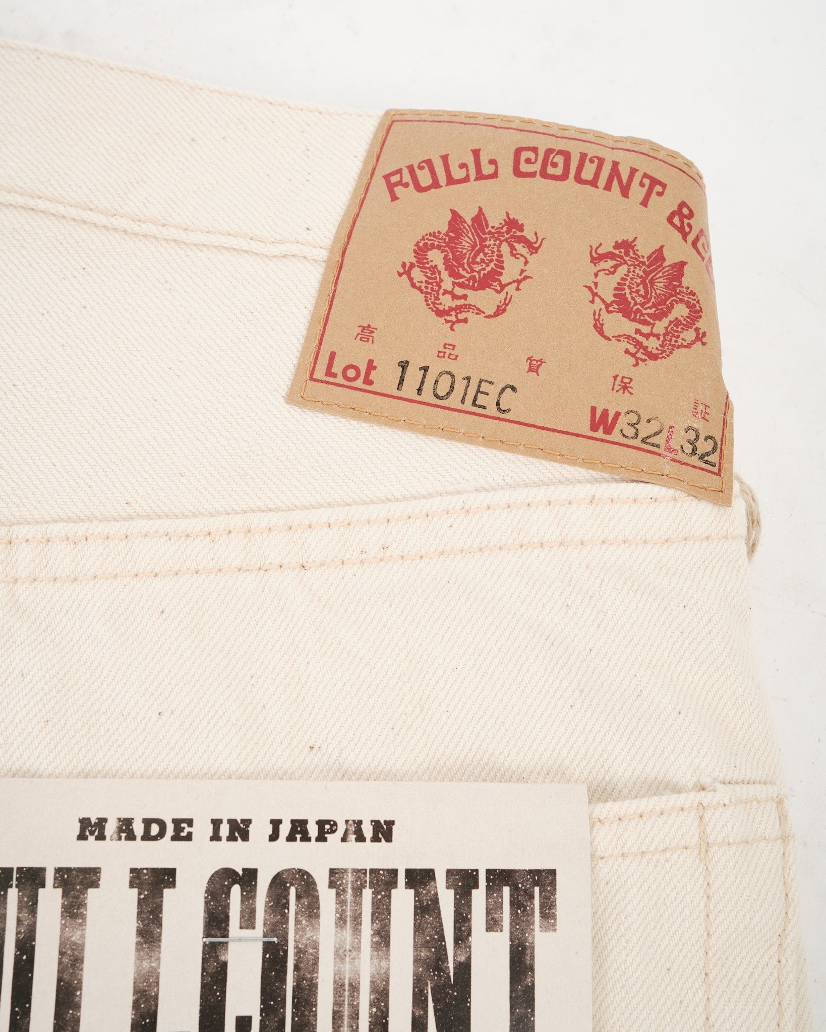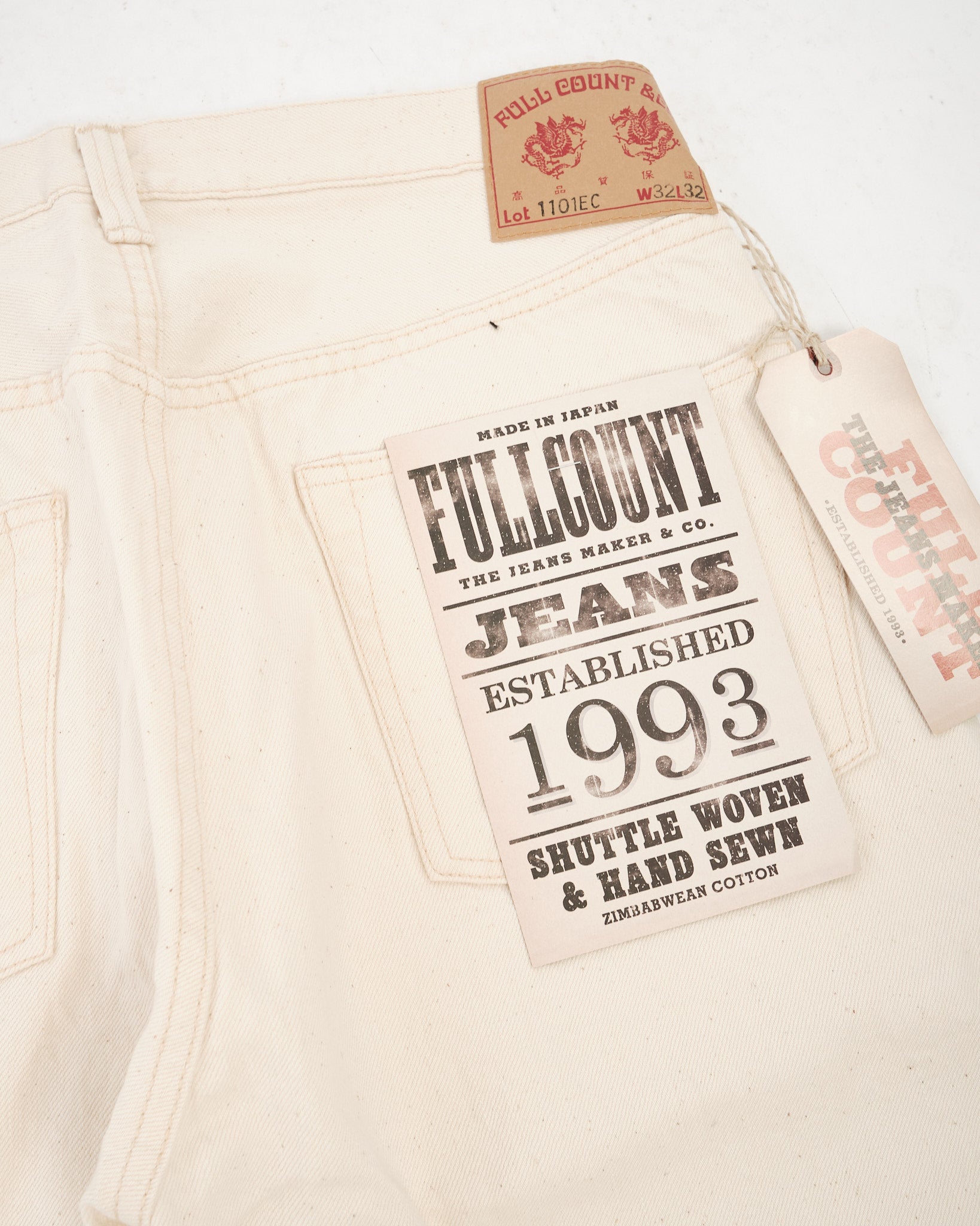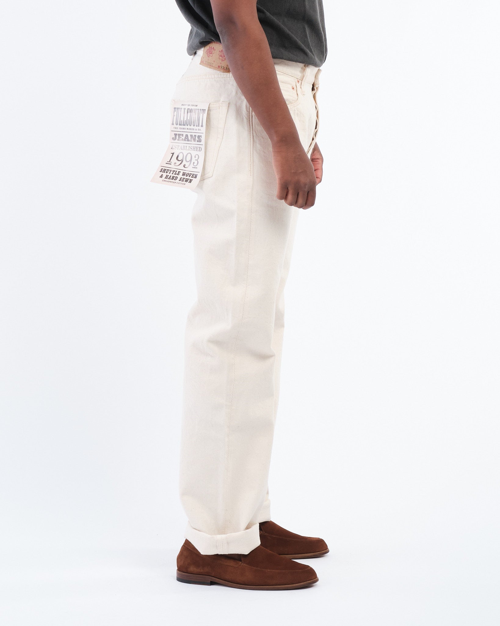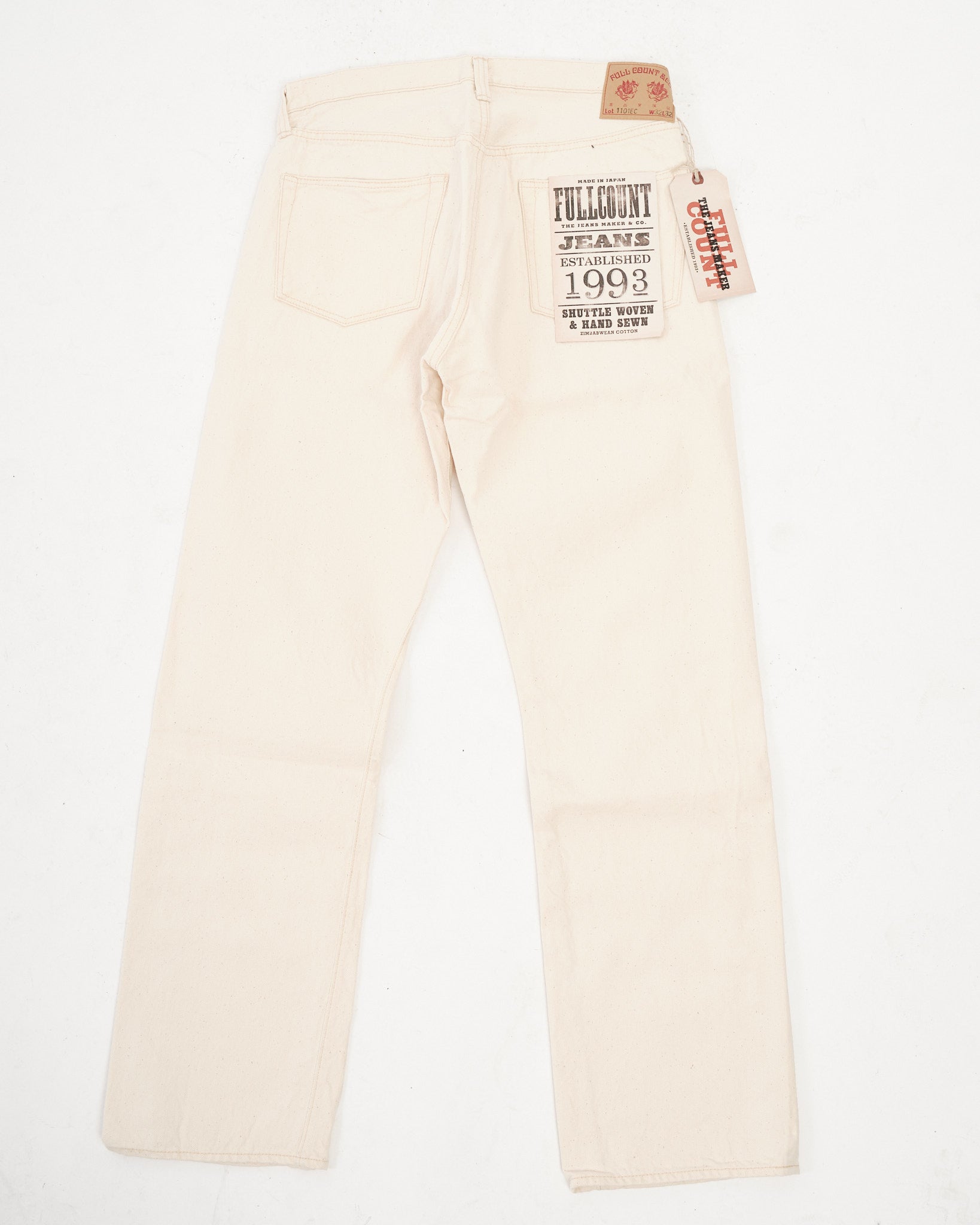 De FULL COUNT 1101EC STRAIGHT ECRU SELVEDGE DENIM (1101EC) is vervaardigd uit 100% biologisch katoen en geweven in Japan om de natuurlijke schoonheid van de katoenplant te behouden. In tegenstelling tot conventionele denim, is deze 13,7oz selvedge stof niet geverfd of gebleekt, waardoor katoenresten zoals blad- en stengelfragmenten intact blijven, wat de stof een unieke textuur en een authentiek, ruw uiterlijk geeft. Met de klassieke 1101 rechte pijp silhouet, bieden deze jeans zowel duurzaamheid als comfort, waardoor ze jarenlang gedragen kunnen worden. De stof is geweven op traditionele weefgetouwen, wat de natuurlijke elasticiteit en veerkracht van katoen biedt, met een textuur die in de loop van de tijd prachtig verzacht. Met elke wasbeurt valt het katoenresidu natuurlijk weg, waardoor het natuurlijke karakter van de stof wordt versterkt.