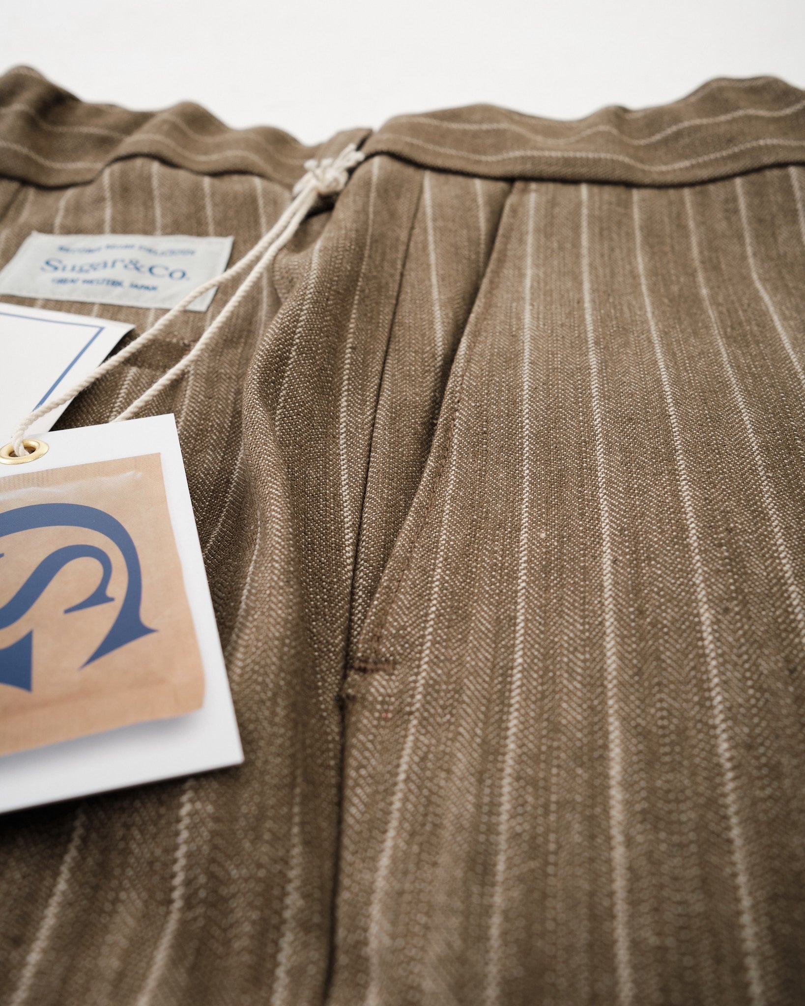 De SUGAR & CO. GESTREEPTE DENIM in Beige is een verfijnde kijk op klassieke werkkleding, die robuuste duurzaamheid combineert met een verfijnd silhouet. Deze broeken zijn vervaardigd met stof van hoogwaardig gestreept denim, wat zorgt voor een unieke textuur en een premium gevoel. Ontworpen om mooi te verouderen over tijd, ontwikkelt de stof karakter terwijl het zijn kracht en structuur behoudt.