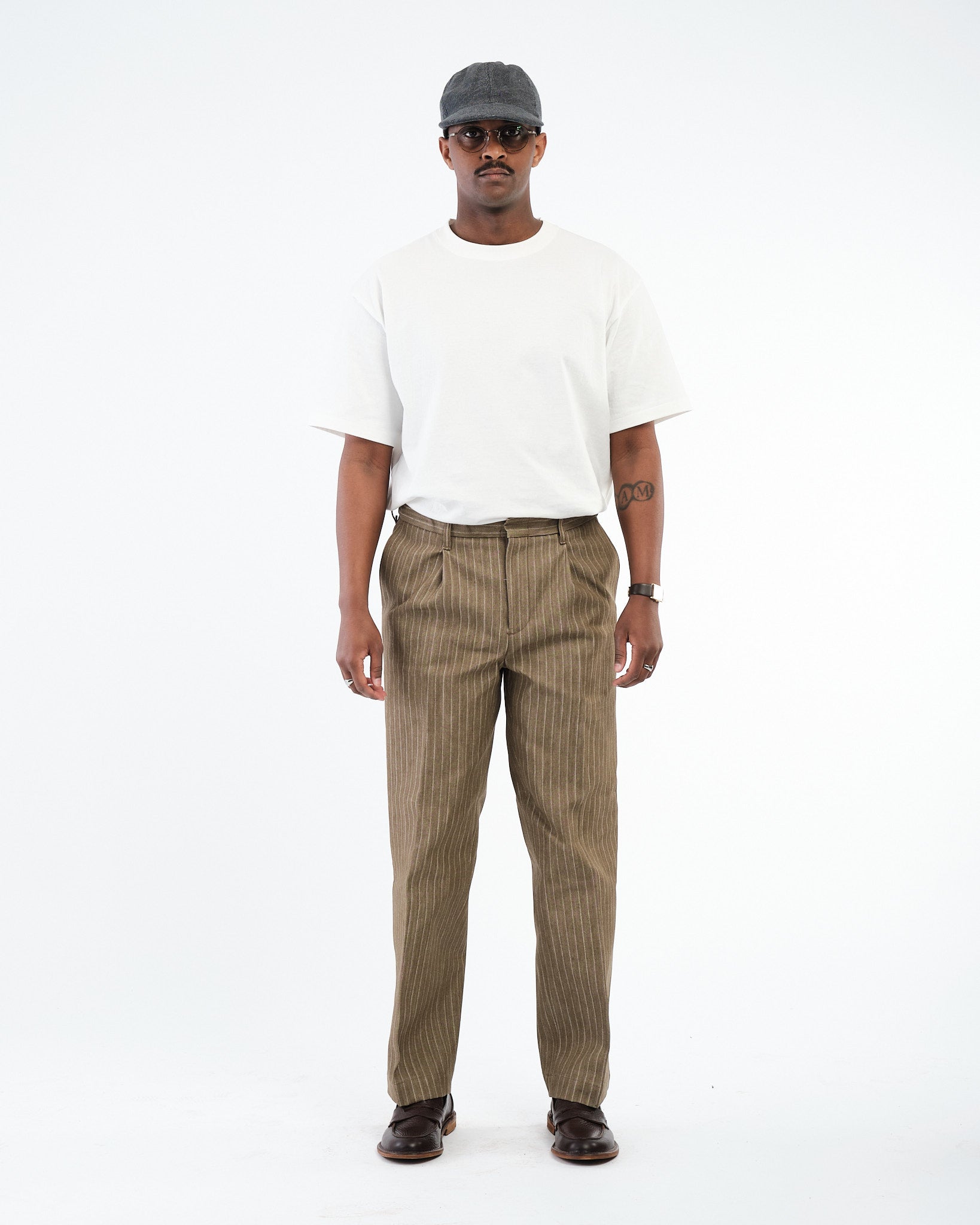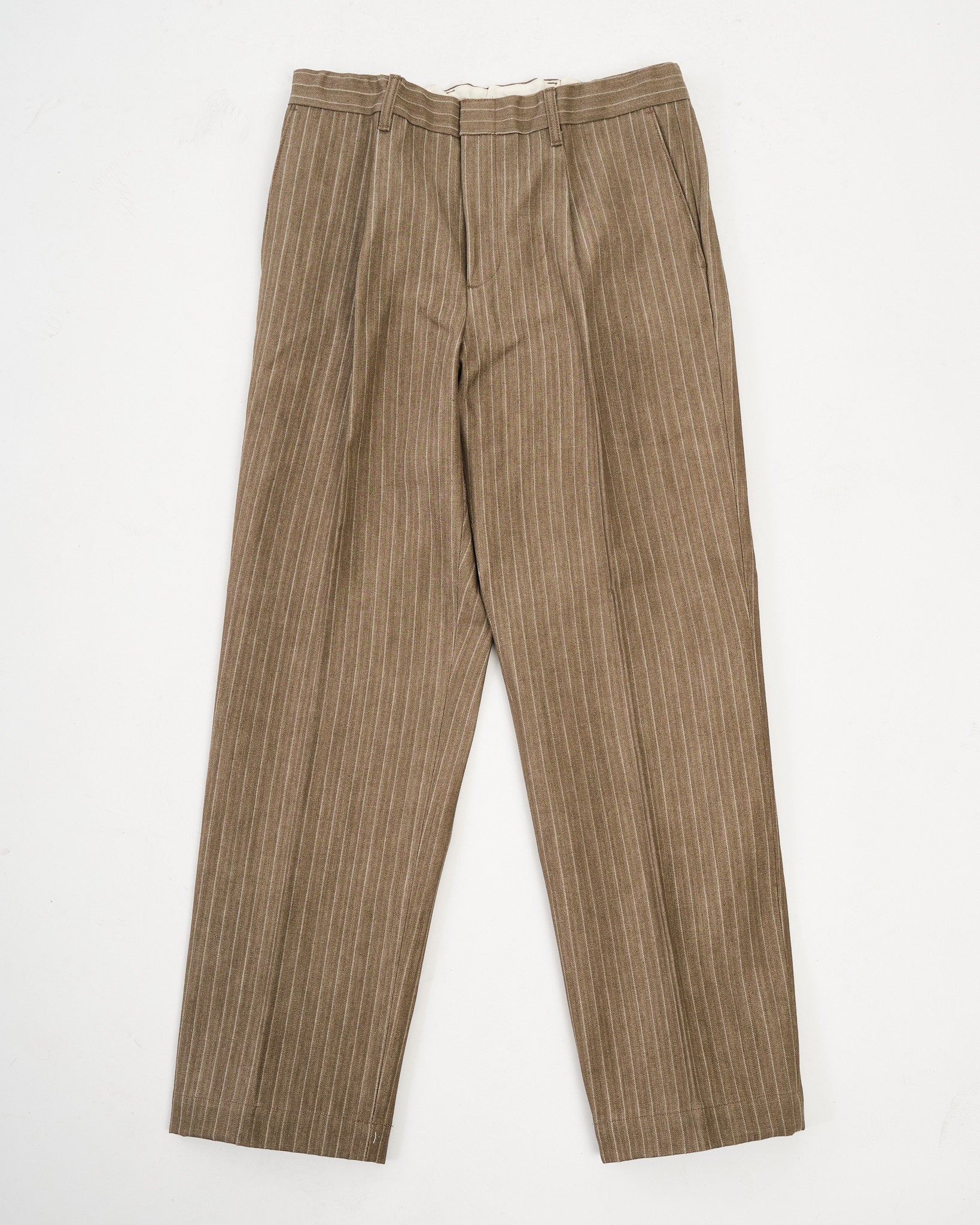 De ontspannen maar op maat gemaakte pasvorm biedt zowel comfort als stijl, waardoor ze perfect zijn voor casual kleding en smart-casual gelegenheden alike. Het subtiele gestreepte patroon voegt diepte toe aan het ontwerp, terwijl de veelzijdige beige kleur eenvoudige styling met een verscheidenheid aan outfits garandeert. Functionele details zoals versterkte naden, ruime zakken en een comfortabele tailleband maken deze broeken net zo praktisch als ze stijlvol zijn.