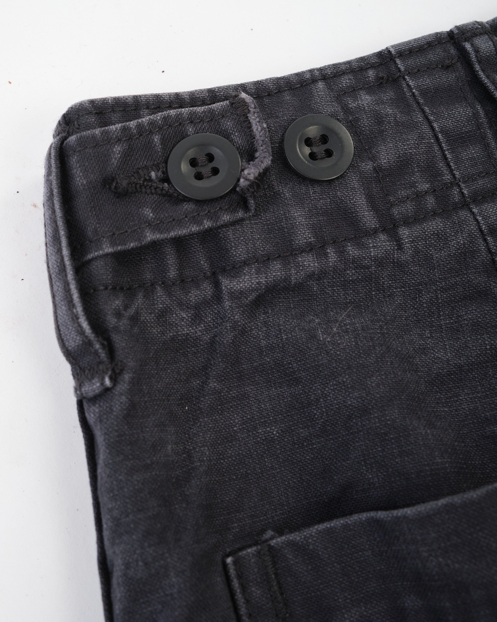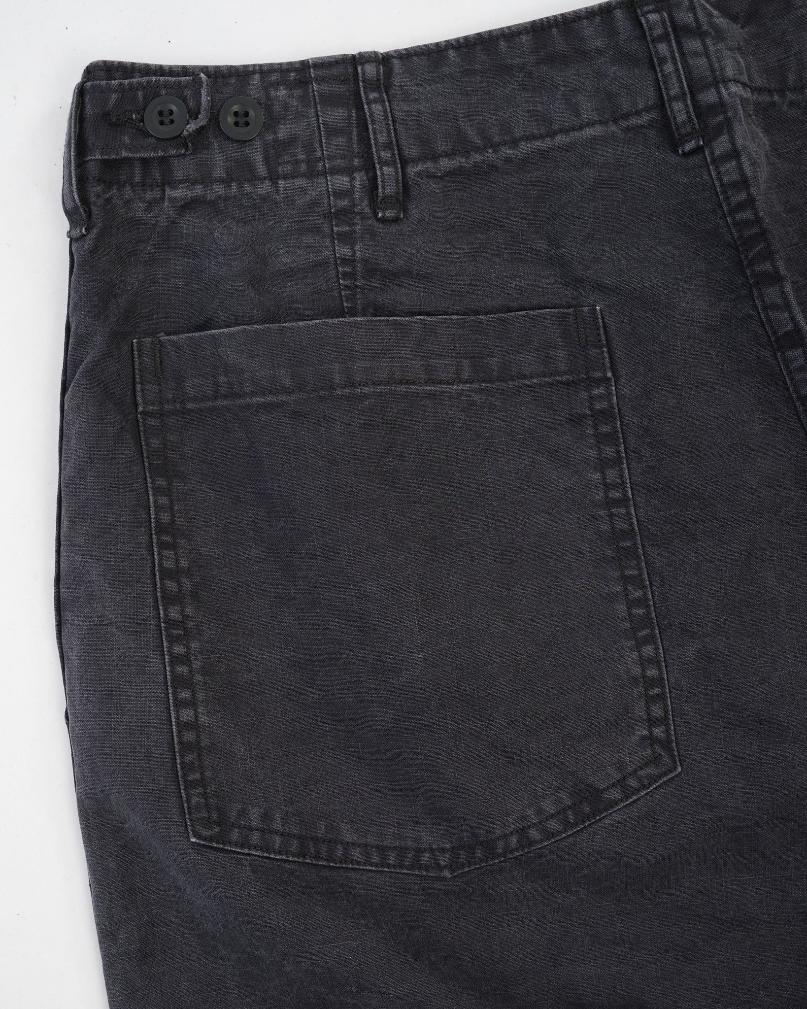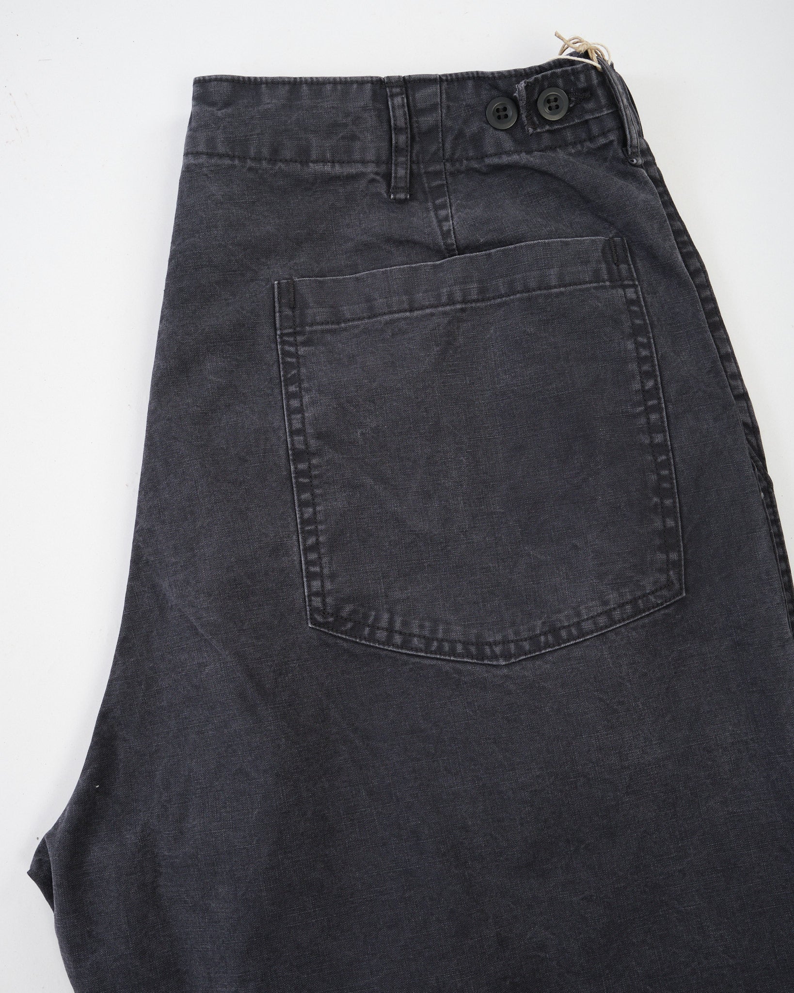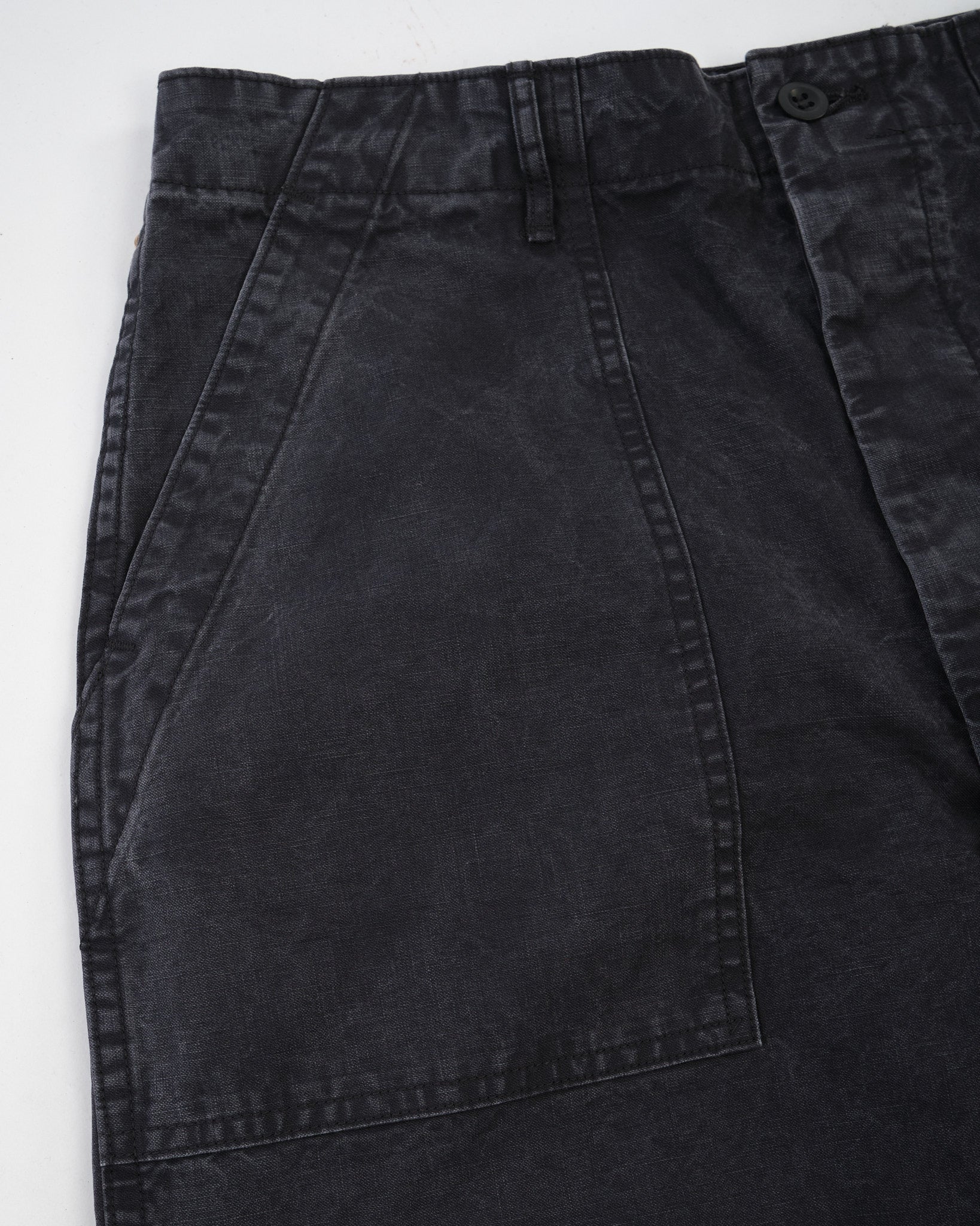De Black Summer Fatigue Pants van orSlow brengen robuuste bruikbaarheid in een meer stedelijk palet. Genaaid in Japan van gewassen visgraat katoen twill, bieden ze een rijk getextureerd oppervlak dat evolueert met tijd en slijtage.