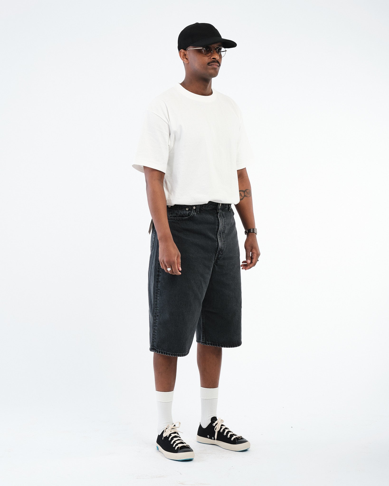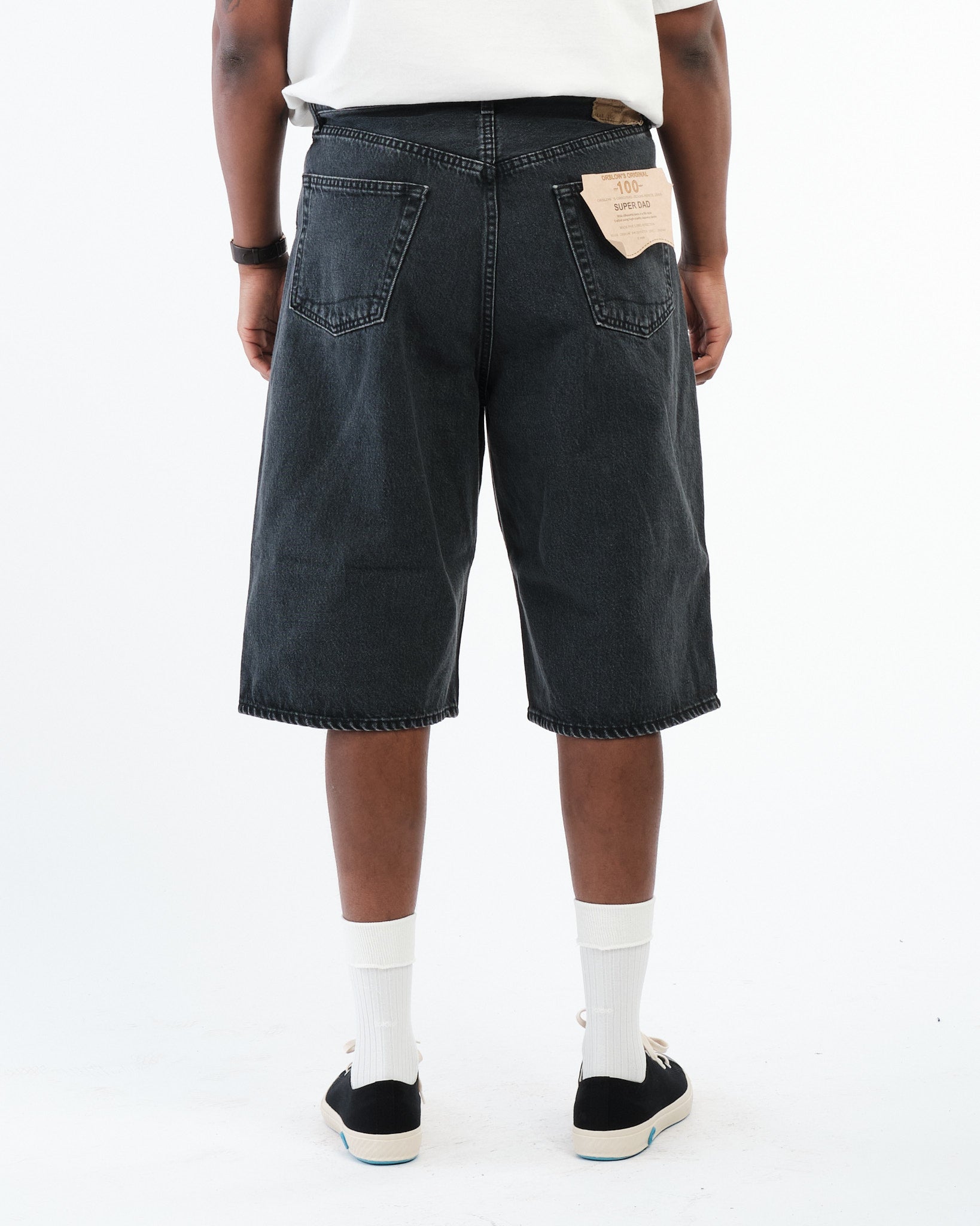 De orSlow Super Dad's Fit Shorts in Black Denim Stone brengen een ontspannen en vintage-geïnspireerde silhouet, waarbij comfort met tijdloze aantrekkingskracht wordt gecombineerd. Vervaardigd uit 100% katoenen zwart denim, beschikken ze over een steen-gewassen afwerking die een perfect ingedragen uiterlijk en gevoel levert.