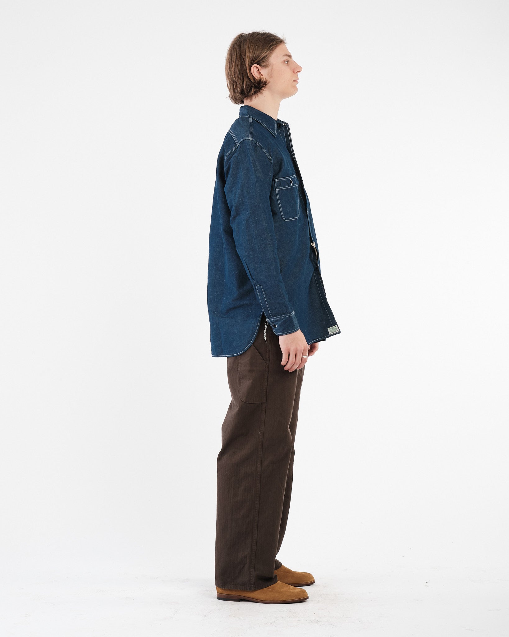 Handgemaakt in Japan, dit werkshirt belichaamt de toewijding van orSlow aan nauwgezette vakmanschap, wat zorgt voor duurzaamheid en kwaliteit over tijd.