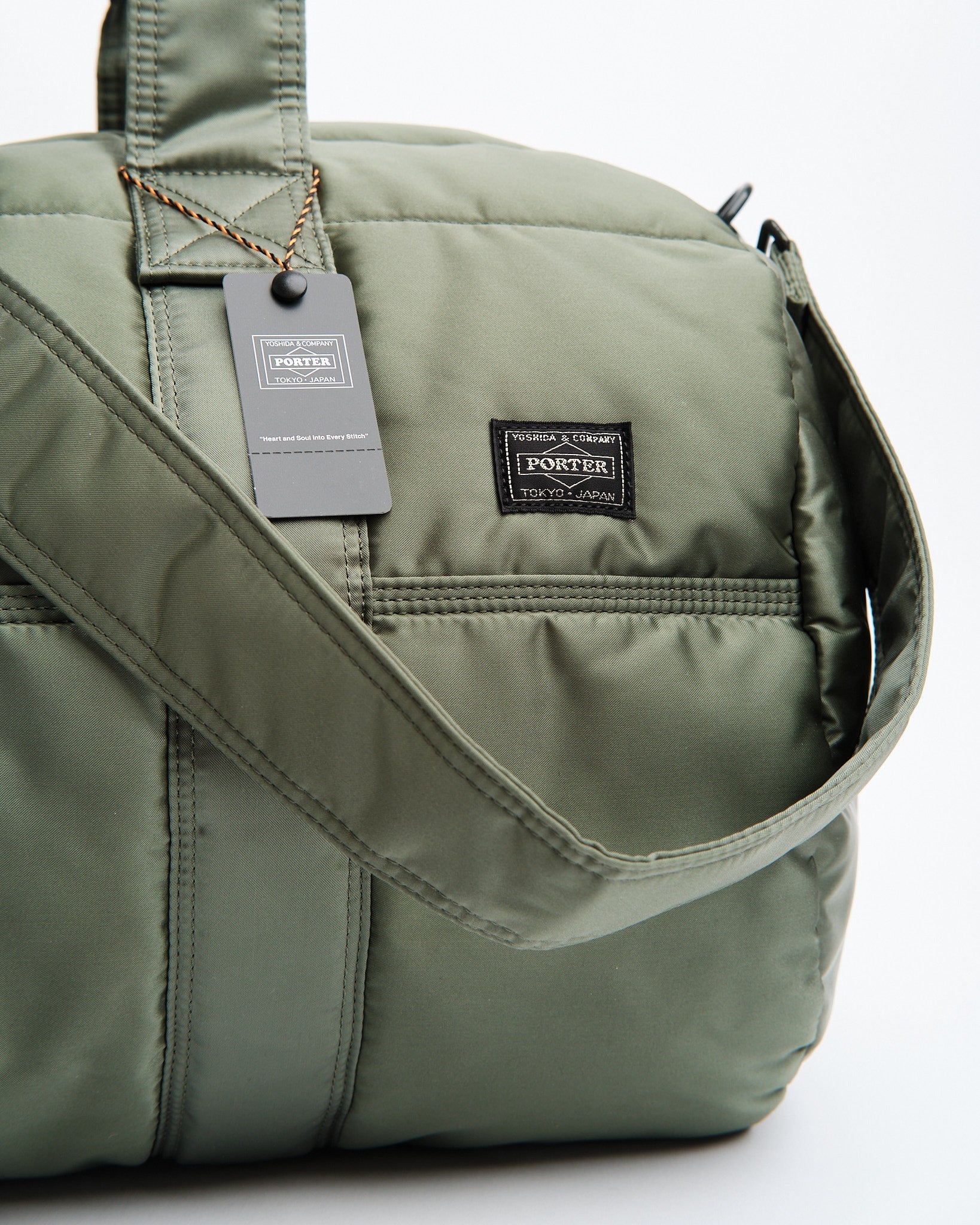 Bekijk de PORTER YOSHIDA 622-76989-30 TANKER 2WAY DUFFLE BAG (M) in SALIEGROEN! Deze duffeltas maakt deel uit van de Tanker Series die voor het eerst werd geïntroduceerd in 1983 en geïnspireerd is op de vluchtjas MA 1 van de Amerikaanse luchtmacht. Gemaakt met een drielaagse combinatie van nylon twill, polyester katoen en nylon tafzijde is het zowel lichtgewicht als duurzaam. De levendige reddingsoranje voering voegt een vleugje toe aan het ontwerp. Met zijn opslagcapaciteit is deze sportieve 2WAY duffeltas perfect voor snelle uitstapjes. Je kunt hem met de hand dragen met de handvatten of over je schouder slingeren met de meegeleverde riem. Afmetingen; B; 555mm, H; 285mm, D; 285mm (B; 21.9in, H; 11.2in, D; 11.2in). Gewicht; 865g (30.5oz). Capaciteit; 36L.