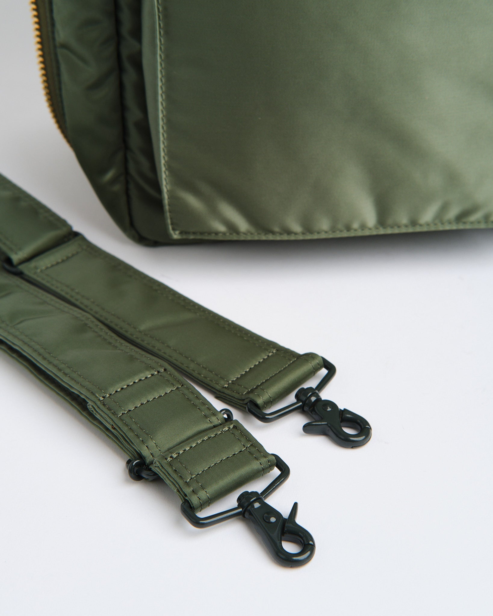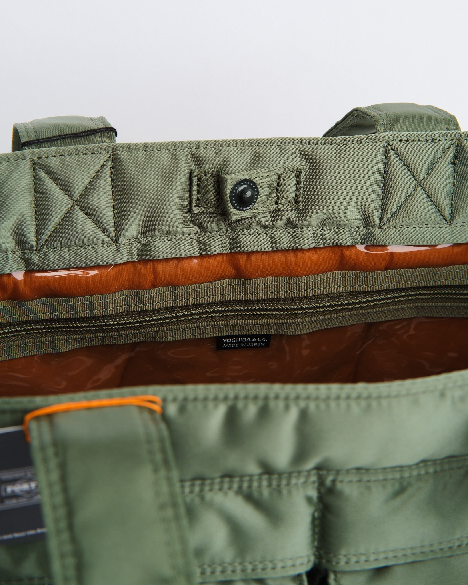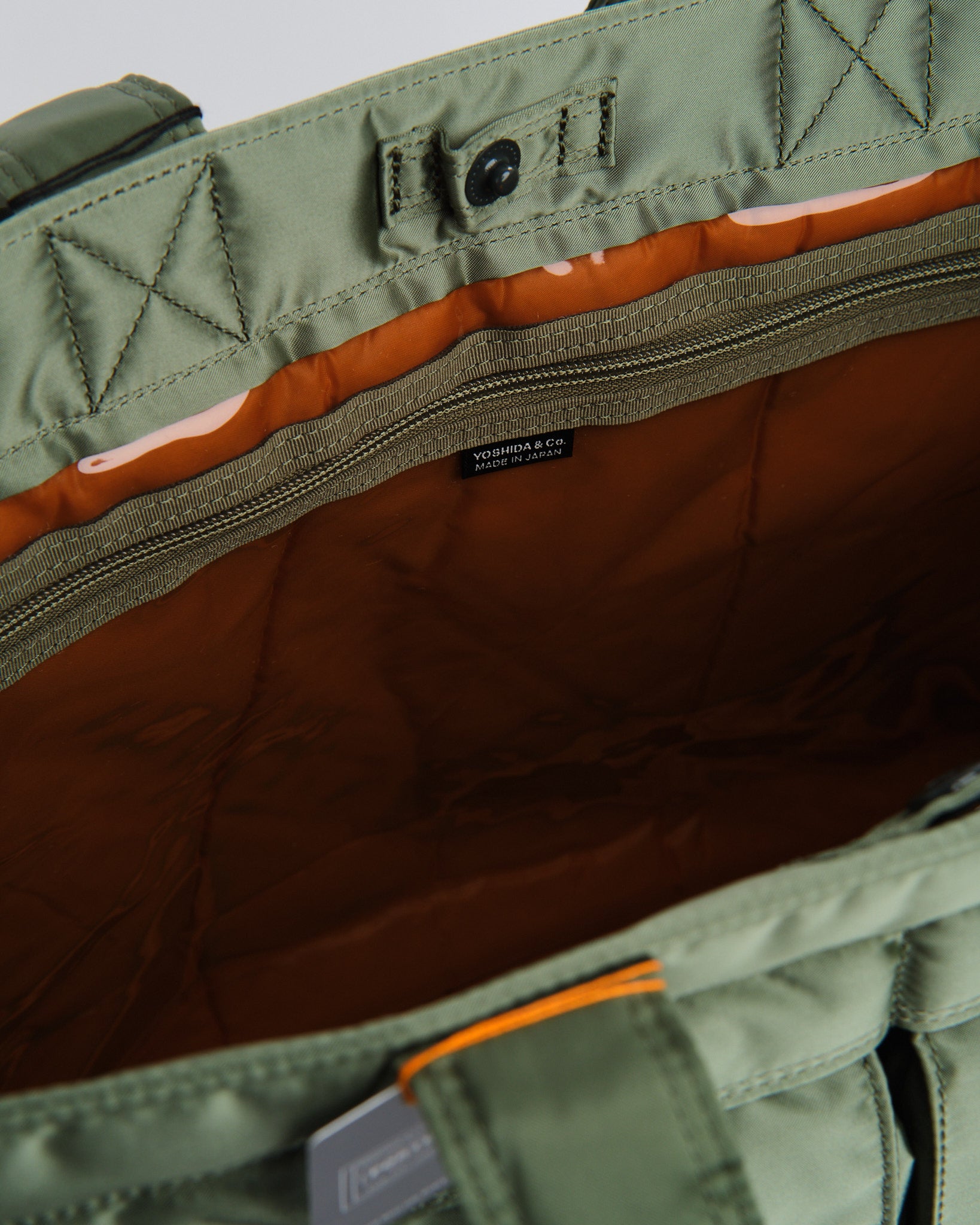 Het introduceren van de Porter By Yoshida 2way tote tas, een prachtige en functionele accessoire gemaakt met hoogwaardige nylon materialen. Vervaardigd in Japan, maakt deze tas deel uit van de iconische "TANKER" serie, die een originele stof bevat geïnspireerd door de US Air Force vliegjas "MA-1".