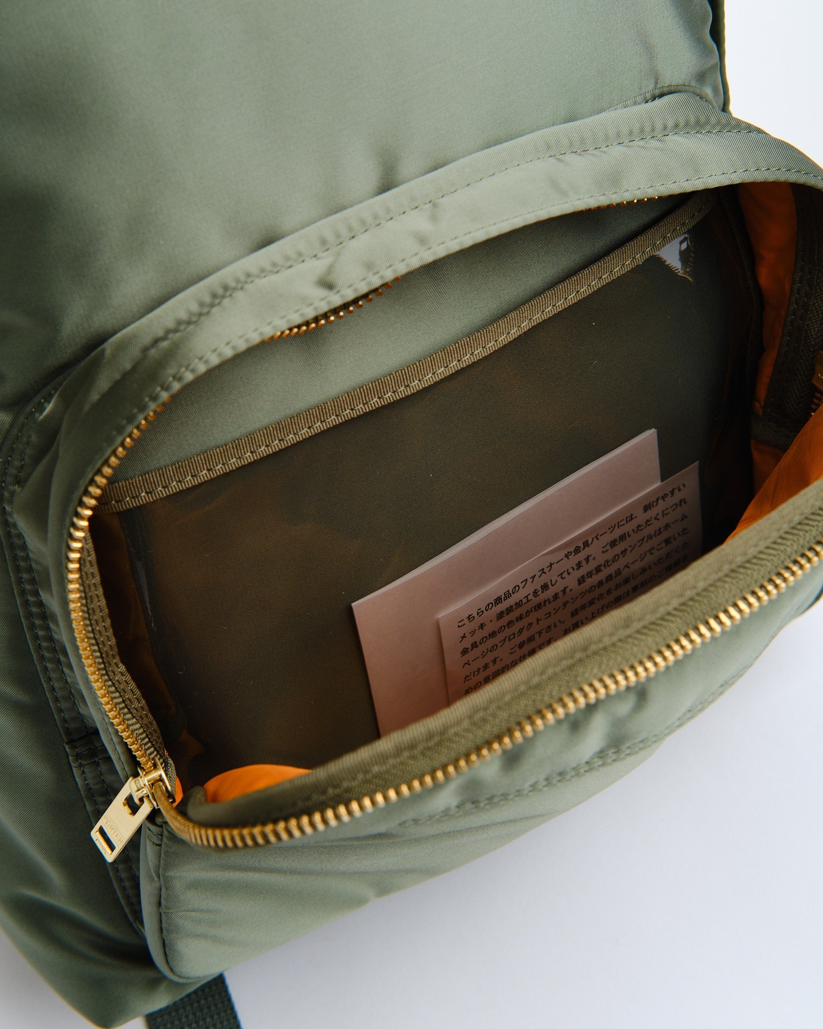 Ervaar de mix van functionaliteit en stijl met de PORTER YOSHIDA TANKER RUGZAK in een boeiende Saliegroene tint. Deze rugzak brengt hulde aan de TANKER-serie van PORTER uit 1983 en toont hun rijke erfgoed. Zorgvuldig vervaardigd met behulp van de drielaagse stof die doet denken aan de iconische U.S. Air Force MA 1 vliegjas, combineert het nylon twill, polyester katoen en nylon taffeta om een lichtgewicht maar tastbare sensatie te creëren. Het levendige reddingsoranje interieur voegt een vleugje flair toe, wat de toewijding van Yoshida Kaban aan nauwgezette vakmanschap in elk aspect van zijn ontwerp weerspiegelt. Met zijn silhouet biedt deze rugzak niet alleen voldoende opbergruimte, maar beschikt ook over doorzichtige vakken voor extra gemak - een ware getuigenis van zijn praktische bruikbaarheid en veelzijdigheid.