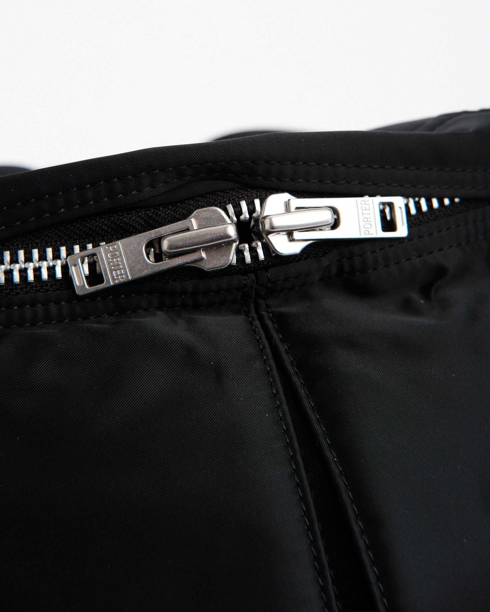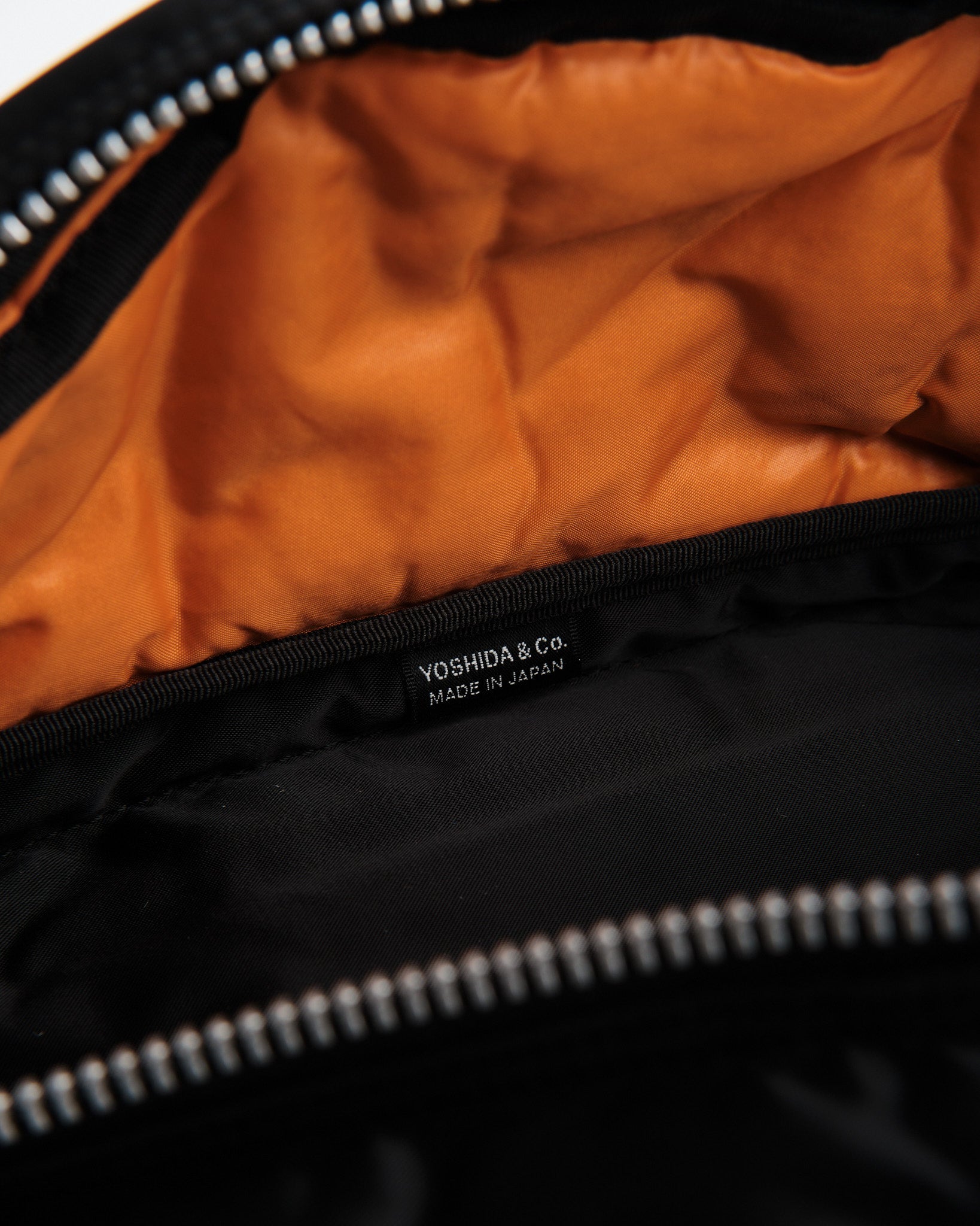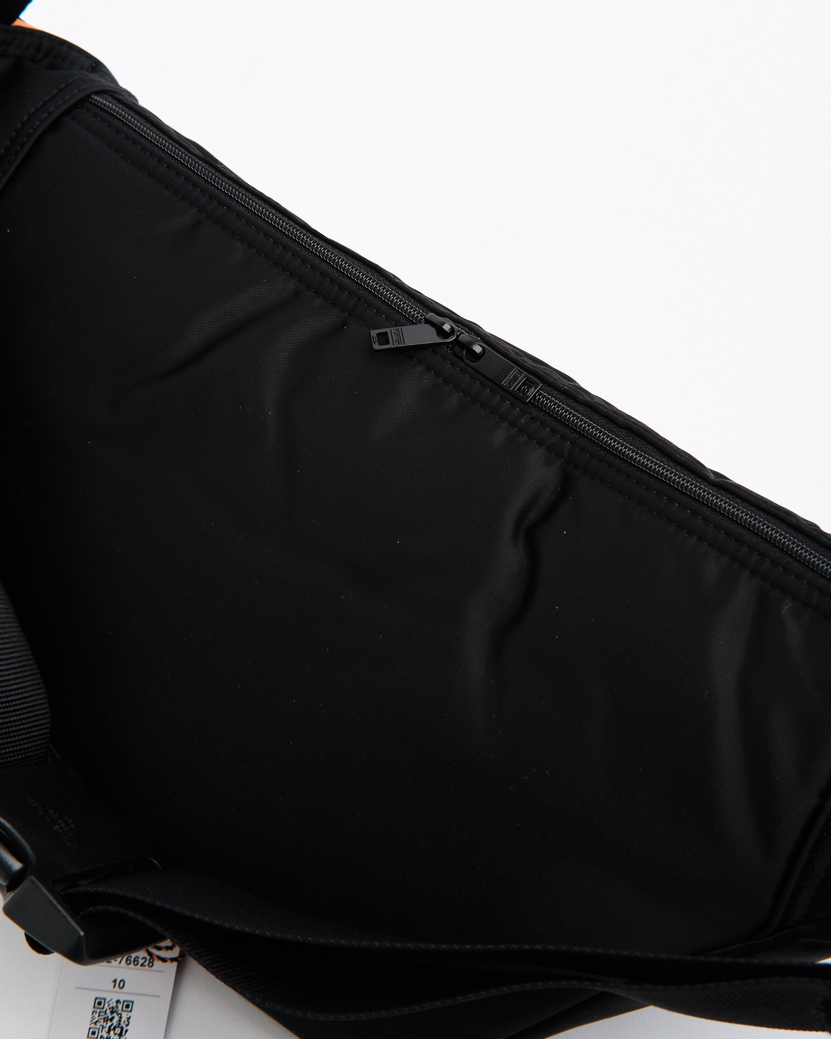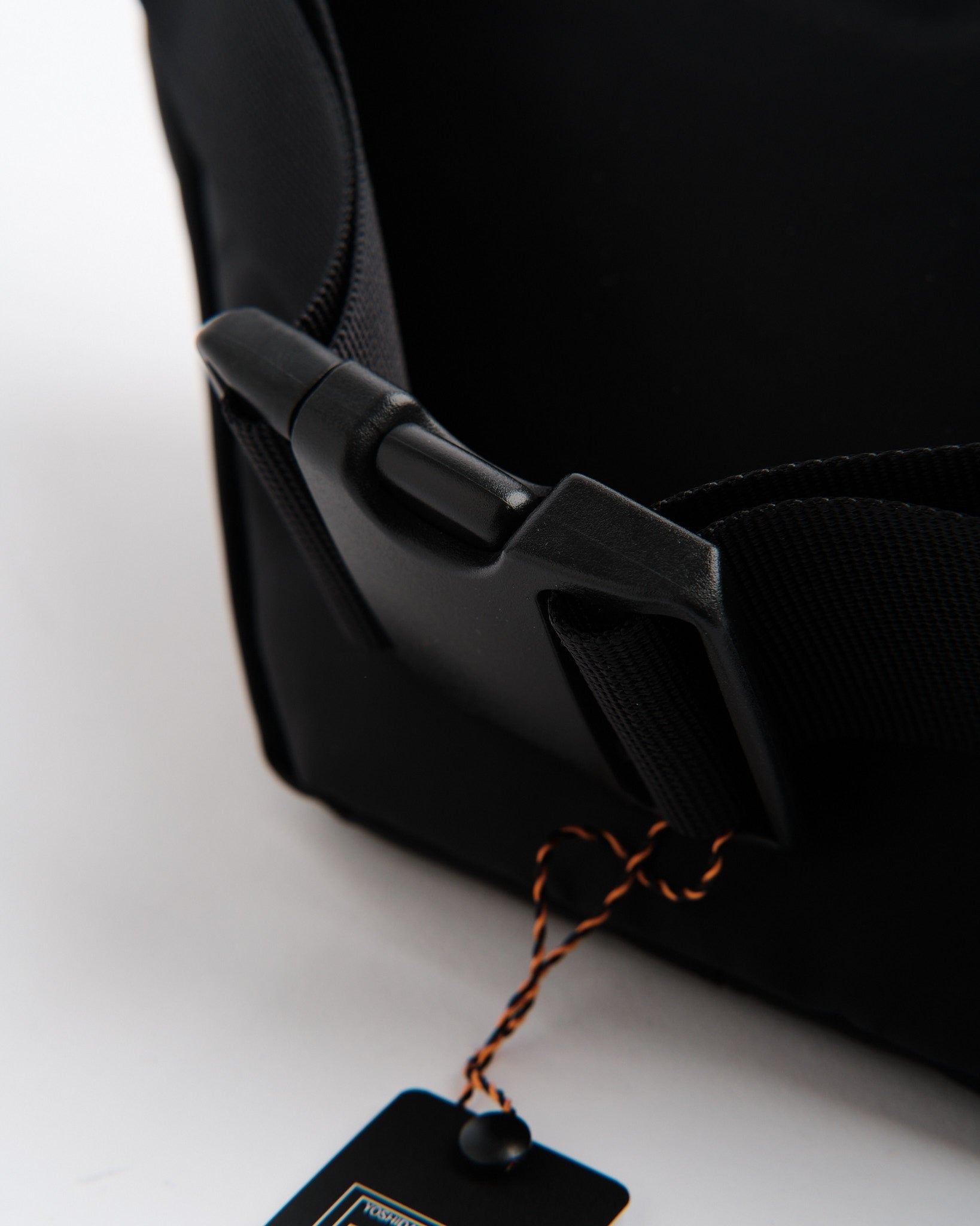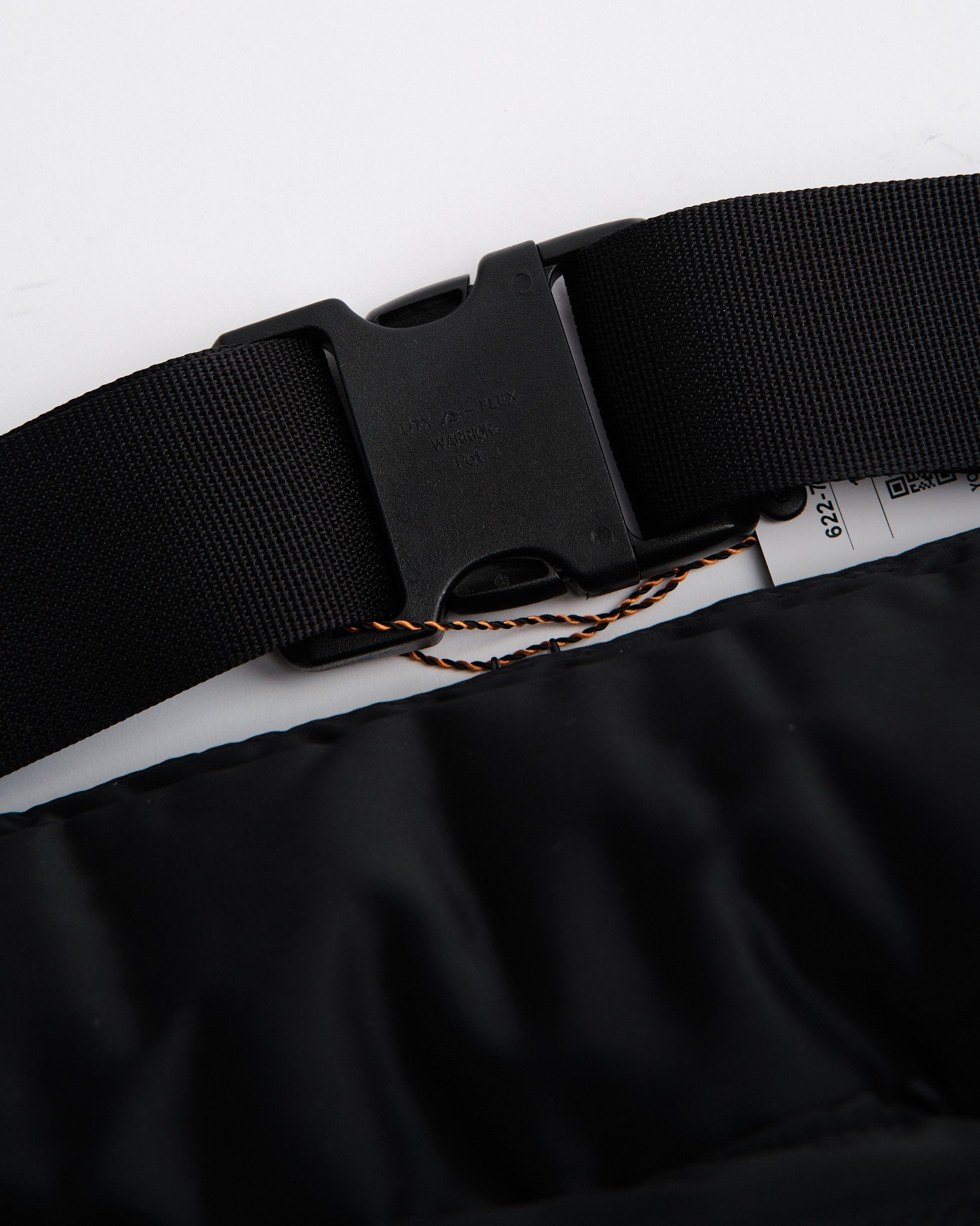 Introductie van de PORTER YOSHIDA 622 76628 10 TANKER HEUPTAS (L) in ZWART. Deze heuptas maakt deel uit van de PORTER TANKER serie die functionaliteit met stijl combineert. Geïnspireerd door het ontwerp van het US Air Force vliegjack "MA 1" beschikt het over een 3-laags structuur bestaande uit een lichtgewicht en stevig nylon twill voorzijde, een polyester katoenen middelste laag en een nylon taffeta voering. De levendige reddingsoranje binnen voering biedt een contrast. Ontworpen om op het lichaam te dragen, kan deze veelzijdige tas zowel als heup- of schoudertas worden gedragen. Het biedt opbergruimte met zijn hoofdcompartiment dat een 500ml fles, twee binnenzakken en een extra achterzak met rits kan accommoderen - ideaal om je essentiële spullen georganiseerd te houden.
