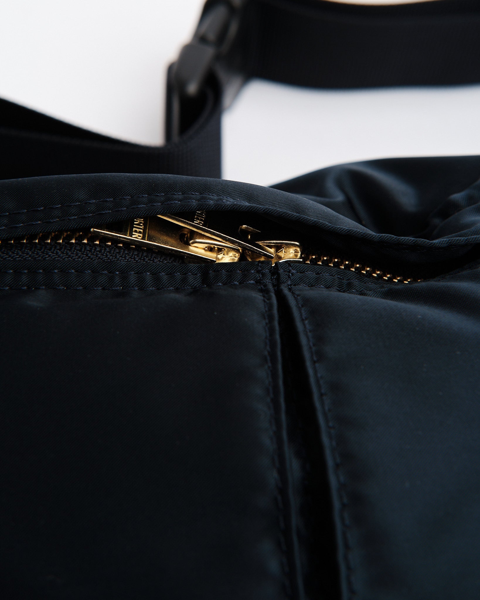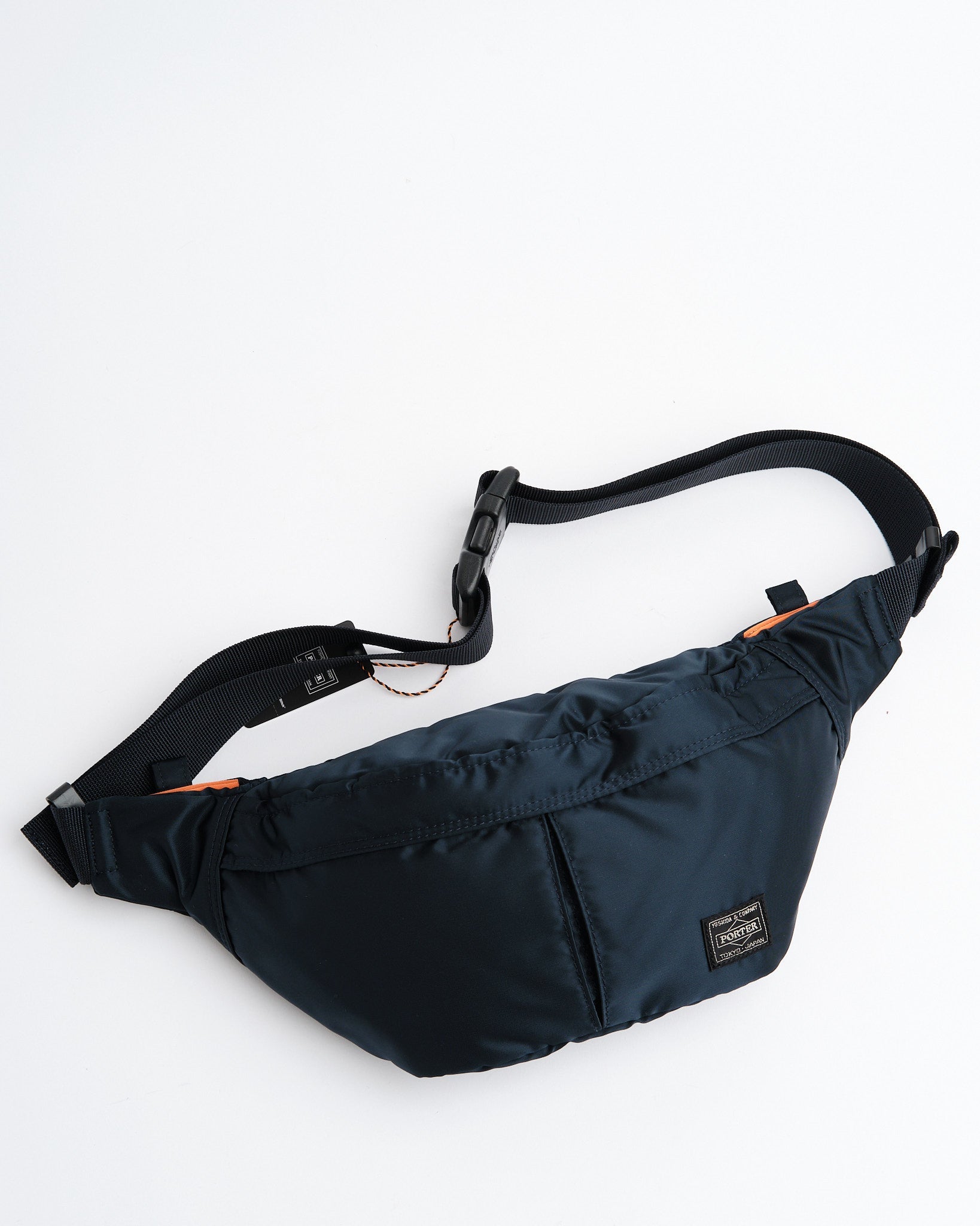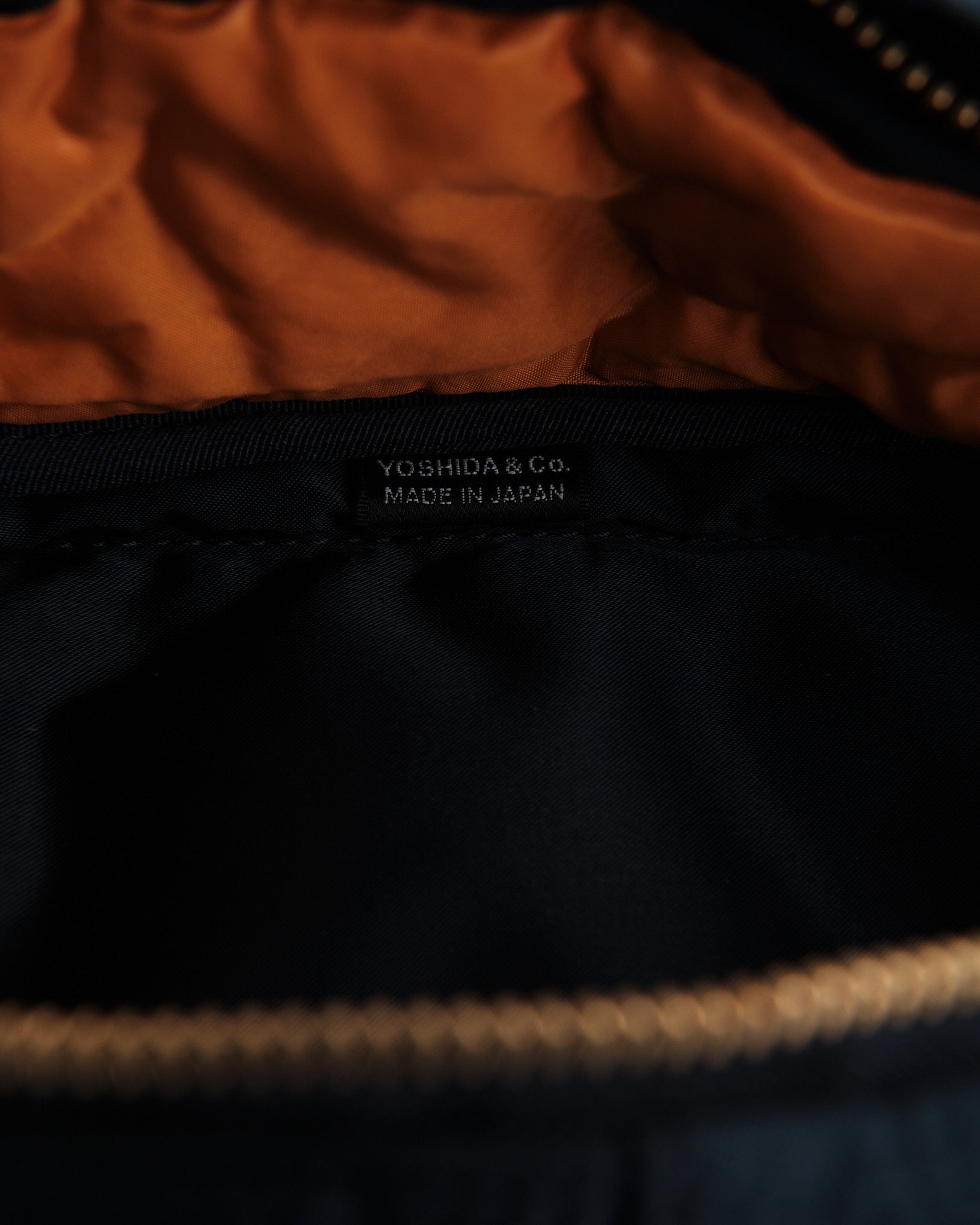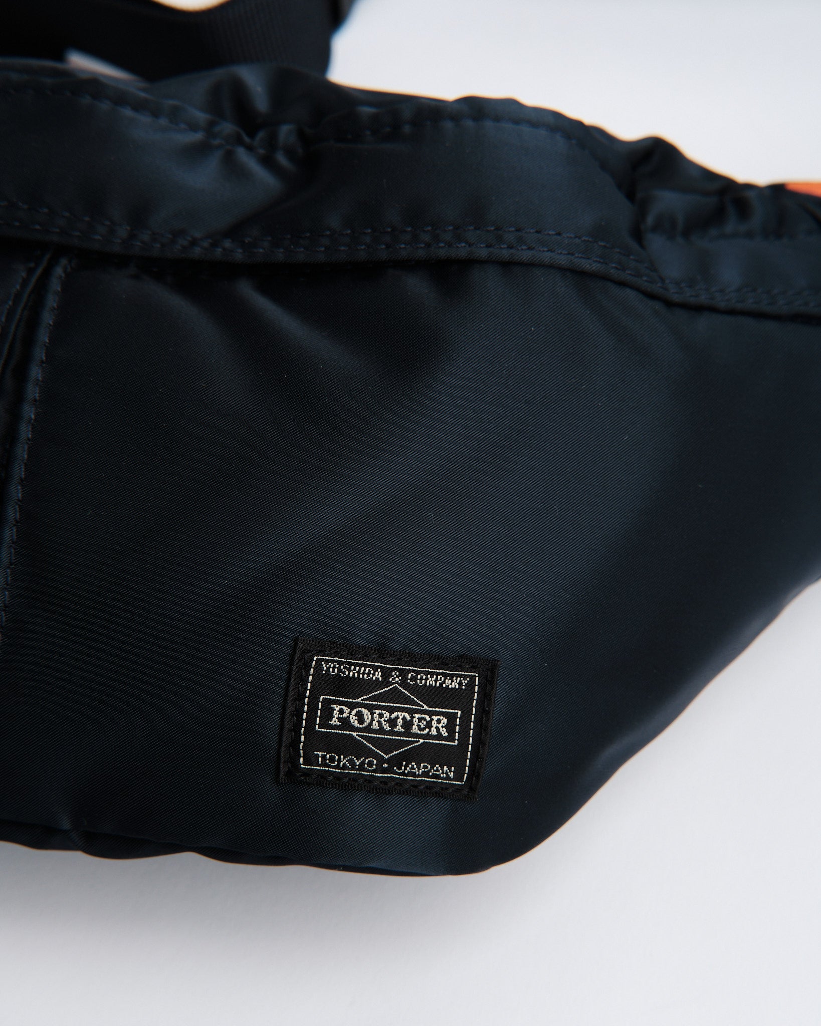 Presentatie van de PORTER YOSHIDA 622-76629-50 TANKER HEUPTAS (S) in IJZERBLAUW. Een sleutelstuk uit de Tanker Serie geïntroduceerd in 1983, deze heuptas is vervaardigd uit materiaal geïnspireerd door de MA 1 US Air Force vliegjas met een levendige reddingsoranje binnenbekleding. Ondanks de afmetingen is het ontworpen voor comfortabel dragen en kan het zowel als een heuptas als een schoudertas gebruikt worden. Ideaal voor het dragen van essentiële zaken, zoals smartphones en portemonnees, het beschikt over drie zakken, twee binnenzakken, een riemzak en een achterzak met rits. De lichtgewicht en stevige 3-laags stofmix van nylon twill polyester katoen en nylon tafzijde toont de kunstvaardigheid van Yoshida & Co.