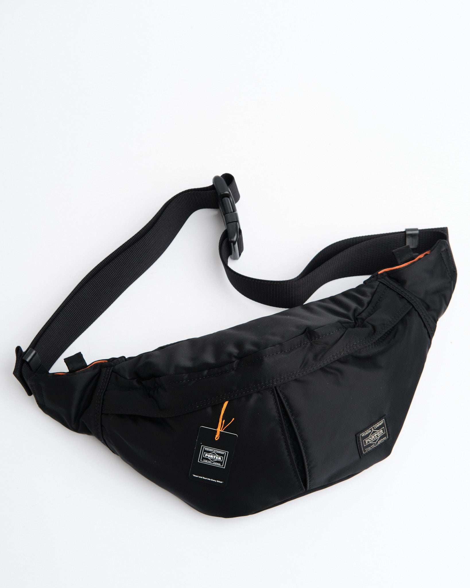 Introductie van de PORTER YOSHIDA 622 76629 10 TANKER HEUPTAS (S) in ZWART. Een onderdeel van de Tanker Serie die zijn debuut maakte in 1983, deze heuptas is vervaardigd met behulp van een unieke stof oorspronkelijk ontworpen voor de US Air Force vliegjas MA 1, compleet met een levendige reddingsoranje voering. Ondanks zijn formaat rust het comfortabel op het lichaam en kan het zowel rond de taille als over de schouder gedragen worden. Ideaal voor het veilig bewaren van items zoals telefoons en portemonnees, het beschikt over drie buitenzakken, twee binnenvakken, een riemzak en een ritszak aan de achterkant. De gelaagde stofmix van nylon twill polyester katoen en nylon tafzijde is zowel licht als stevig, wat de nauwgezette aandacht voor detail van Yoshida&Co. toont.