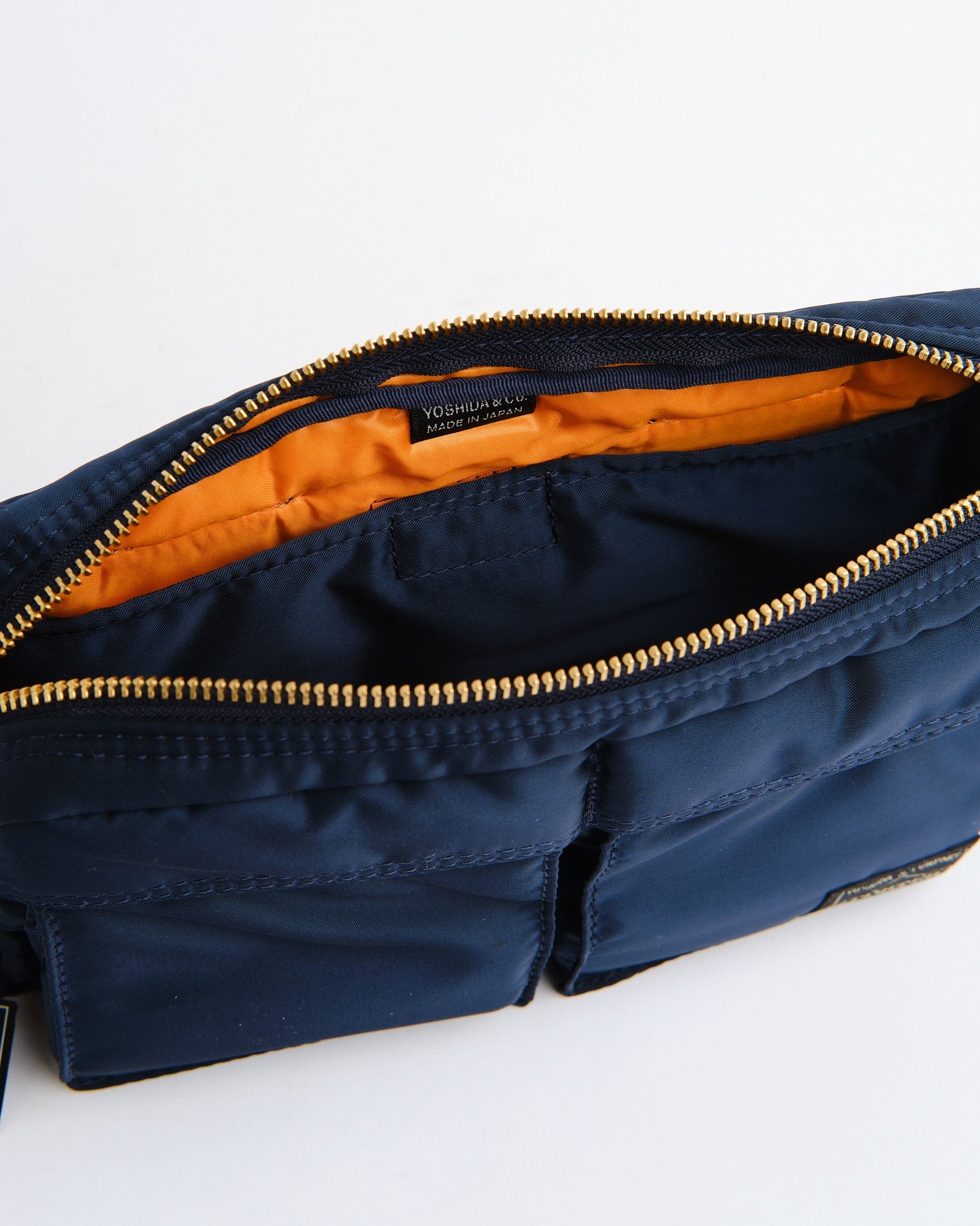De PORTER YOSHIDA TANKER SCHOUDERTAS in IJzerblauw is geïnspireerd op de vliegeniersjas waardoor het een onderdeel is van de beroemde "Tanker" serie. Deze tas werd voor het eerst geïntroduceerd in 1983. Pronkt met een unieke stofsamenstelling, met drie lagen; nylon, polyester katoen en nylon tafzijde. Het heeft een veiligheidsoranje voering en biedt veelzijdigheid met zijn afneembare en verstelbare schouderriem. De tas bevat een ritscompartiment, twee buitenzakken, een logopatch en een extra achtersectie ontworpen voor riemopslag.