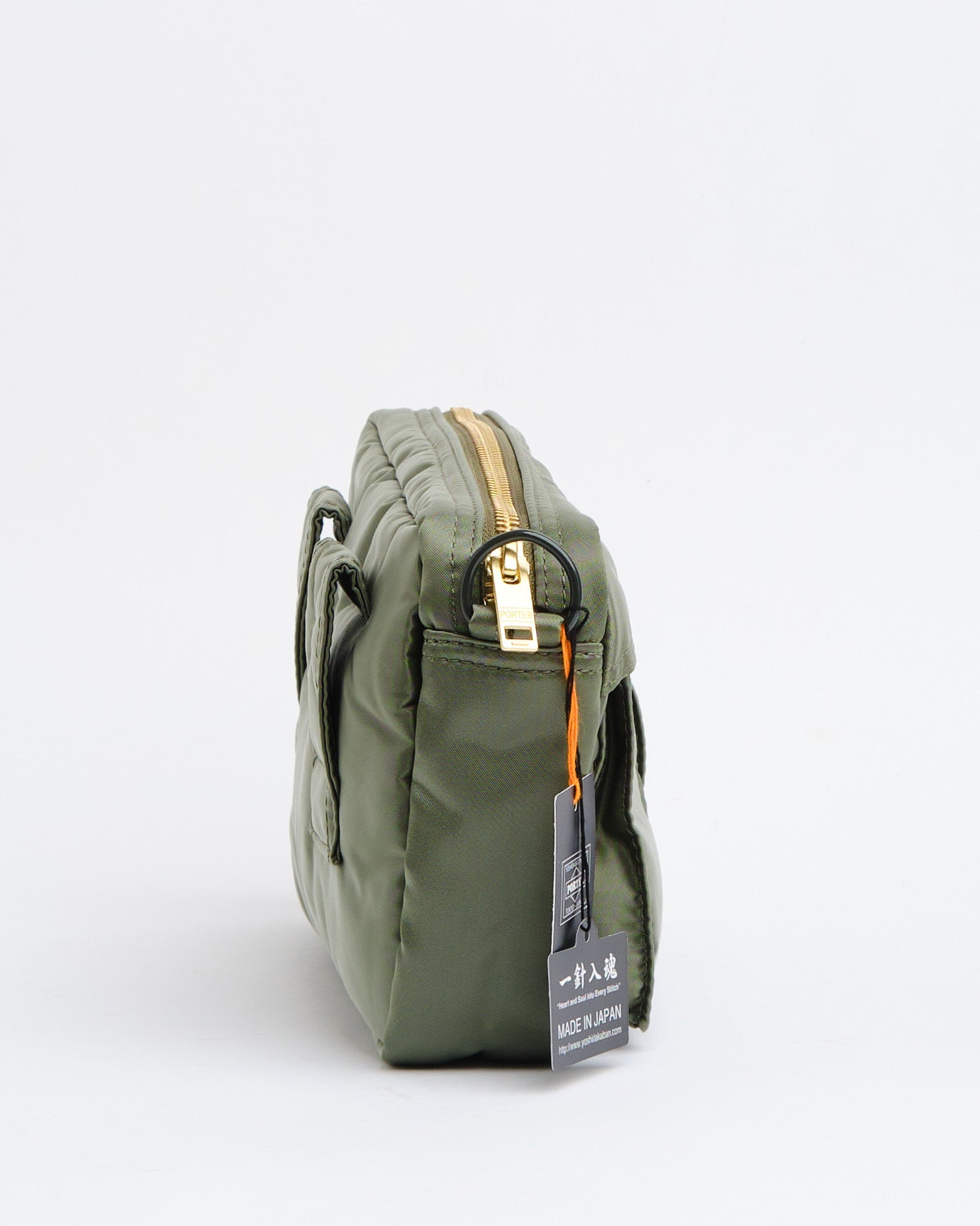 Omarm de stijl die de PORTER YOSHIDA TANKER SCHOUDERTAS in Saliegroen biedt. Dit voortreffelijke stuk, geïnspireerd door het vliegeniersjack, behoort tot de gerenommeerde "Tanker" serie die voor het eerst werd geïntroduceerd in 1983. Het toont prachtig het vakmanschap van Japan. Vervaardigd uit een drielagige stofmix van nylon twill polyester katoen en nylon tafzijde valt deze tas op door zijn lichtgewicht gevoel en zijn iconische veiligheidsoranje voering. Met een verstelbare schouderriem pronkt het met een hoofdritsvak samen met twee externe zakken. Met trots gemaakt in Japan, belichaamt deze tas echt de onwankelbare toewijding van PORTER YOSHIDA aan kwaliteit en ontwerp.